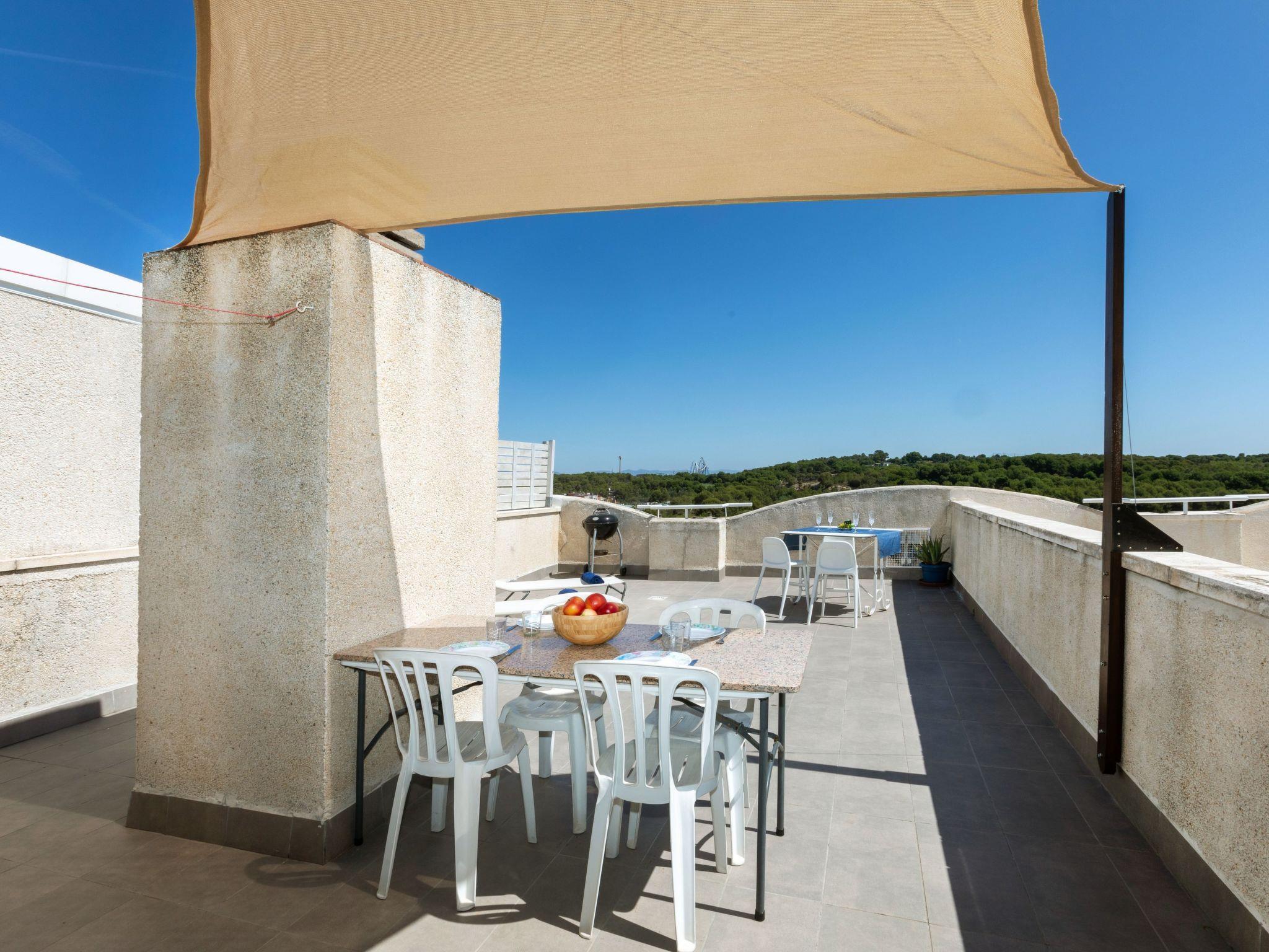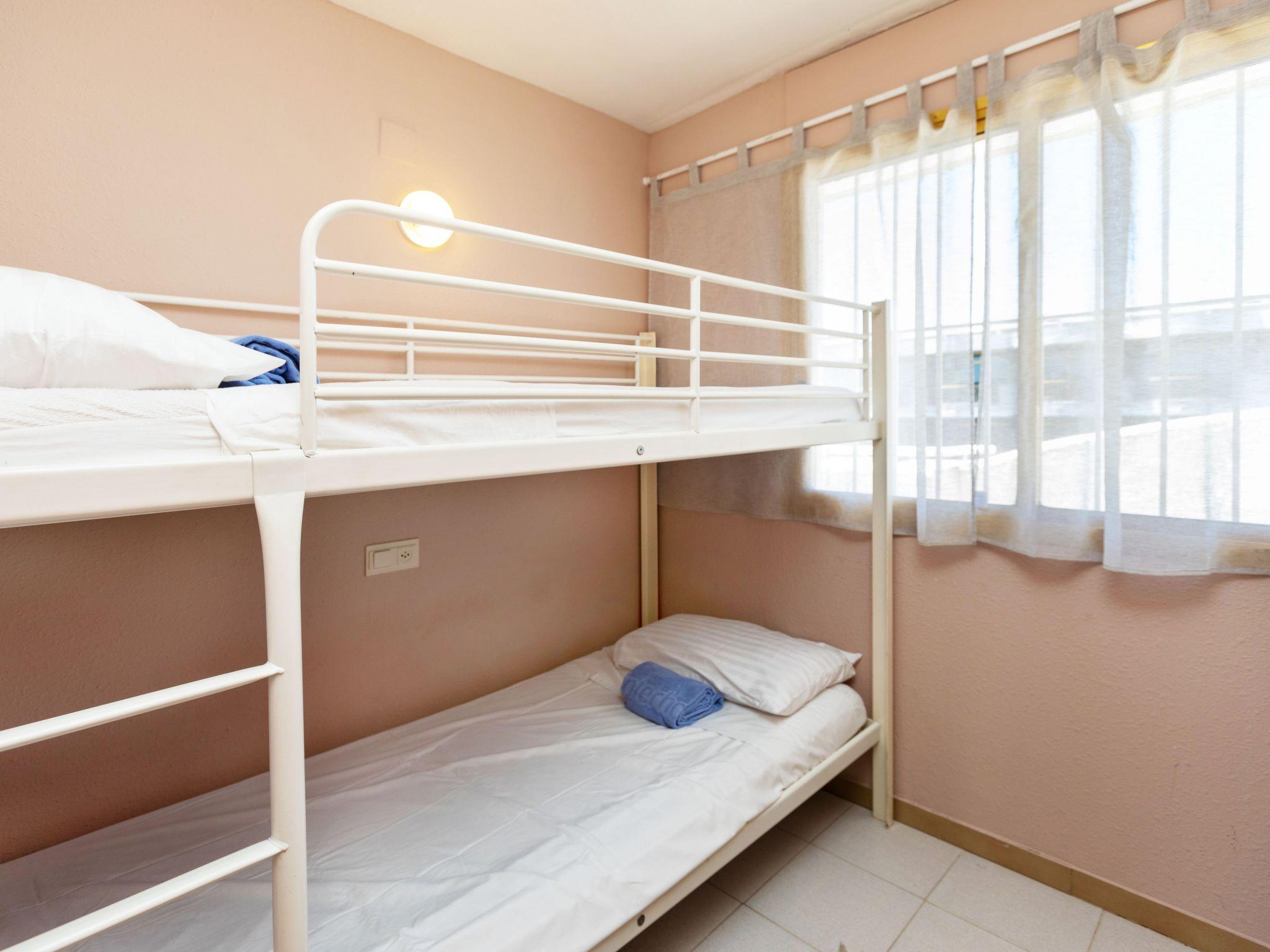 "Catalunya", 3-room penthouse 45 m2. Living/dining room with 1 double sofabed (135 cm, length 190 cm), digital TV, air conditioning and forced-air heating. Exit to the terrace. 1 room with 1 french bed (135 cm, length 190 cm). Exit to the terrace. 1 room with 1 x 2 bunk beds (90 cm, length 200 cm). Kitchen (oven, dishwasher, 4 ceramic glass hob hotplates, toaster, kettle, microwave, electric coffee machine). Bath/WC. Heating, air-conditioning. Heating not available in all rooms. Large terrace 40 m2. Terrace furniture, barbecue, deck chairs. View of the swimming pool and the resort. Facilities: washing machine, iron, hair dryer. Internet (WiFi). Parking space n 31 (extra). HUTT-003652 // Reg. Nr.: ESFCTU00004302400041495200000000000000000HUTT-0036520