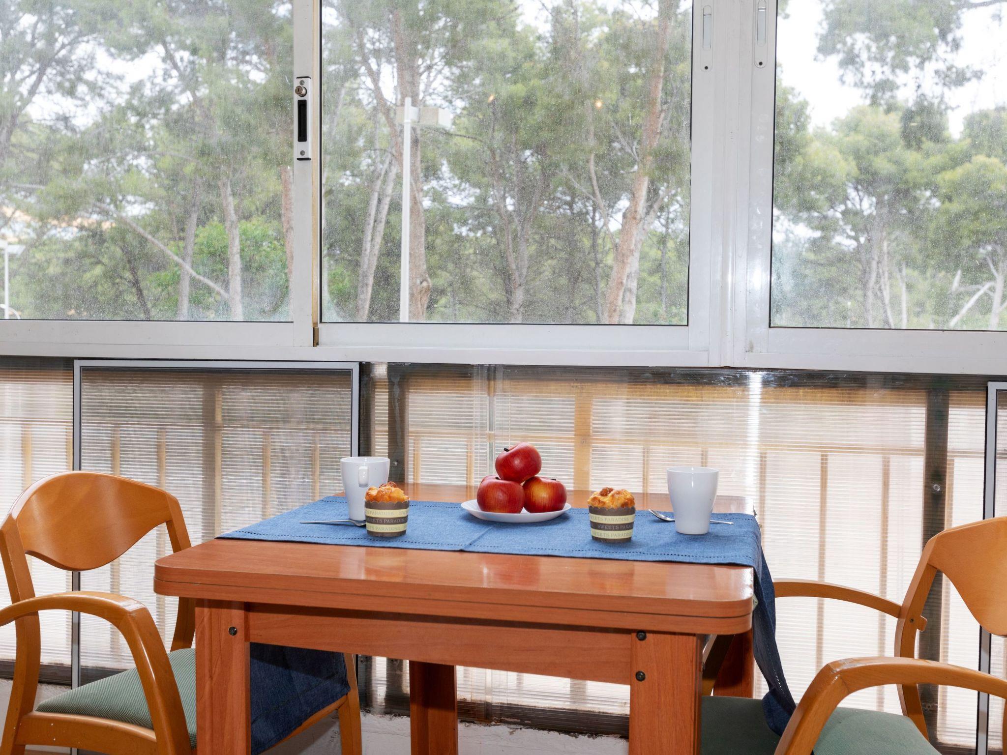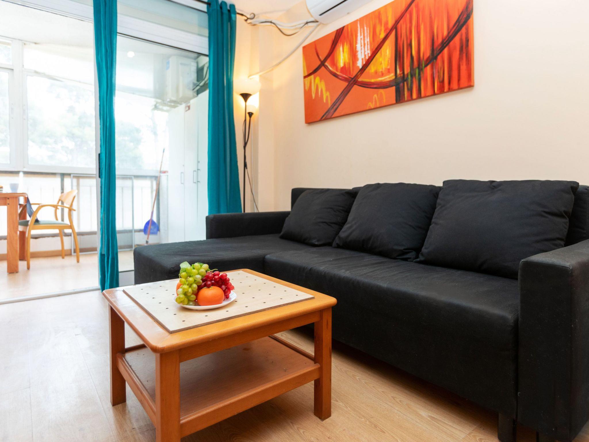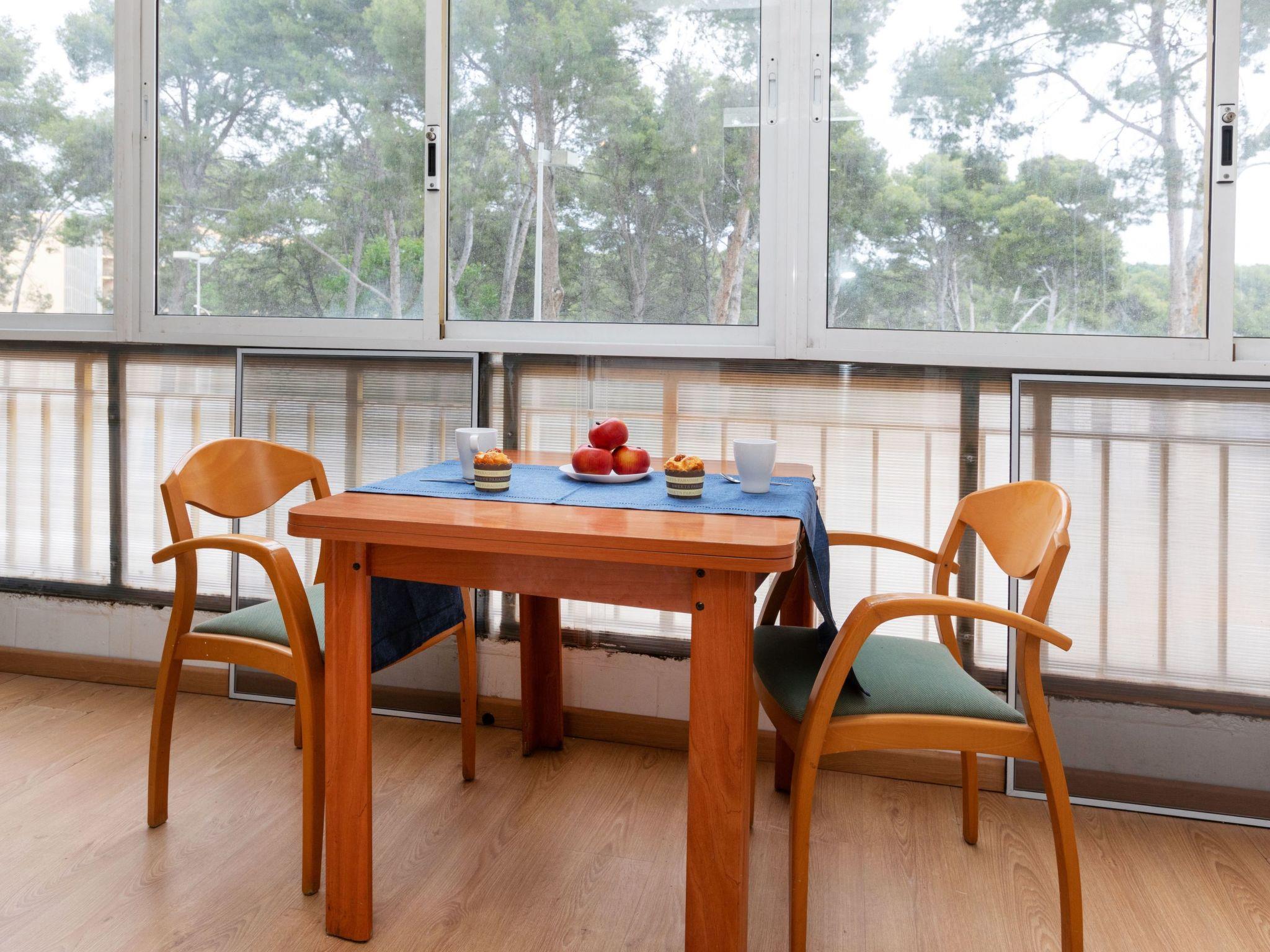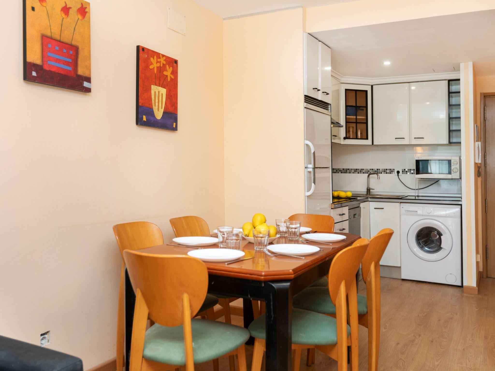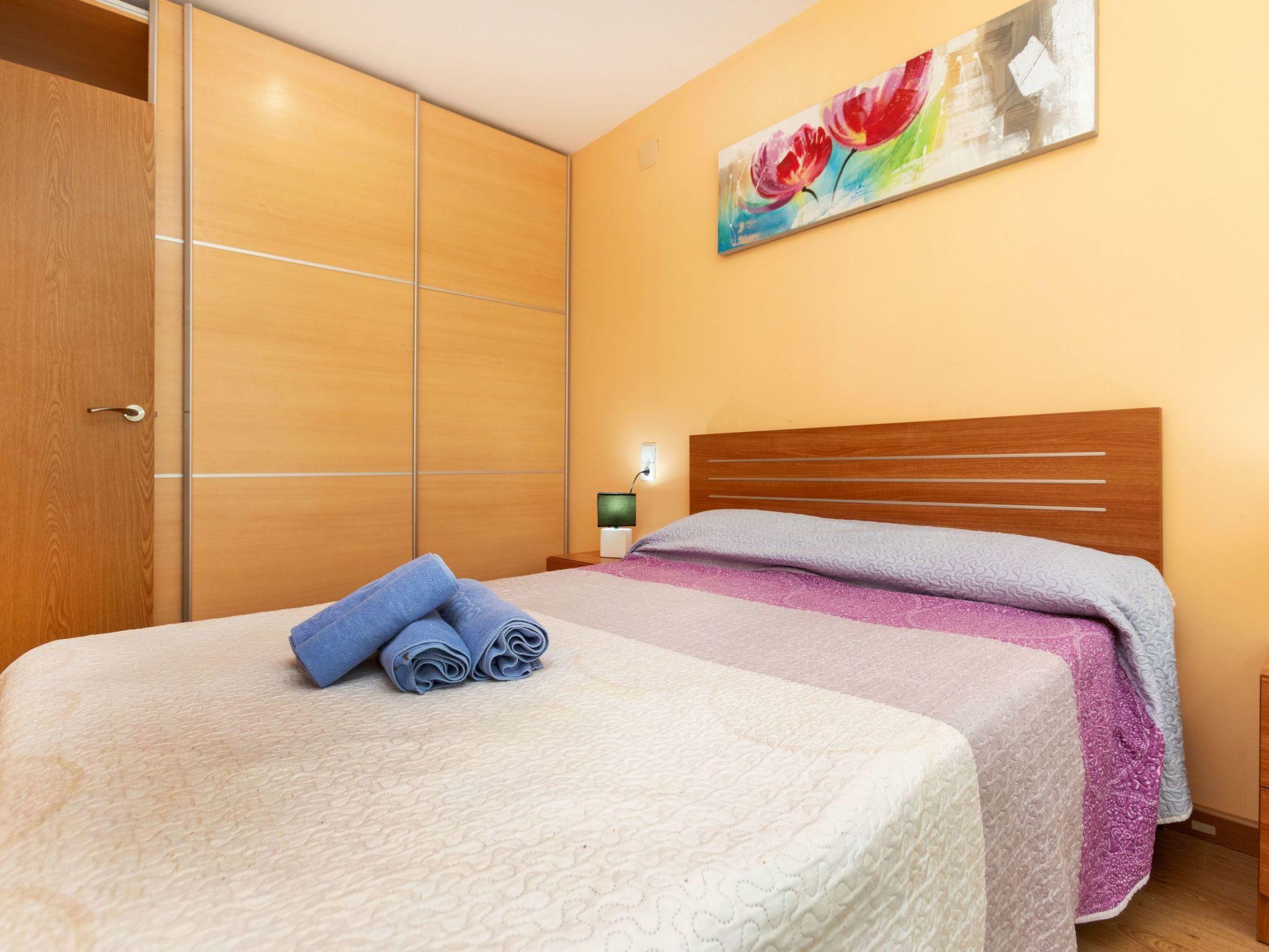 "Catalunya 92", 3-room apartment 47 m2 on 1st floor. Cosy furnishings: living/dining room with digital TV, air conditioning and forced-air heating. 1 room with 1 french bed (150 cm, length 190 cm), TV, air conditioning and forced-air heating. Exit to the terrace with 1 x 2 bunk beds (90 cm, length 190 cm). Open kitchen (dishwasher, 4 ceramic glass hob hotplates, toaster, kettle, microwave, electric coffee machine). Shower/WC. Air-conditioning, forced-air heating, boiler (28 litres). Heating not available in all rooms. Terrace furniture. Facilities: washing machine, iron, hair dryer. Internet (WiFi, free). Please note: apartment street side. HUTT-037046 // Reg. Nr.: ESFCTU000043024000374751000000000000000HUTT-006003054
