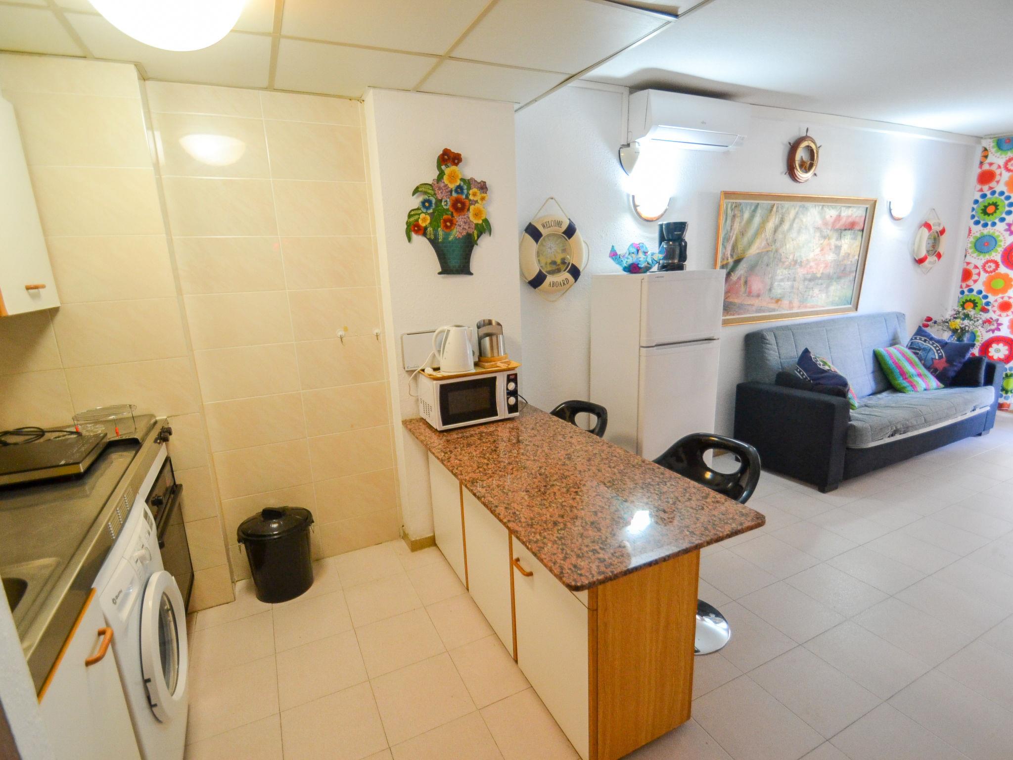"Catalunya 10", 3-room apartment 45 m2 on 1st floor. Object suitable for 2 adults + 2 children. Simple and practical furnishings: living/dining room with sliding door with 1 sofabed (120 cm, length 190 cm), digital TV, air conditioning and forced-air heating. Exit to the balcony. 1 room with 1 french bed (130 cm, length 190 cm). Exit to the terrace. 1 open room, without window with 1 x 2 bunk beds (90 cm, length 190 cm). Exit to the terrace. Open kitchen (2 hot plates, oven, toaster, kettle, microwave, electric coffee machine) with boiler (50 litres). Bath/WC. Heating not available in all rooms. Terrace. Terrace furniture. Facilities: washing machine, iron, hair dryer. Internet (WiFi, free). HUTT-002558 // Reg. Nr.: ESFCTU00004302400041161600000000000000000HUTT-0025580