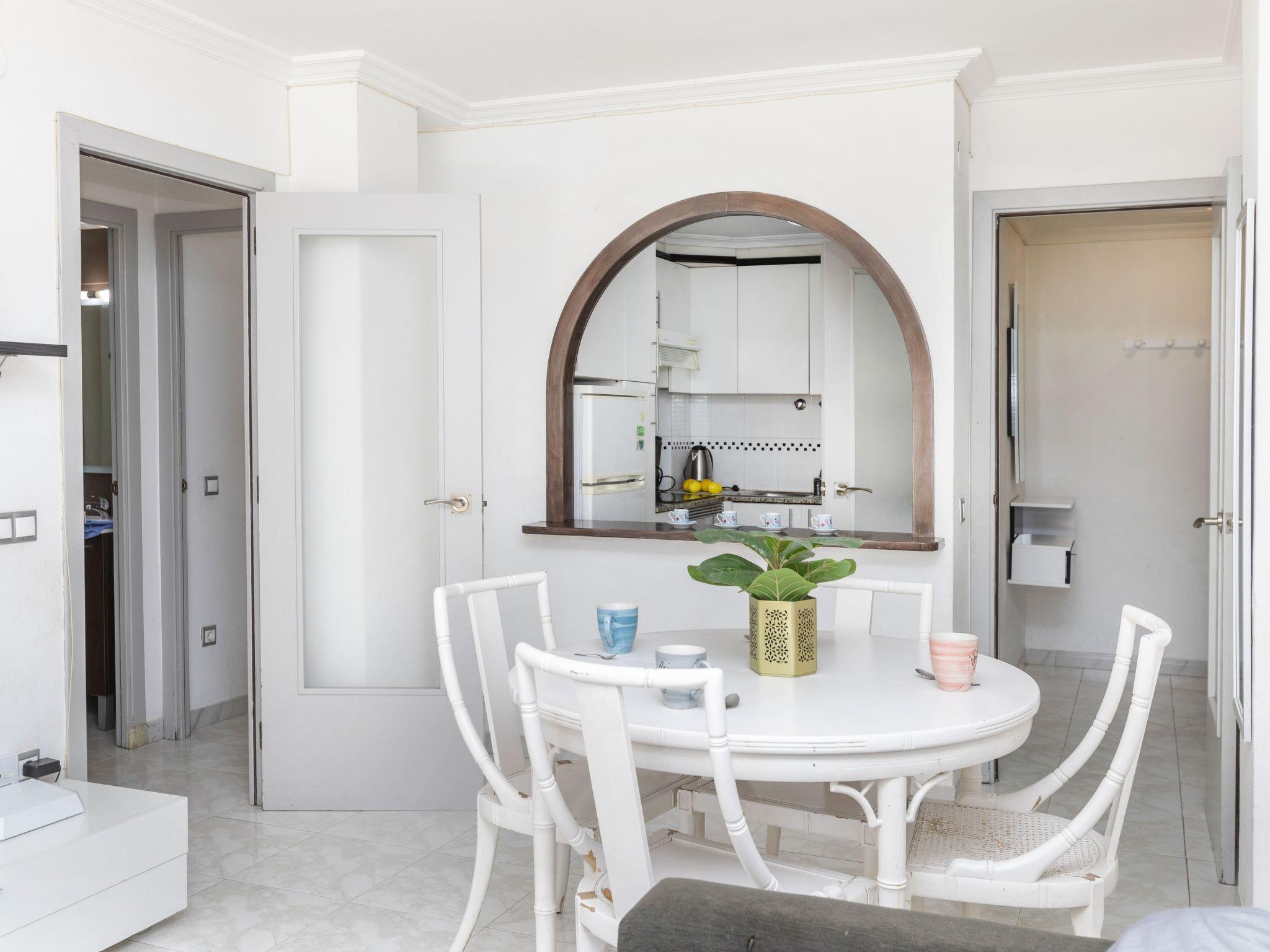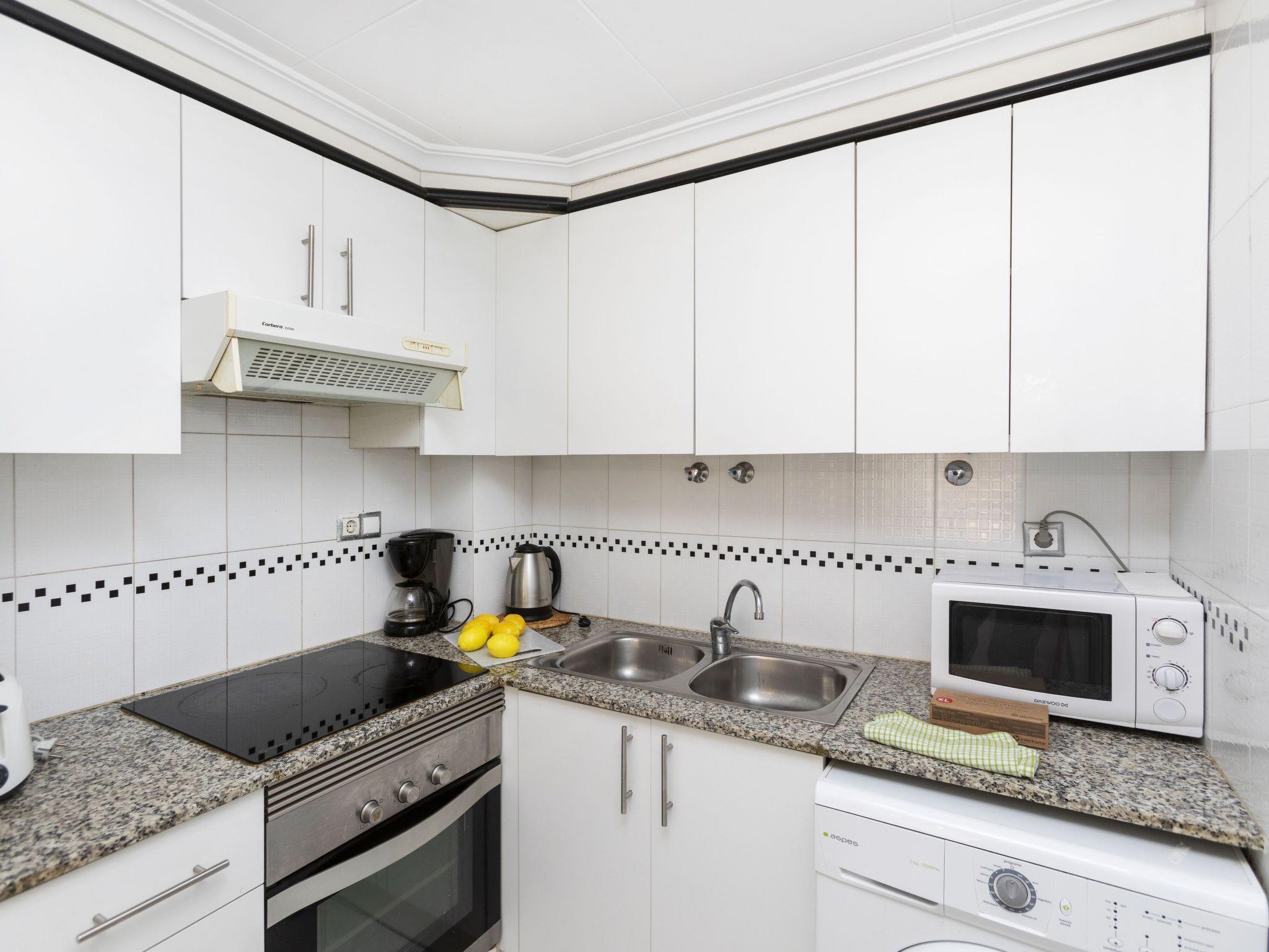 "Jardines Family 204", 3-room apartment 66 m2 on 2nd floor. Practical and comfortable furnishings: living/dining room with 1 double sofabed (135 cm, length 190 cm), air conditioning and forced-air heating. Exit to the terrace. 1 room with 1 french bed (135 cm, length 190 cm). 1 room with 2 beds (90 cm, length 190 cm). Open kitchen (oven, 3 ceramic glass hob hotplates, toaster, kettle, microwave, freezer, electric coffee machine). Shower/WC. Air-conditioning. Terrace furniture. View of the city. Facilities: washing machine, safe, iron, hair dryer. Internet (WiFi, free). Maximum 1 pet/ dog allowed. HUTT-006481 // Reg. Nr.: ESFCTU00004302400048586000000000000000000HUTT-0064833