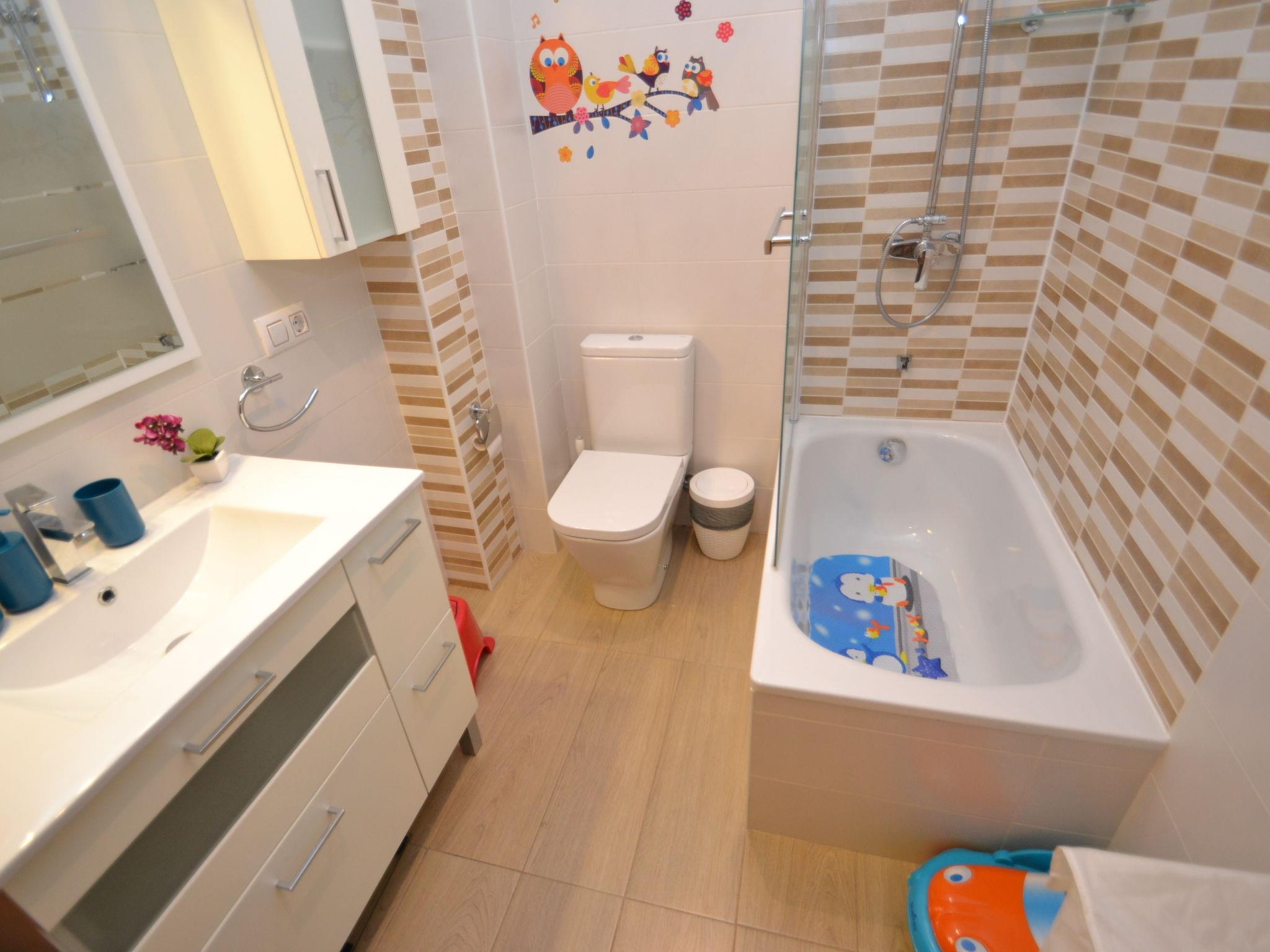 "Salourhin", 4-room apartment 87 m2 on 4th floor. Bright, practical and comfortable furnishings: living/dining room with 1 double sofabed (135 cm, length 190 cm), digital TV, air conditioning and forced-air heating. Exit to the terrace. 2 rooms, each room with 1 french bed (135 cm, length 190 cm). 1 room with 2 beds (90 cm, length 190 cm). Kitchen (oven, dishwasher, 4 ceramic glass hob hotplates, toaster, kettle, microwave, freezer, electric coffee machine). Bath/WC, shower/WC. Heating, air-conditioning. Heating not available in all rooms. Large terrace. Terrace furniture. Facilities: washing machine, iron, hair dryer. Internet (WiFi, free). Parking space n 29 externo. HUTT-032507 // Reg. Nr.: ESFCTU00004302400029344100000000000000000HUTT-0325073