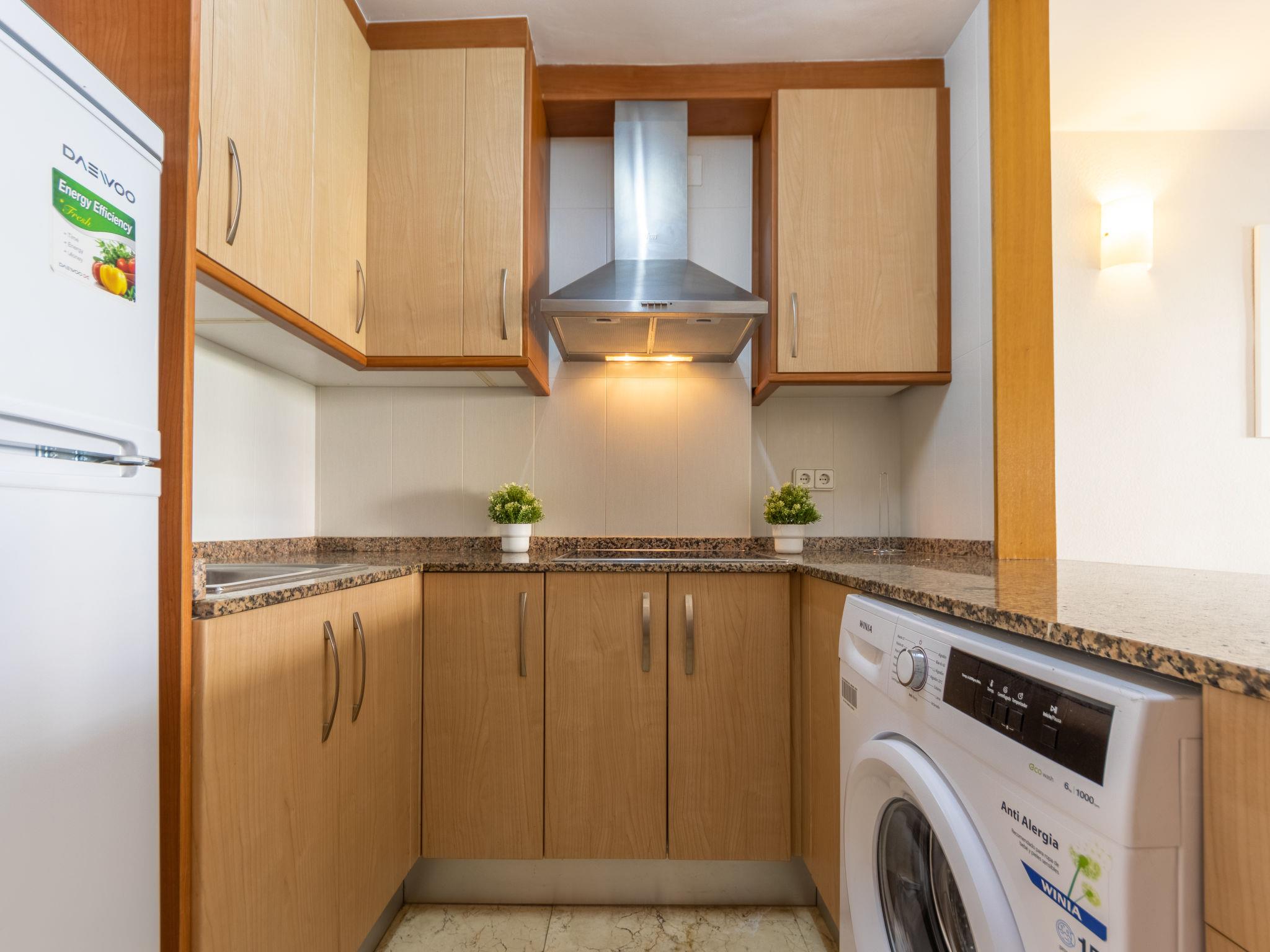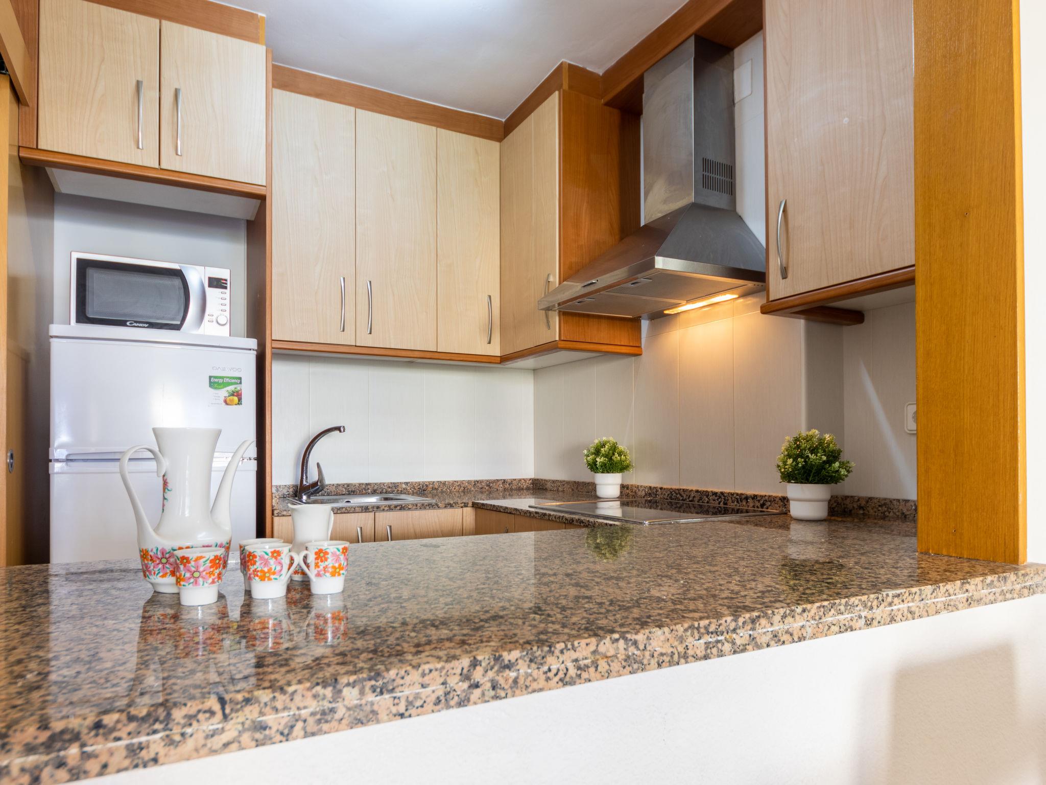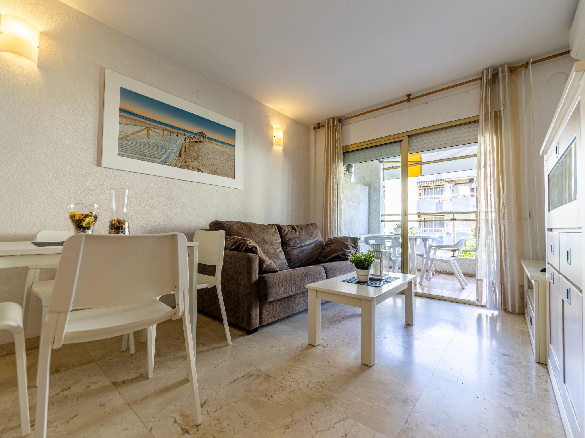 "Michelangelo 1", 2-room apartment 35 m2 on 5th floor. Bright, practical and comfortable furnishings: living/dining room with 1 double sofabed, digital TV, air conditioning and forced-air heating. Exit to the terrace. 1 room with 1 french bed (140 cm, length 190 cm). Exit to the terrace. Open kitchen (oven, 3 ceramic glass hob hotplates, toaster, kettle, microwave, freezer, electric coffee machine). Shower/WC. Heating, air-conditioning. Heating not available in all rooms. Large terrace. Terrace furniture. Side view of the sea. Facilities: washing machine, iron, hair dryer. Internet (WiFi). At 200 m. HUTT-043659 // Reg. Nr.: ESFCTU00004302400035558300000000000000000000000436597