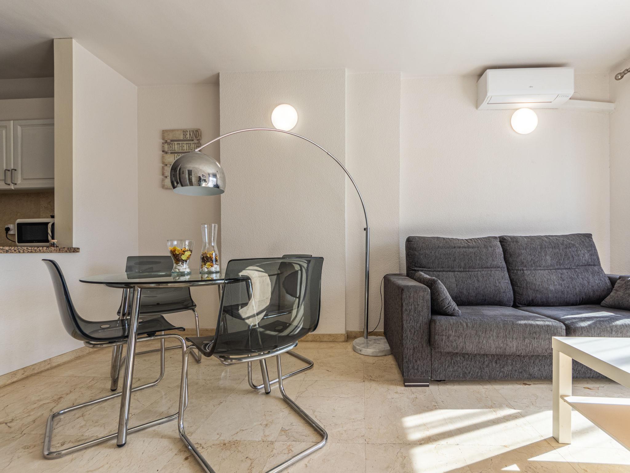 2-room penthouse 40 m2. Bright, practical and comfortable furnishings: living/dining room with 1 double sofabed, digital TV, air conditioning and forced-air heating. Exit to the terrace. 1 room with 1 french bed (140 cm, length 190 cm). Exit to the terrace. Open kitchen (oven, 3 ceramic glass hob hotplates, toaster, kettle, microwave, freezer, electric coffee machine). Bath/WC. Heating, air-conditioning. Heating not available in all rooms. Facilities: iron, hair dryer. Internet (WiFi, free). At 200 m. HUTT-043660 // Reg. Nr.: ESFCTU00004302400034755700000000000000000HUTT-0436609