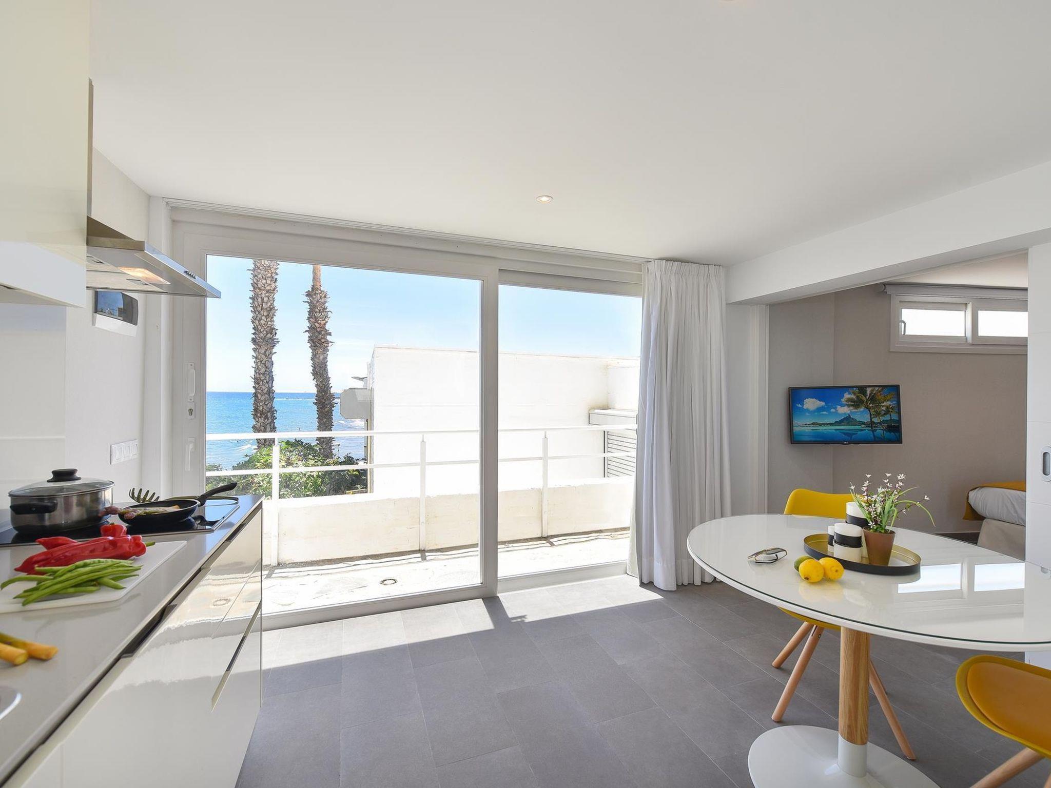 "Studio Nueva Suecia CR715", 2-room apartment 30 m2. Comfortable and modern furnishings: living/dining room with dining table. 1 room with 1 french bed, digital TV and air conditioning. Open kitchen (2 ceramic glass hob hotplates, toaster, kettle, microwave, freezer, electric coffee machine). Shower/WC. View of the sea and the forest. Facilities: safe, iron, children's high chair, baby cot for up to 2 year olds, hair dryer. Internet (WiFi, free). Parking (1 car). Please note: non-smokers only. Maximum 1 pet/ dog allowed. 2022-T1946 // Reg. Nr.: ESFCTU0000350120001415420000000000000VV-35-1-00242879