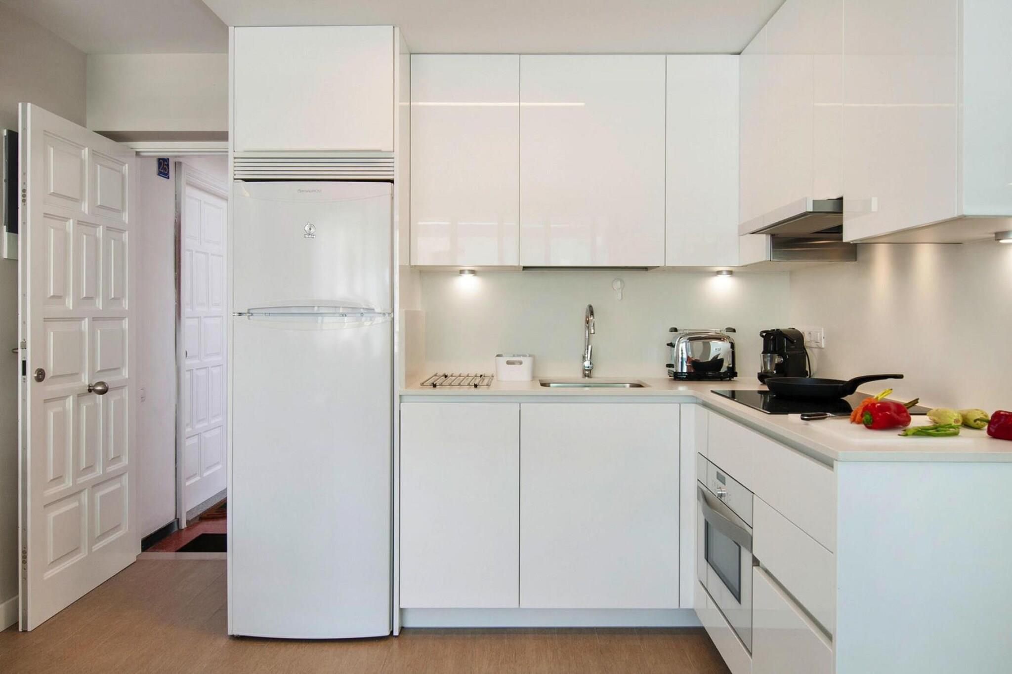På 2. etage: (åbent køkken(kakkelovn, elkedel, brødrister, kaffemaskine, ovn, mikrobølgeovn, opvaskemaskine , køle-fryseskab), stue / spisestue(enkeltsovesofa, Fjernsyn(parabol, Tyske TV-kanaler)), soveværelse(dobbeltseng), badeværelse(bruser, toilet, føntørrer), tørretumbler, vaskemaskine, klimaanlæg, terrasse(overdækket), barnestol, baby crib(free))