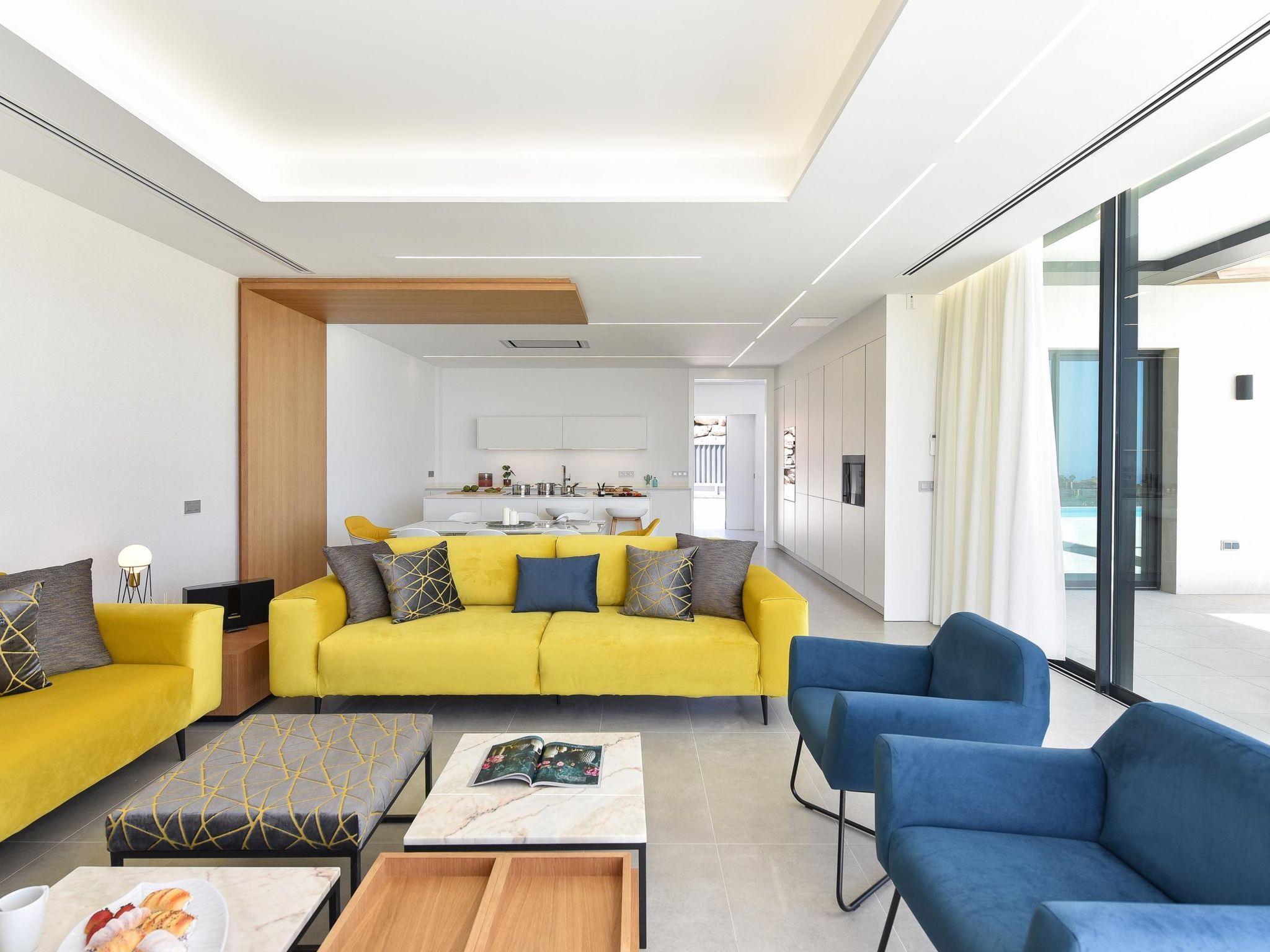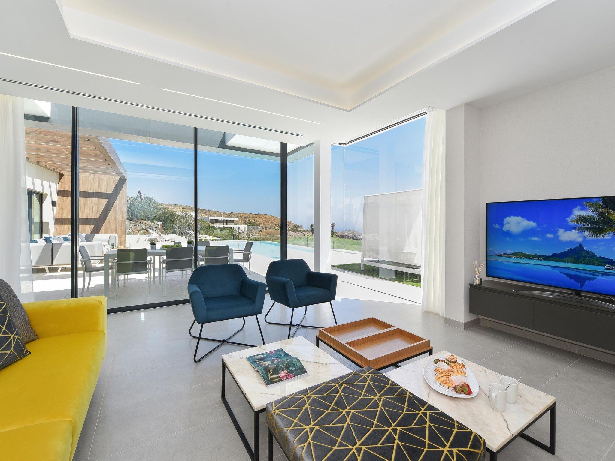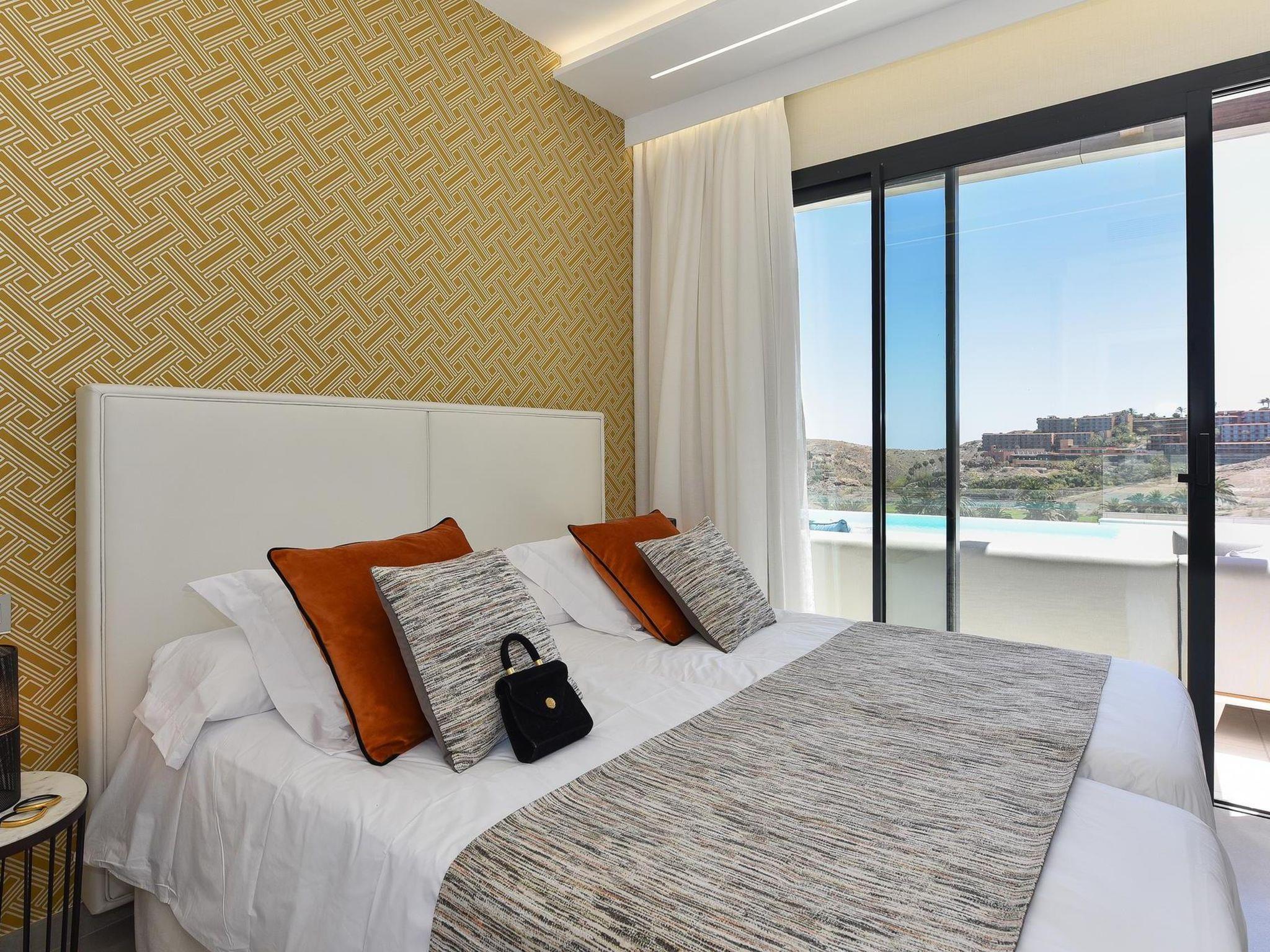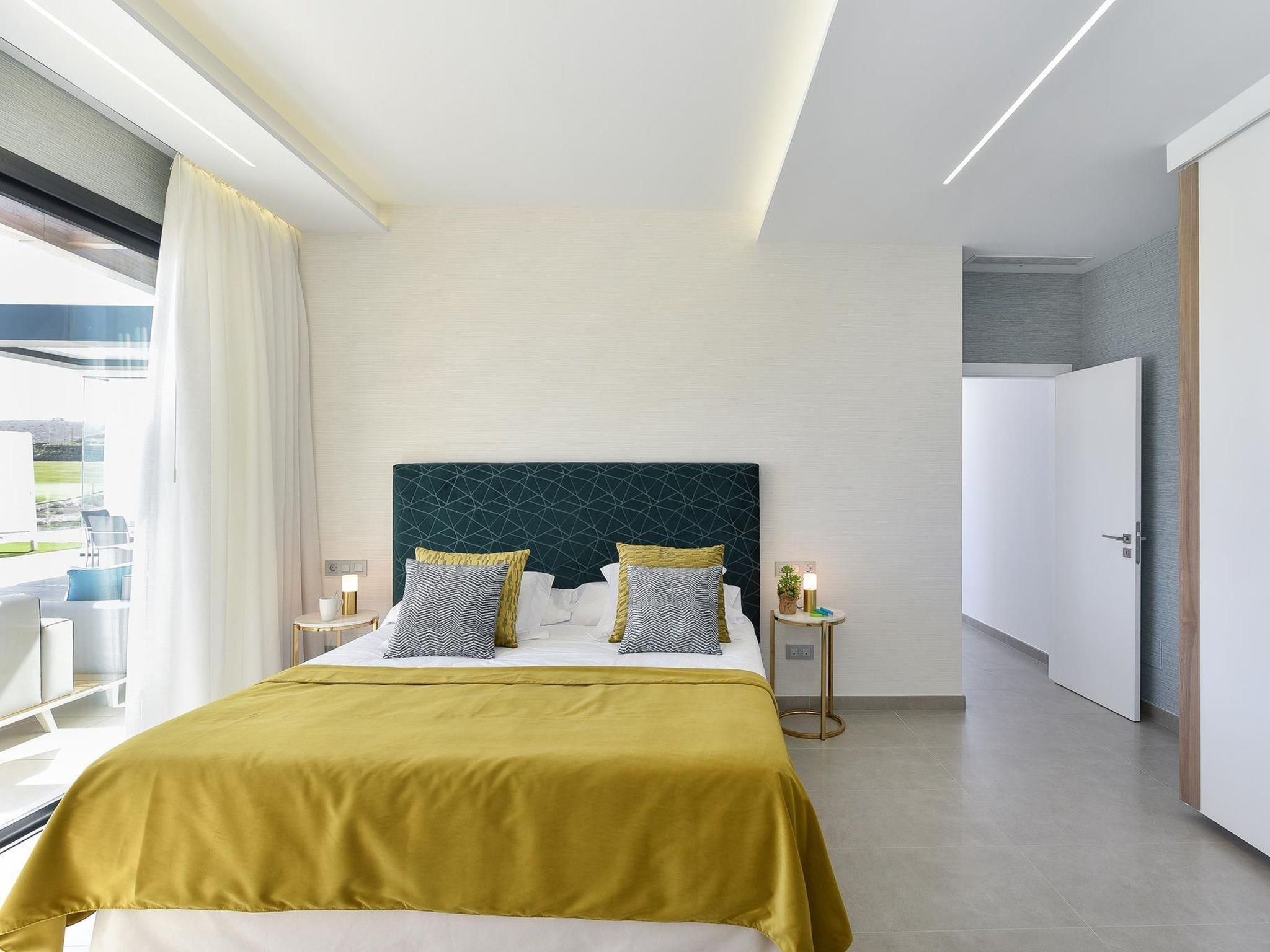 Modern, luxurious villa "Salobre Sunset Villa V", built in 2020, surrounded by meadows. In the centre of Salobre Golf Resort, in a quiet, sunny position on top of a hill. Private: property 1'000 m2, swimming pool angular (11 x 4 m, seasonal availability: 01.Jan. - 31.Dec.). Barbecue, parking on the premises, public parking on the road. Bus stop "Las Crucitas" 19 km. The owner does not accept any youth groups. Neighbourhood highly sensitive to noise. Quietness and good behaviour expected.