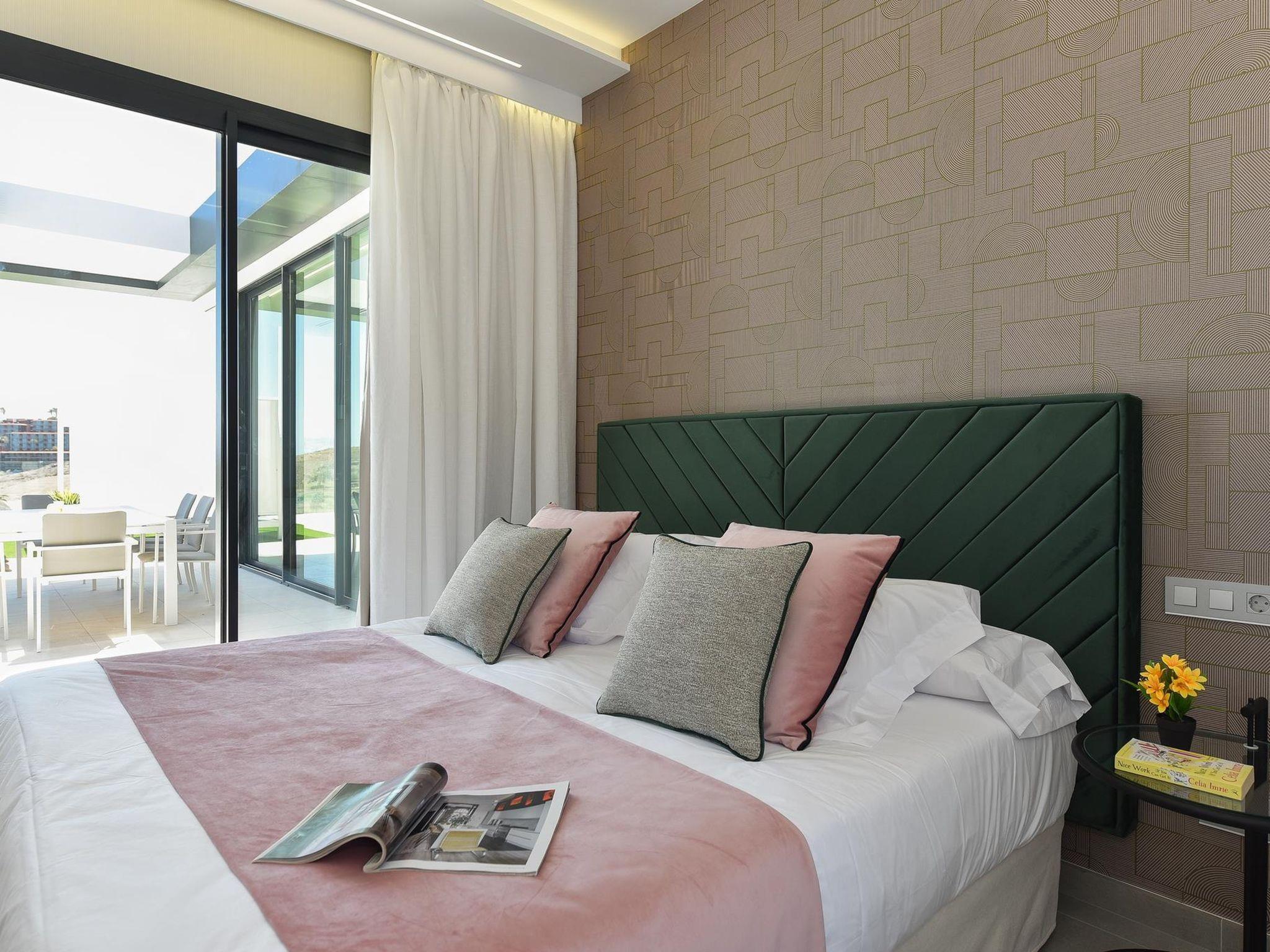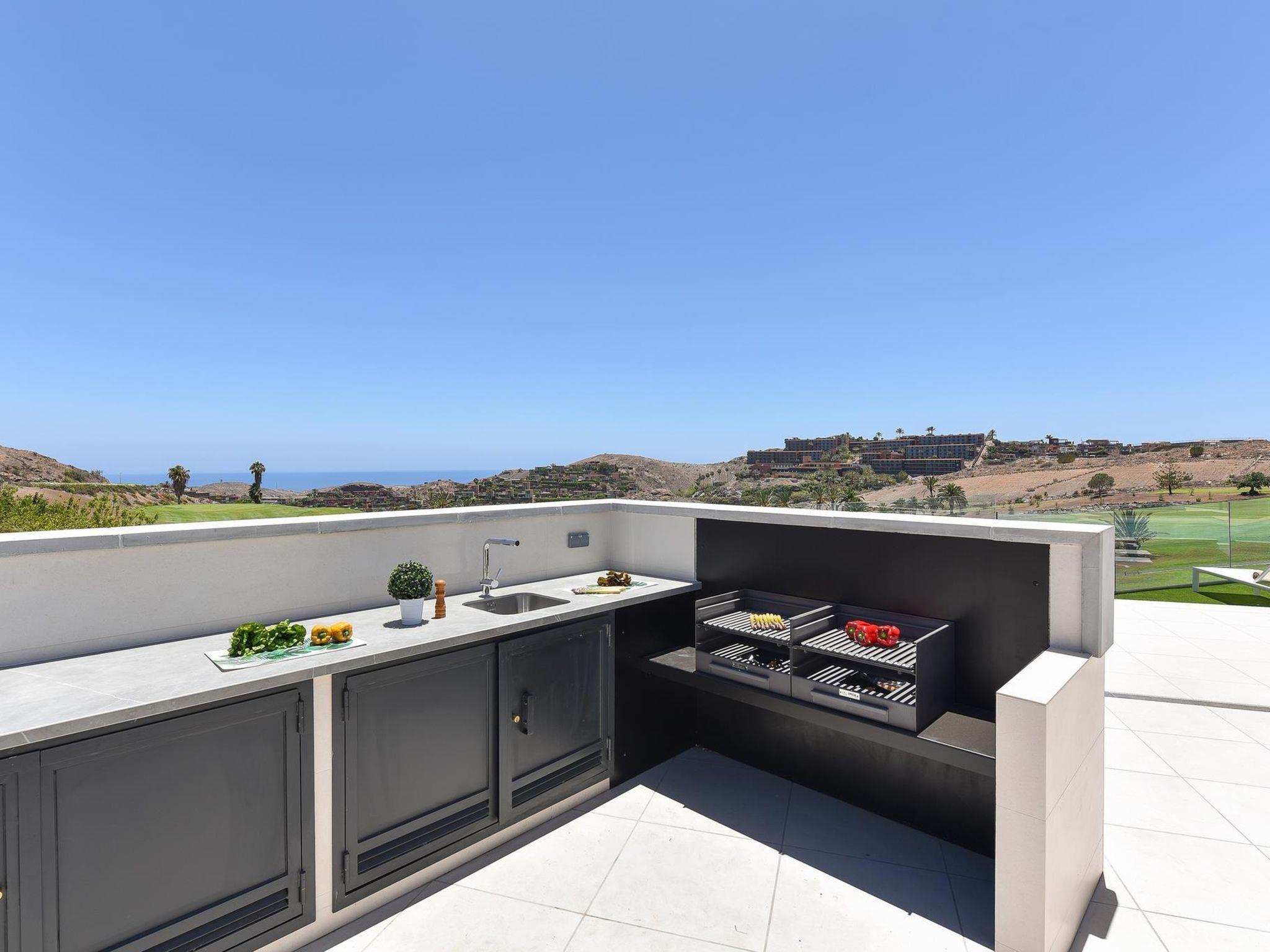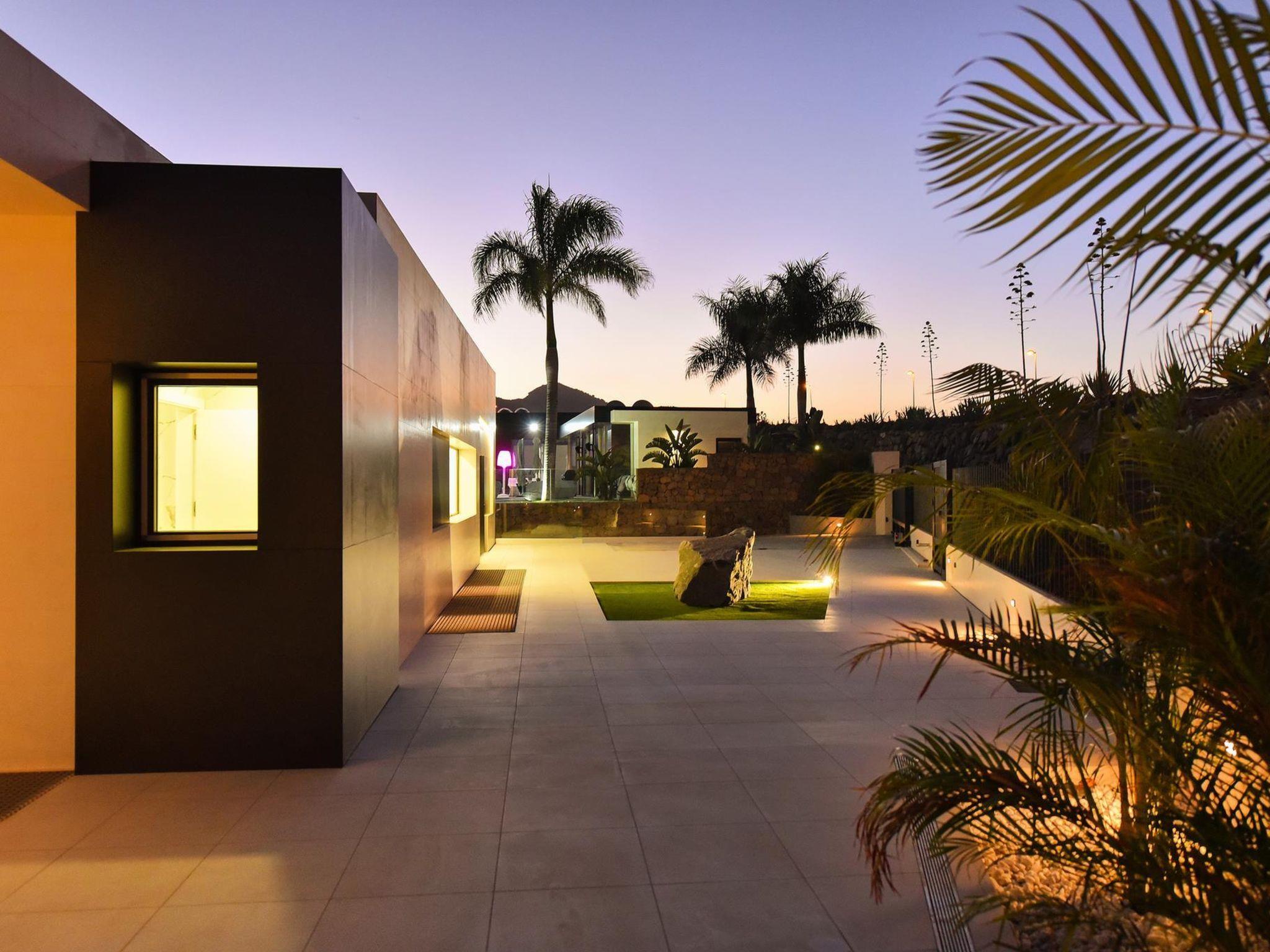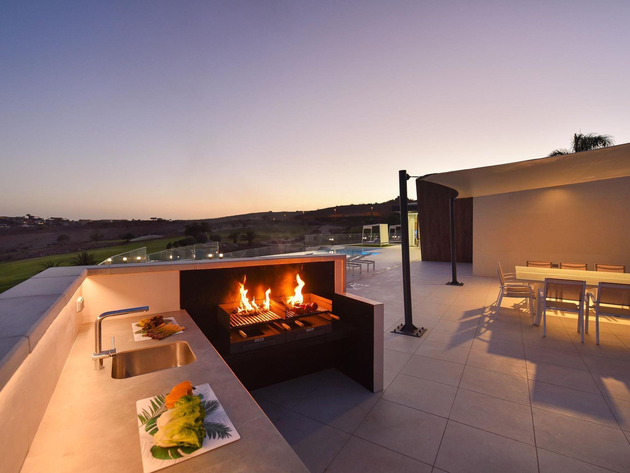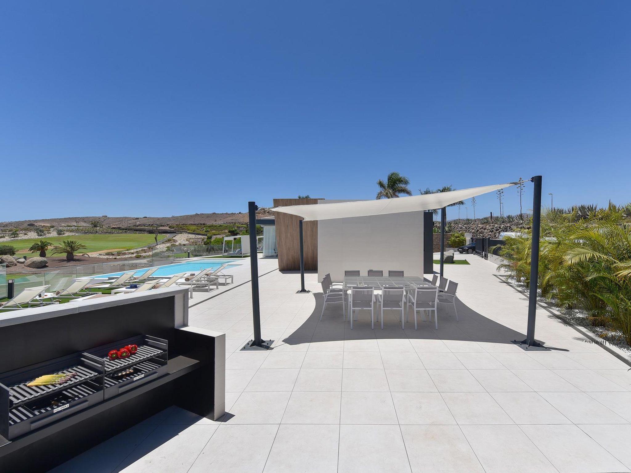 Modern, luxurious villa "Salobre Sunset Villa V", built in 2020, surrounded by meadows. In the centre of Salobre Golf Resort, in a quiet, sunny position on top of a hill. Private: property 1'000 m2, swimming pool angular (11 x 4 m, seasonal availability: 01.Jan. - 31.Dec.). Barbecue, parking on the premises, public parking on the road. Bus stop "Las Crucitas" 19 km. The owner does not accept any youth groups. Neighbourhood highly sensitive to noise. Quietness and good behaviour expected.