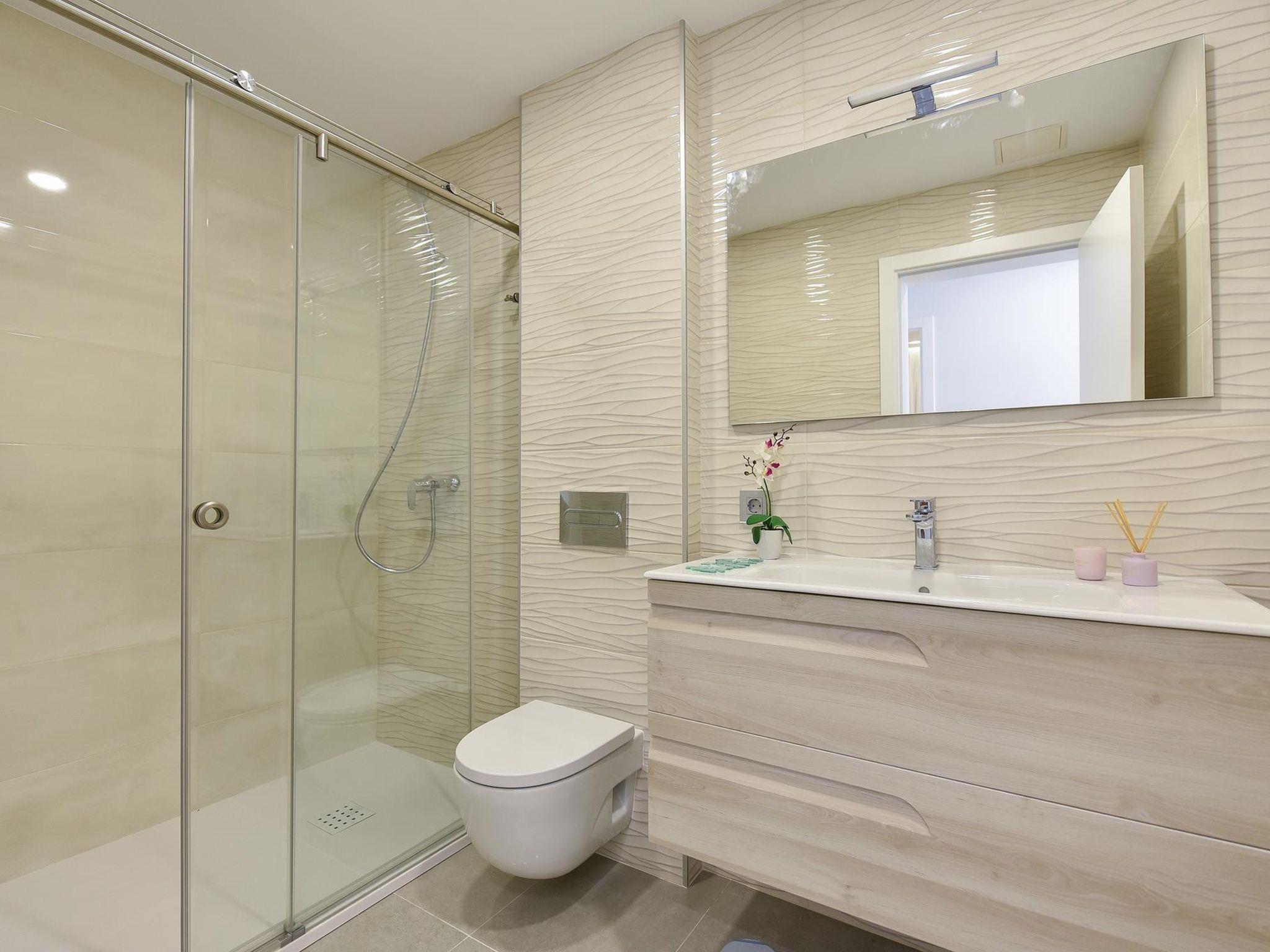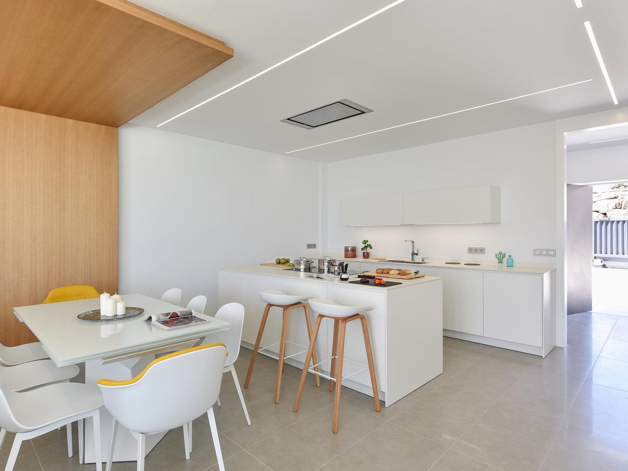 "Sunset 10PAX", 6-room house 480 m2 on 2 levels. Modern and luxurious furnishings: living/dining room with dining table, cable TV, digital TV and air conditioning. Exit to the patio. 3 rooms, each room with 1 french bed, shower/WC and air conditioning. 2 rooms, each room with 2 beds, shower/WC and air conditioning. Open kitchen (oven, dishwasher, 4 ceramic glass hob hotplates, toaster, kettle, microwave, freezer, electric coffee machine). Terrace 300 m2. Terrace furniture, barbecue. View of the mountains and the forest. Facilities: washing machine, dryer, safe, children's high chair, baby cot for up to 2 year olds, hair dryer. Internet (WiFi, free). Parking (1 car). Please note: non-smoking house. Maximum 1 pet/ dog allowed. 2020/75585 // Reg. Nr.: ESFCTU0000350120004736500000000000000VV-35-1-00013996
