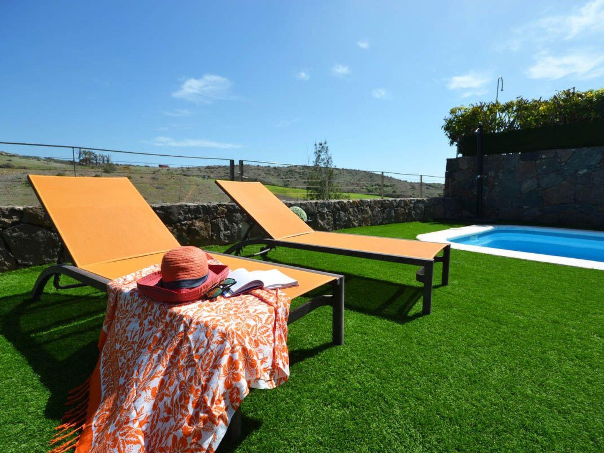 The outdoor space of the villa is perfectly designed to enjoy the beauty of the surroundings. The swimming pool, heated by solar thermal energy (optional, for an extra charge), invites you to take a relaxing dip overlooking the extensive golf course. In addition, the private garden, the furnished porch and a barbecue area offer the ideal setting to enjoy the Gran Canaria climate, whether sunbathing on the sun loungers or enjoying an alfresco meal.