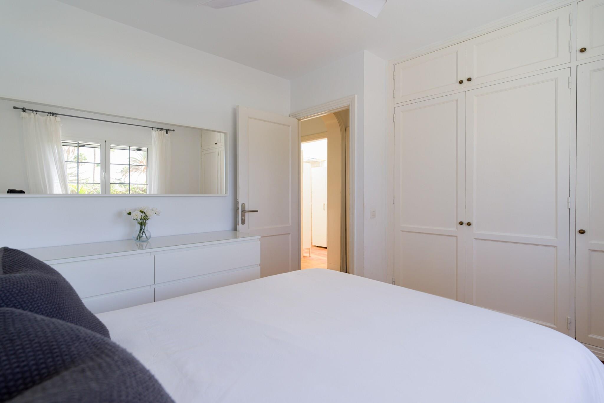 , Køkken(elkedel, brødrister, kaffemaskine, ovn, mikrobølgeovn, opvaskemaskine , køleskab, fryser, ), stue / spisestue(dobbeltsovesofa, Fjernsyn(parabol), spisebord, sofahjørne), soveværelse(dobbeltseng, Fjernsyn), badeværelse(bruser), Internetadgang, Havemøbler, vaskemaskine, klimaanlæg, terrasse, have, grill, parkering, swimmingpool(deles med andre gæster), tennisbane, strygejern, føntørrer