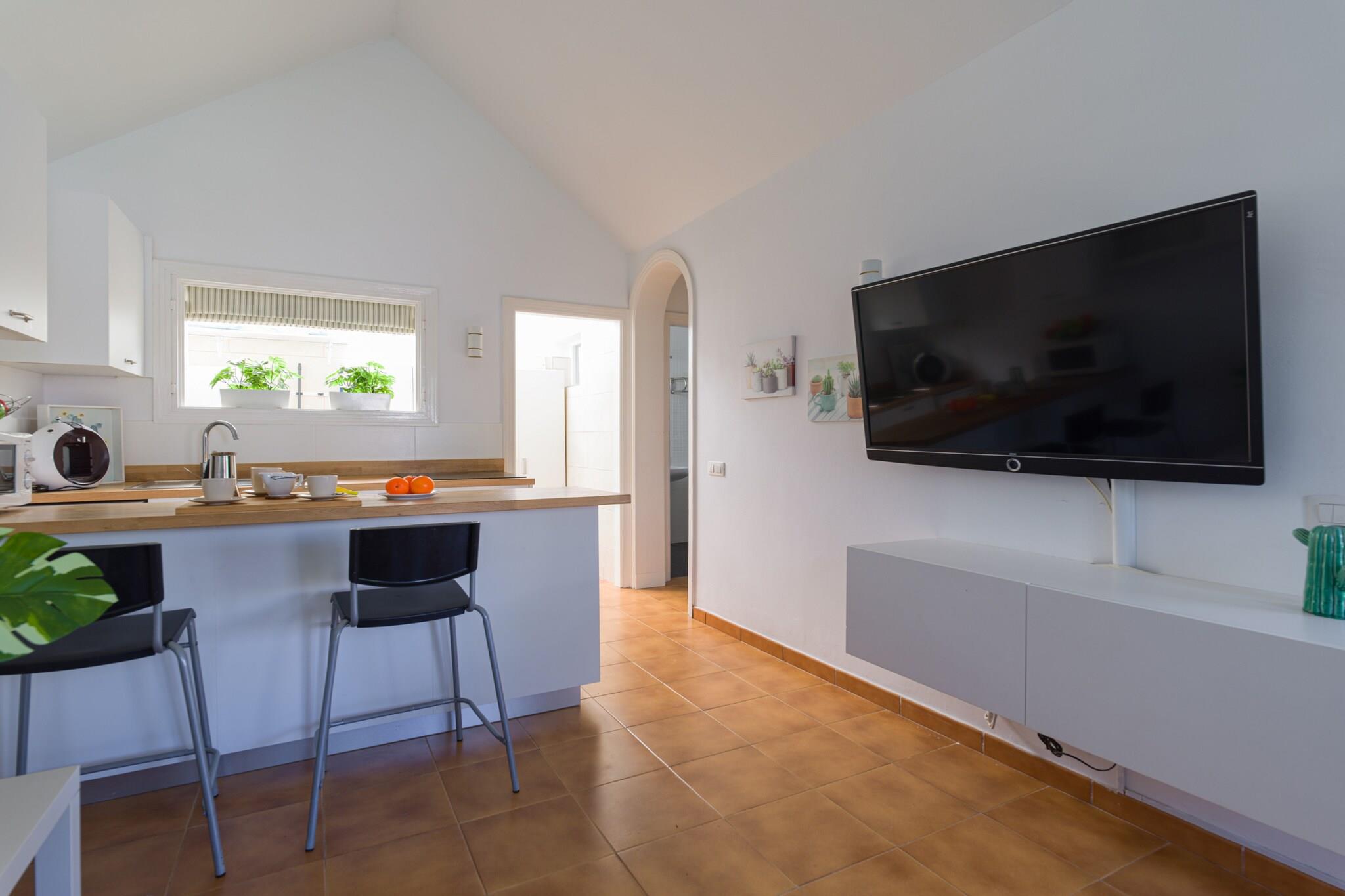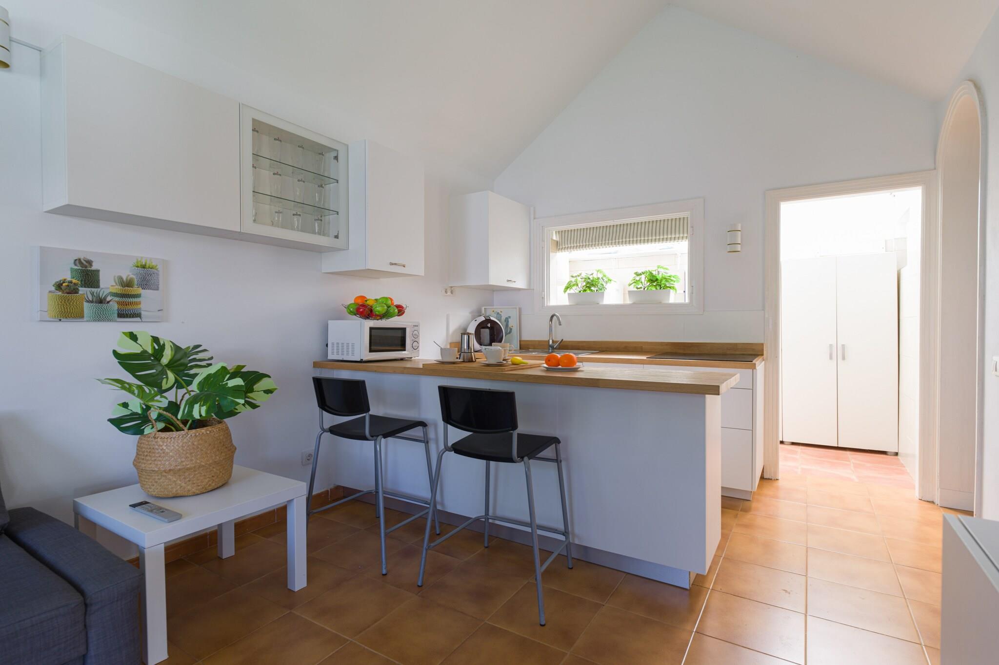Denne charmerende bungalow tilbyder et roligt tilflugtssted i et fredeligt boligkompleks, komplet med en fælles pool og tennisbane. Ejendommen har et soveværelse med en dobbeltseng og loftsventilator samt en sovesofa i opholds-/spiseområdet, der kan rumme yderligere to gæster. Med højhastigheds-Wi-Fi, et smart-tv med internationale kanaler, aircondition i stuen og et fuldt udstyret køkken med opvaskemaskine og vaskemaskine giver denne bungalow et komfortabelt og moderne ophold. Den private terrasse med spiseplads og grill er ideel til udendørs måltider og afslapning. Det er også kæledyrsvenligt og tillader én hund mod et ekstra gebyr, hvilket gør det perfekt til familier eller små grupper. Beliggende i et roligt område, er bungalowen kun 200 meter fra et supermarked og restauranter, som tilbyder nem adgang til daglige fornødenheder. Et indkøbscenter, bowlingbane og ferieattraktioner som Holiday World ligger kun 600 meter væk. Golfentusiaster vil sætte pris på at være kun 950 meter fra den nærmeste golfbane. For strandelskere ligger den smukke Maspalomas-strand kun 3,5 km væk, og lufthavnen ligger 30 minutters kørsel fra ejendommen. Det omkringliggende område byder på et udvalg af restauranter, caféer og barer, der byder på masser af spise- og underholdningsmuligheder. Indvendigt er bungalowen designet med materialer i topkvalitet og store vinduer, der tillader masser af naturligt lys at fylde rummet. Køkkenet er fuldt udstyret, hvilket gør det nemt for gæsterne at tilberede måltider, når det passer dem.