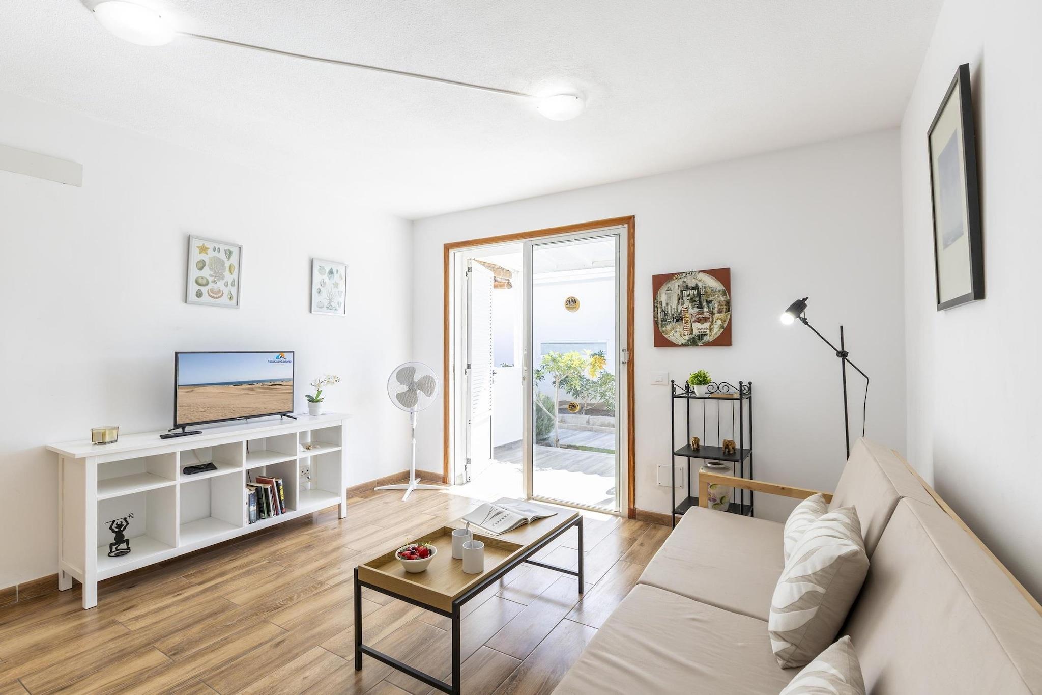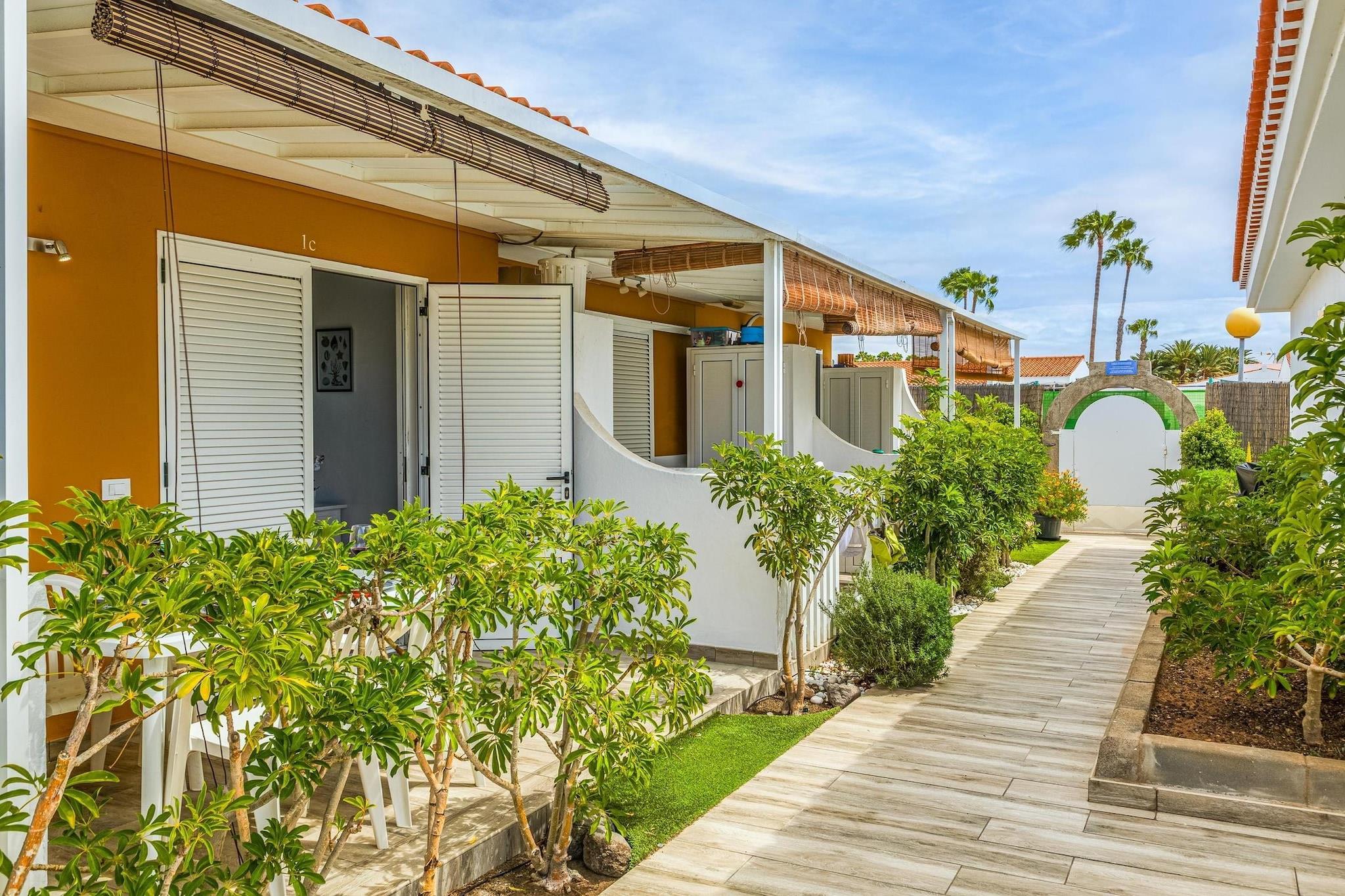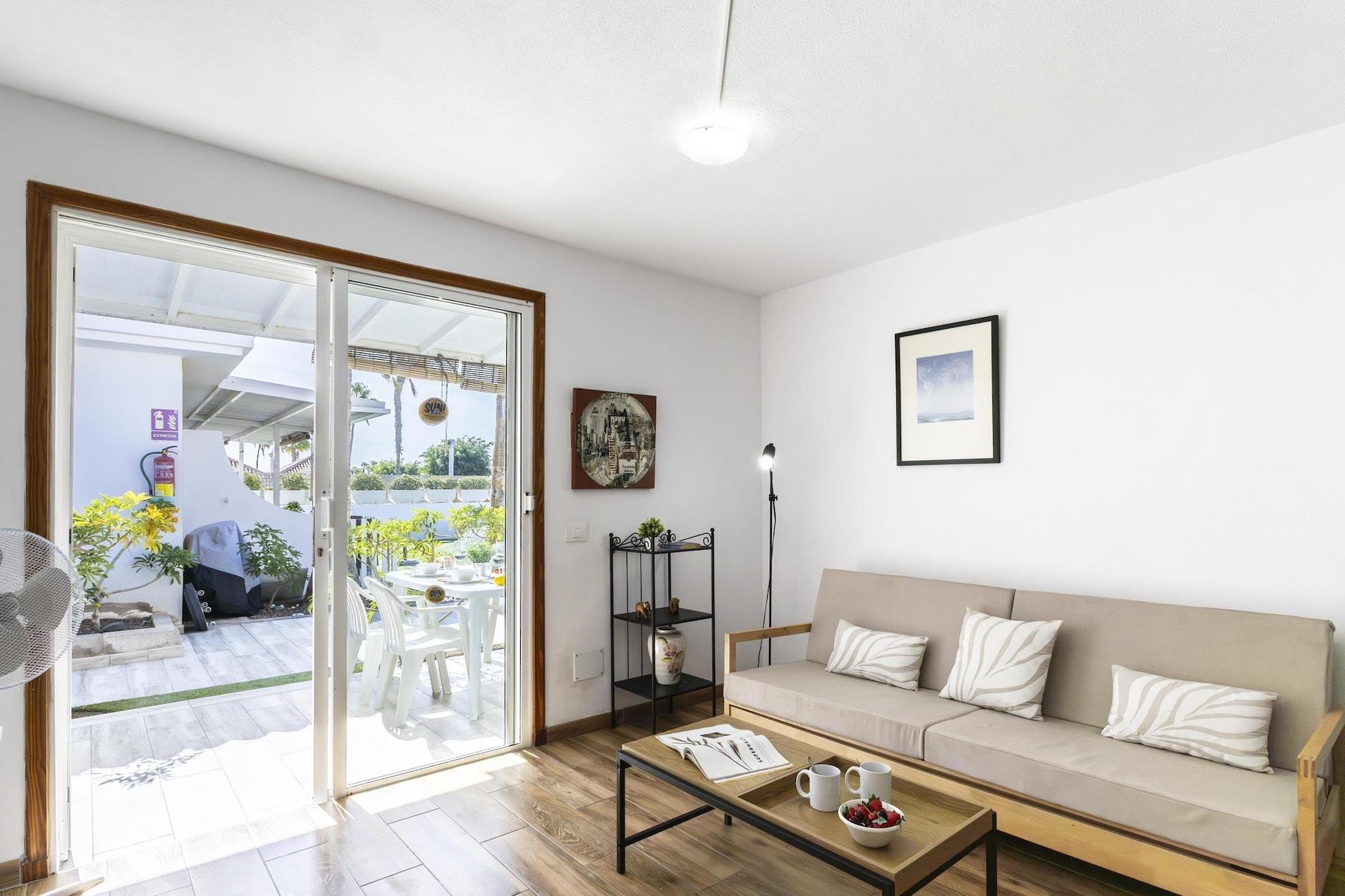 Oplev et roligt og tilgængeligt tilflugtssted i hjertet af solrige Maspalomas, hvor livets tempo naturligt falder til ro. Dette charmerende feriehus i ét plan er et sjældent fund, designet med en åben og nem planløsning, der gør det til et perfekt valg for familier med små børn, seniorer eller gæster med nedsat mobilitet. Fra det øjeblik du træder ind, inviterer det lyse og airconditionerede opholdsrum dig til at slappe af, mens det fuldt udstyrede køkken - komplet med opvaskemaskine og kaffemaskine - sikrer, at hvert måltid er en leg at tilberede. Magien ved dette ophold udfolder sig virkelig i dets udendørsområder. Din private terrasse fungerer som et afsidesliggende fristed, hvor du kan nyde den kanariske sol på komfortable liggestole eller nyde en morgenmad under åben himmel med udsigt over de frodige, grønne omgivelser. Når middagsvarmen sætter ind, fører et par skridt dig til den fælles udendørs swimmingpool, en glitrende oase perfekt til en forfriskende dukkert. Fordi alt er på ét niveau, er overgangen fra din morgenkaffe på terrassen til en svømmetur i poolen ubesværet og inkluderende for alle. Beliggenhed er alt, og denne ejendom placerer dig præcis, hvor du ønsker at være. Beliggende ved siden af det prestigefyldte Campo Internacional, er du kun en kort køretur fra de ikoniske klitter i Maspalomas og den eksklusive stemning i Meloneras. Uanset om du udforsker lokale butikker og restauranter eller tilbringer en dag på stranden, føles det som at komme hjem at vende tilbage til denne rolige bungalow. Hver detalje er plejet med omhu, så du blot kan fokusere på at skabe minder under palmerne.