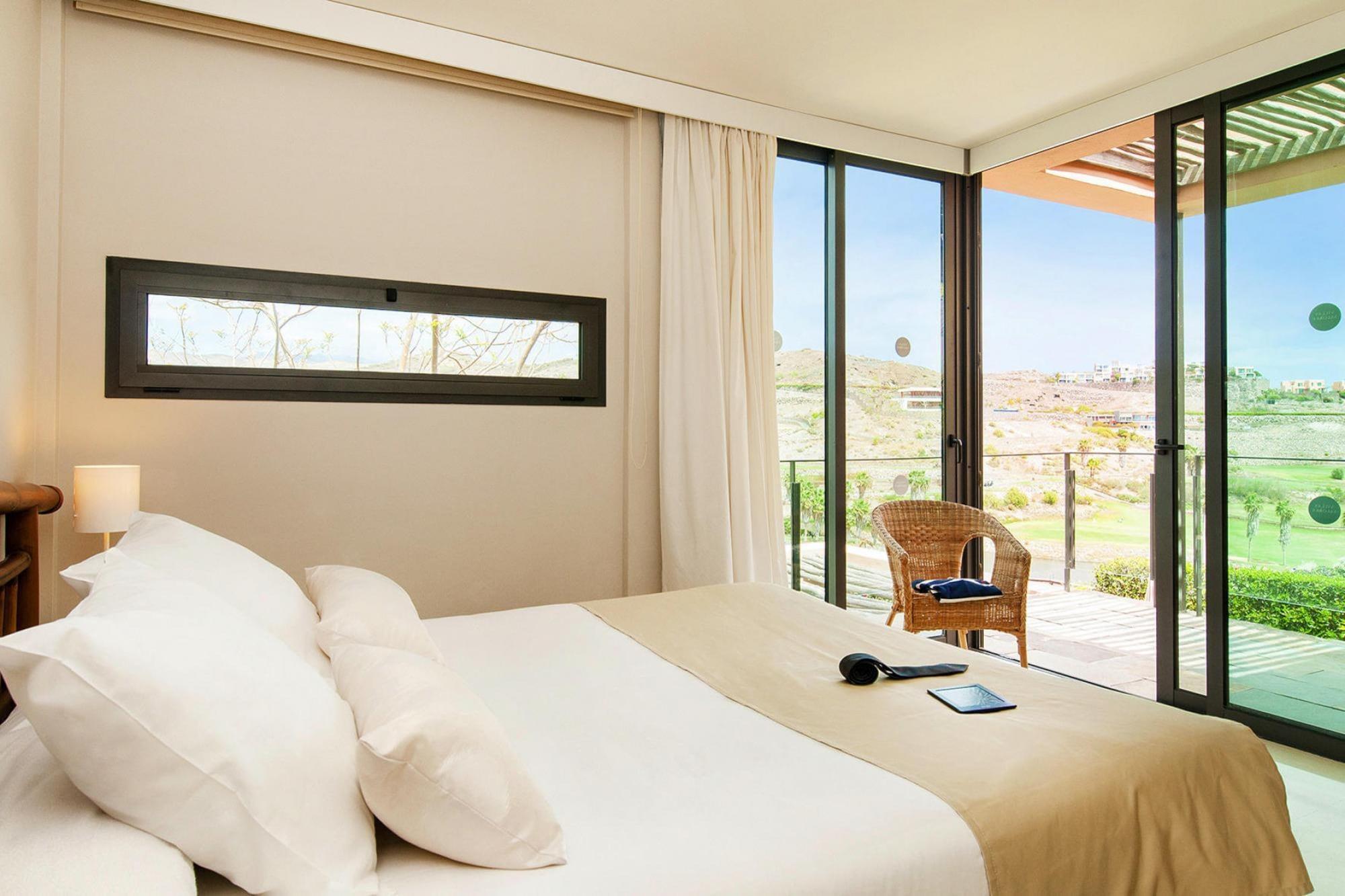 Ferievilla med udendørs pool og et lyst, moderne design med åben stue. Panoramavinduer indtil gulvet efterlader meget lys i huset og giver dig en smuk udsigt over omgivelserne. Hvem vil ikke gerne slappe af på terrassen med en god bog og en kop kaffe og så køle af i poolen? Golfspillere kan forbedre deres handicap under deres ferie, da villaen ligger lige ved golfbanen og som villagæst får du greenfeed-rabat. South Golf Course (18 huller) har en længde på 6.112 meter og et par på 71 slag, North Golf Course (18 huller) har en længde på 5.524 meter og et par på 72 slag. Maspalomas er den ældste badeby på Gran Canarias sydkyst og er kendt for sine enorme klitter, som er seks kilometer lange og en til to kilometer brede. Det 68 meter høje El Faro fyrtårn, bygget i 1889, knejser stolt i luften. Ved fyret ligger en oase kaldet "La Charca", hvor mange vandfugle yngler. Ligesom klitterne har den været under beskyttelse siden 1987. Højdepunkter! Ekstra inkluderet: alle forbrugsbaserede omkostninger, linnedpakke, slutrengøring, WIFI.