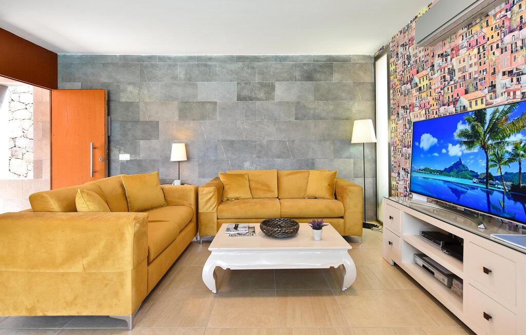 Husets smagfulde møbler skaber en behagelig, men praktisk atmosfære. I opholdsstuen kan I nyde den vellykkede blanding af rustikke elementer, komfort og moderne design. Den rummelige sofa lægger op til at slappe af. Sæt jer til rette og tilbring afslappende aftener foran fjernsynet eller åbn dørene til terrassen. I kan nemt tilberede jeres måltider i det separate køkken.