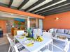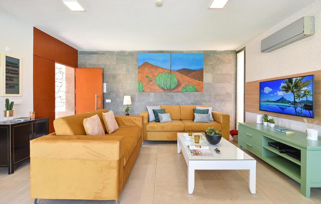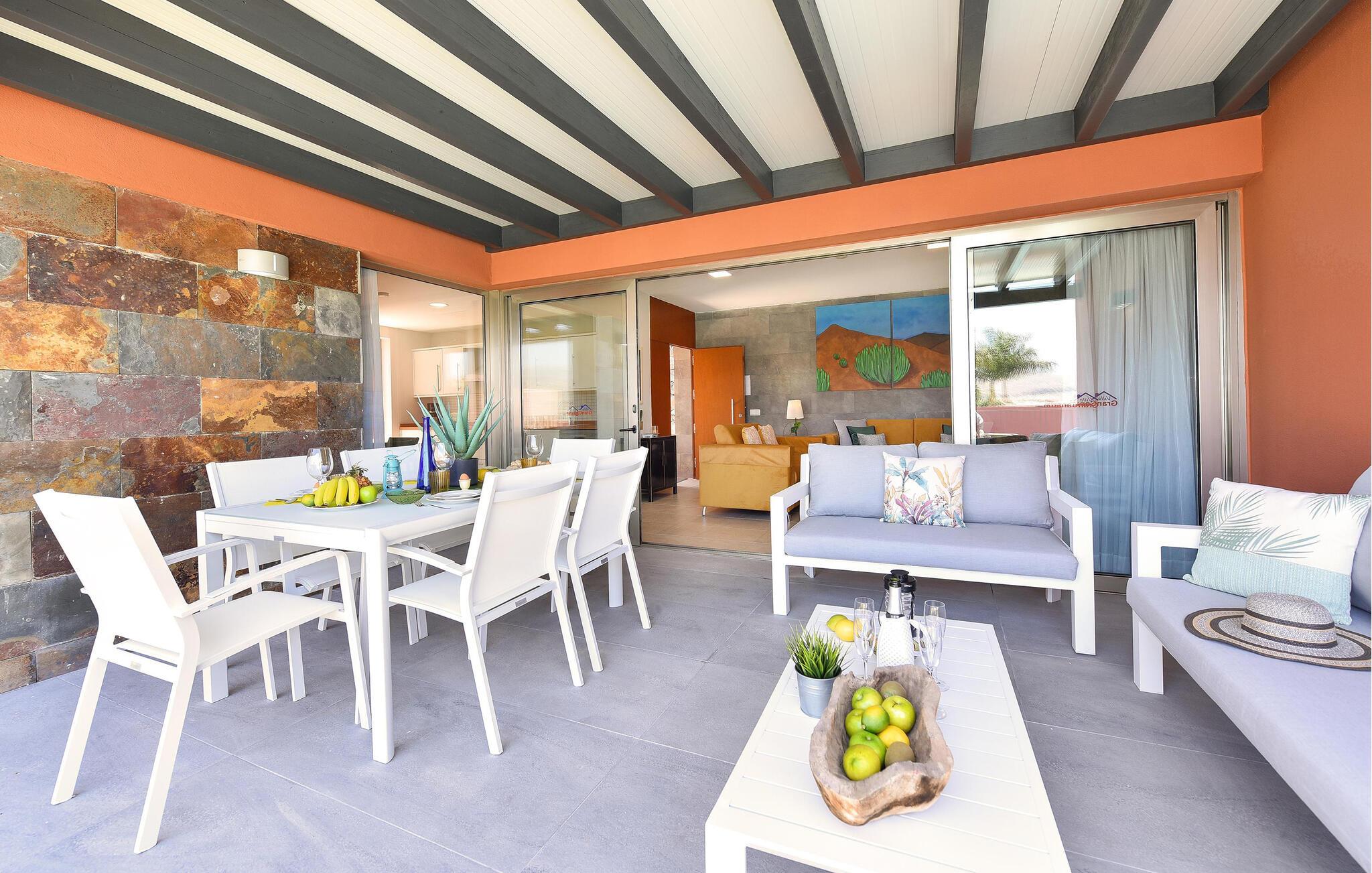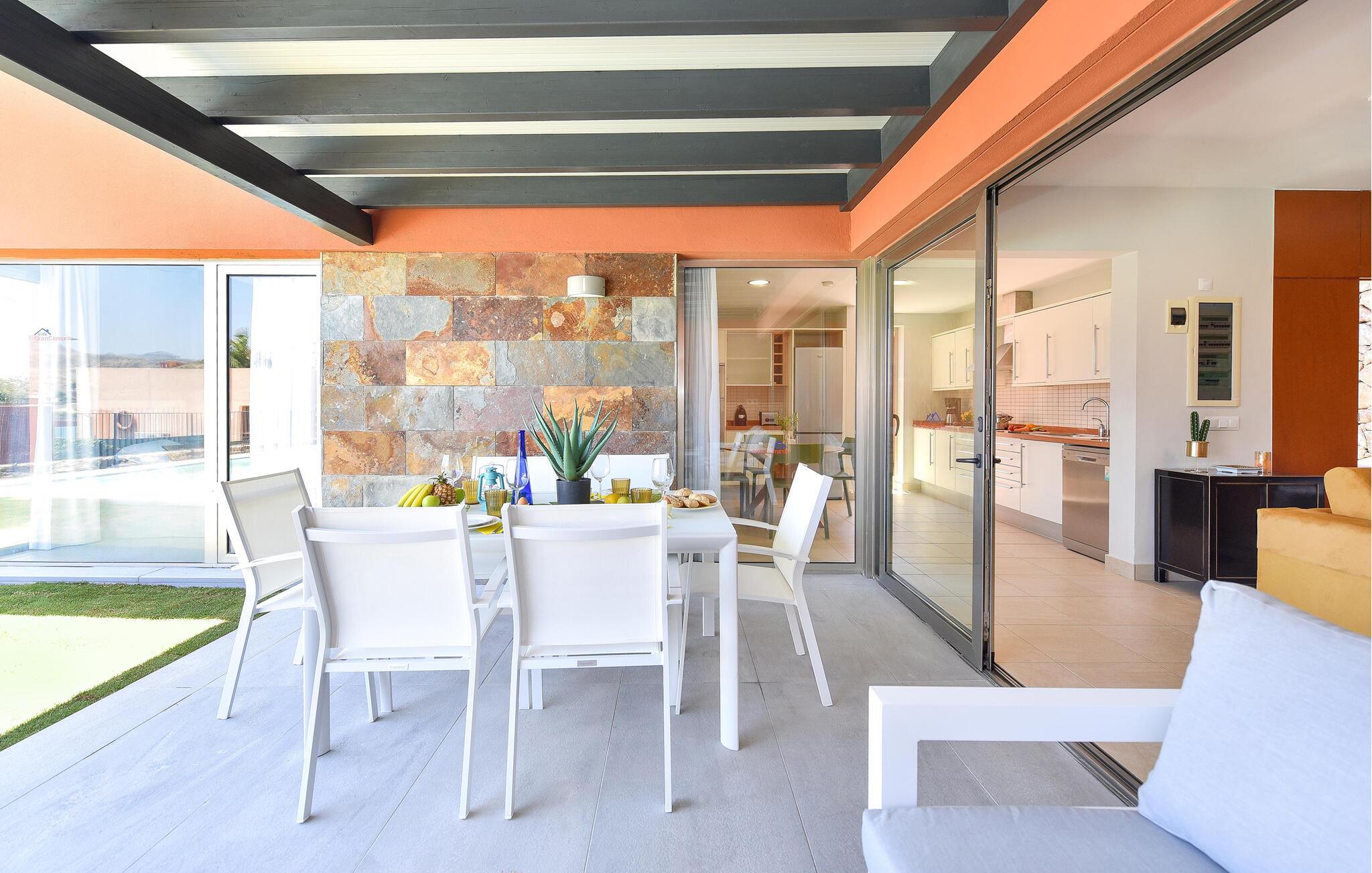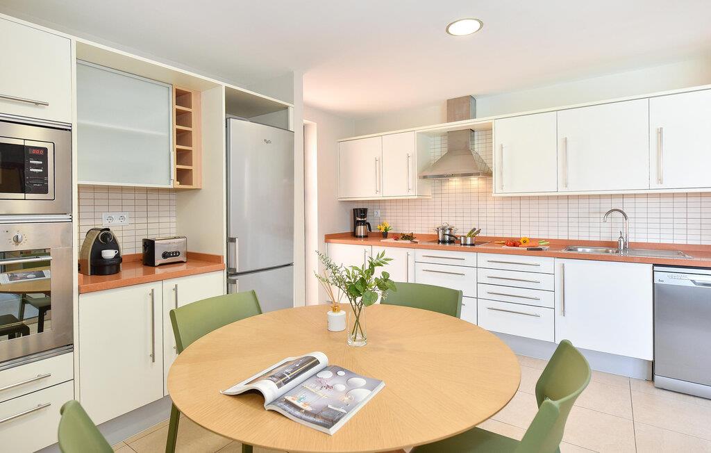 Husets smagfulde møbler skaber en behagelig, men praktisk atmosfære. I opholdsstuen kan I nyde den vellykkede blanding af rustikke elementer, komfort og moderne design. Den rummelige sofa lægger op til at slappe af. Sæt jer til rette og tilbring afslappende aftener foran fjernsynet eller åbn dørene til terrassen. I kan nemt tilberede jeres måltider i det separate køkken.