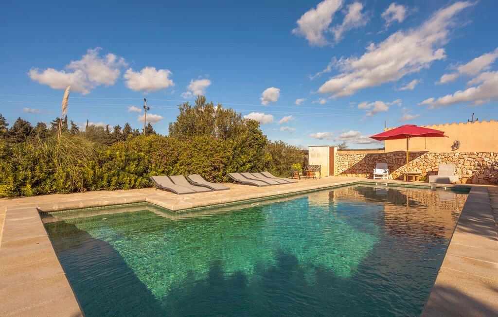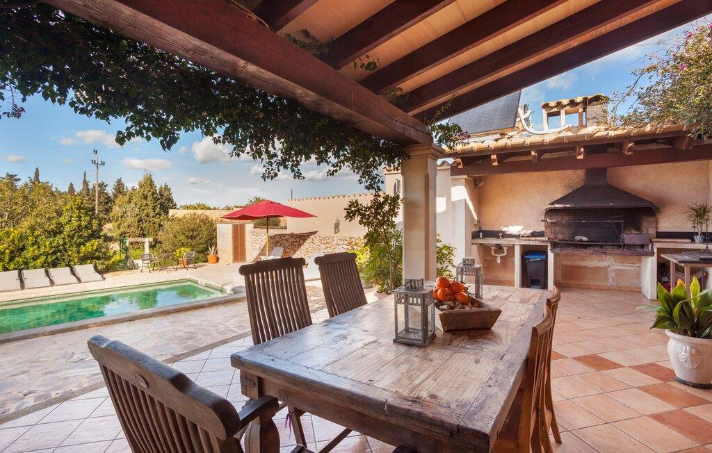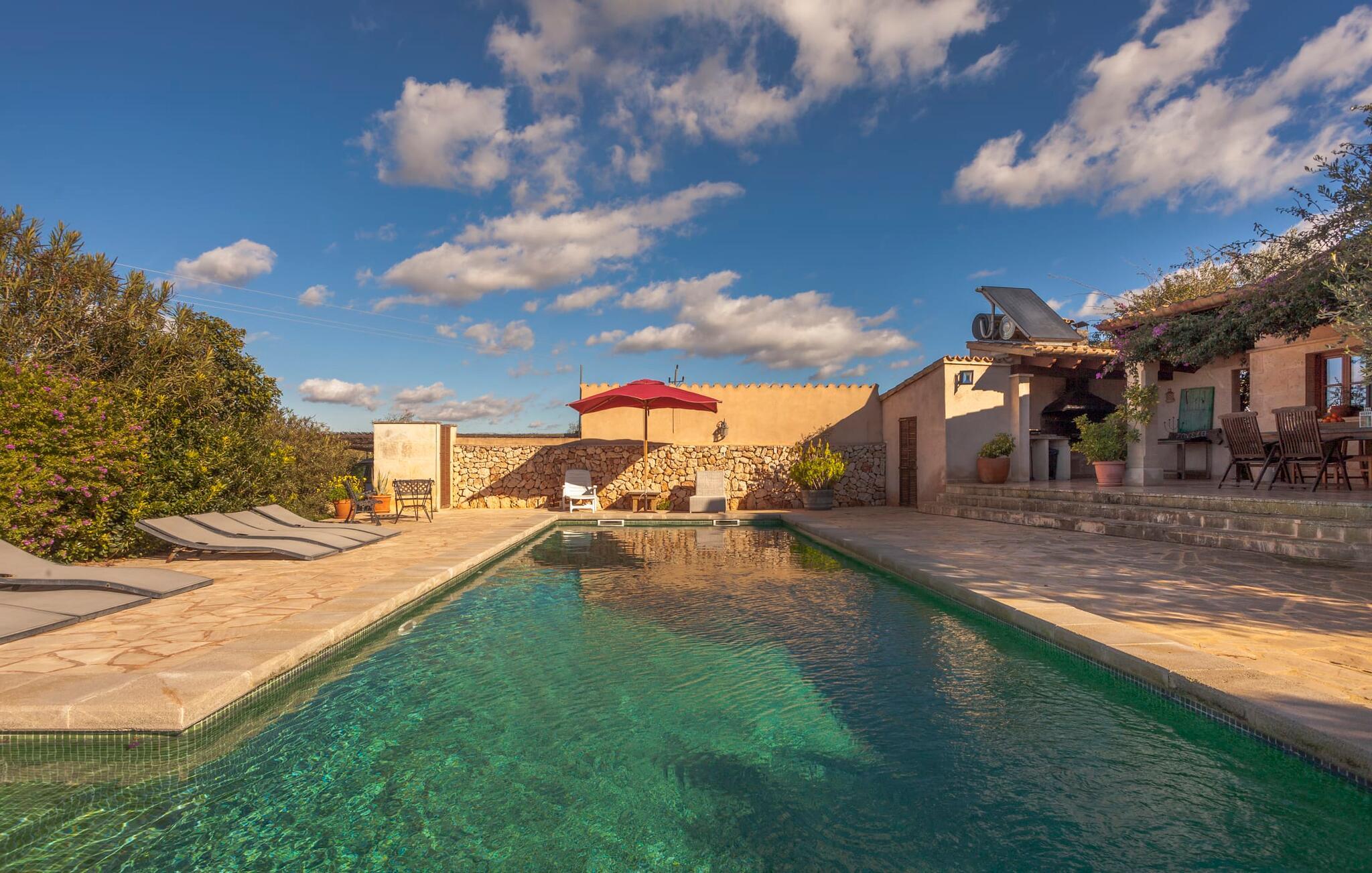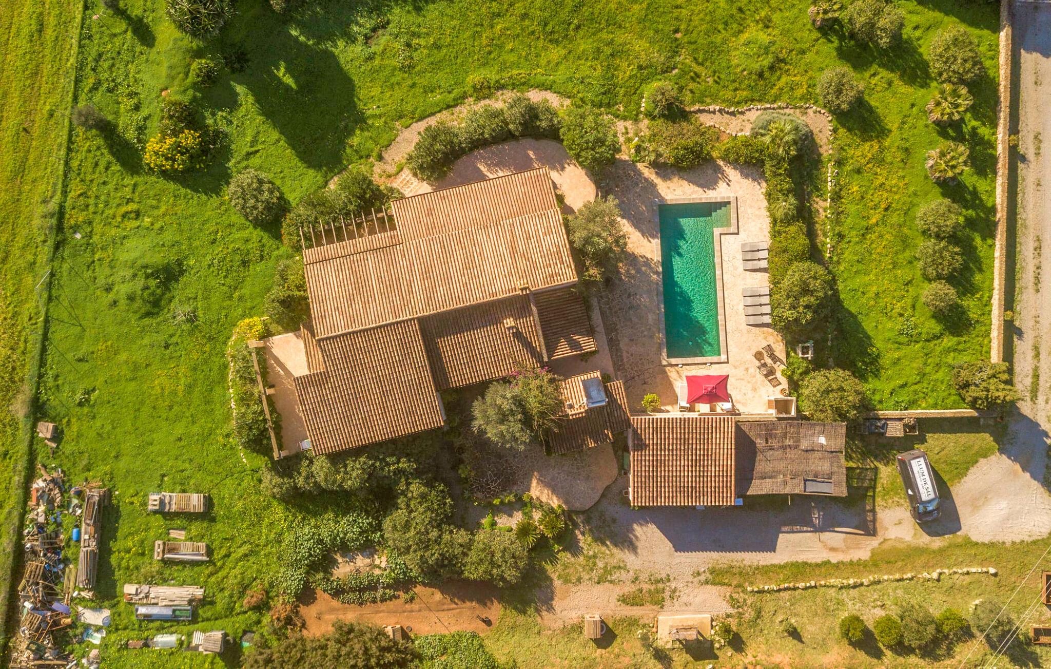 Et helt fantastisk sommerhus midt i naturen – det er villaen “San Blai Llum de Sal”. I en rolig beliggenhed og langt væk fra stress og jag kan I slappe af og nyde den fantastiske udsigt over de omkringliggende marker. I behøver bestemt ikke vente længe, før den feriefølelse sætter ind! Uden for villaen danner den store solterrasse med en i jorden pool centrum af komplekset. Komfortable liggestole inviterer jer til at slappe af med en god bog og en kølig drink, og alle vandelskere blandt gæsterne kan svømme længder i poolen. Der er et storslået udekøkken til jeres rådighed, hvor I kan tilberede delikatesser fra det lokale ugentlige marked til middag. Det store, gamle spisebord er helt unikt og fremtryller sammen med de stilrene planter omkring en vidunderlig hyggelig oase af velvære. I sådan et fantastisk miljø er det dobbelt så sjovt at spise sammen med jeres kære! Det indre af villaen byder jer velkommen med en meget varm atmosfære og en masse originalitet. Et åbent køkken med tilstødende opholds- og spiseplads sikrer dejlige samvær. Lige meget om I står i det veludstyrede køkken og serverer mad eller foretrækker at holde en lille pause i den behagelige sofa - her vil ingen være alene længe, og underholdning er garanteret! Og når tiden kommer til lidt mindre underholdende, kan I trække jer tilbage til et af de smukke soveværelser. Her kan I sove behageligt, drømme og lade batterierne op til den næste fantastiske dag. Og den bedste måde at starte dagen på er med et forfriskende brusebad i et af de harmonisk designede badeværelser. Placeringen af denne villa er perfekt for naturelskere og alle, der ønsker afslapning og fred på ferien! Beliggende uden for Campos og omgivet af marker og enge, kan I tage på vandre- eller gåture. Campos selv er hjemsted for et fantastisk, traditionelt ugentligt marked, som bestemt er et besøg værd. Her kan I ikke kun købe kulinariske delikatesser, men også hente en eller to souvenirs. Og mens I er der, bør I gå en tur gennem byens små gader, besøge en af de hyggelige caféer og nyde en lækker mallorcansk kaffe i fred og ro. Hvad kunne være bedre? Om noget, havet. Og det er heller ikke langt væk. Man kan lynhurtigt komme overalt i bil på landevejen, hvilket kan høres fra huset; den betagende naturstrand Es Trenc ligger kun 9,5 km væk. En tur til stranden er derfor et absolut must! Den fantastiske nye villa “San Blai Llum de Sal” ligger idyllisk i den smukke sydlige del af Mallorca med en vid udsigt over den omkringliggende natur. Alle nødvendige ærinder kan klares i byen Campos, kun 3,1 kilometer væk - fra et supermarked til et apotek til en hæveautomat finder I alt hvad I behøver. Og fantastiske sandstrande som Platja es Trenc eller Can Curt er kun henholdsvis 9,5 km og 10,5 km væk.