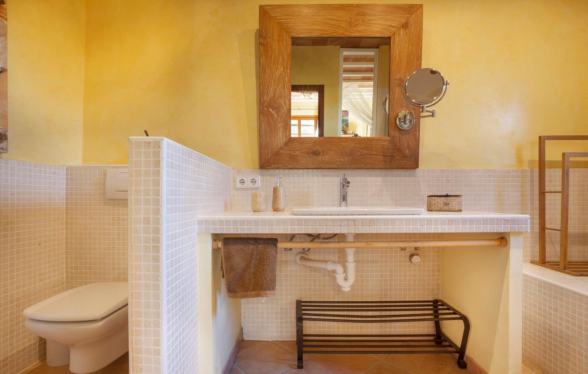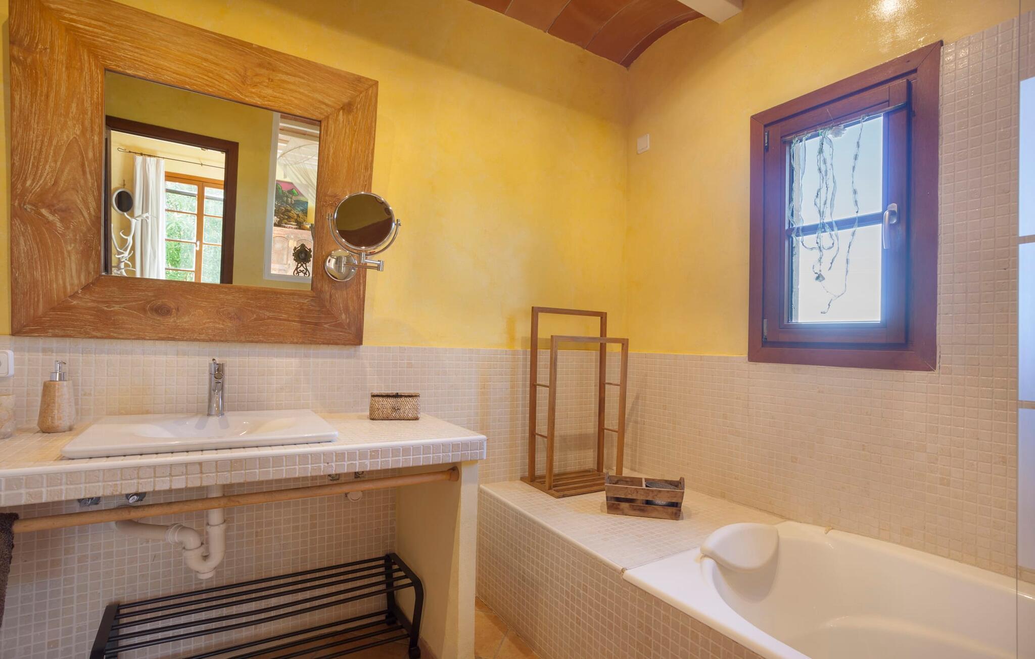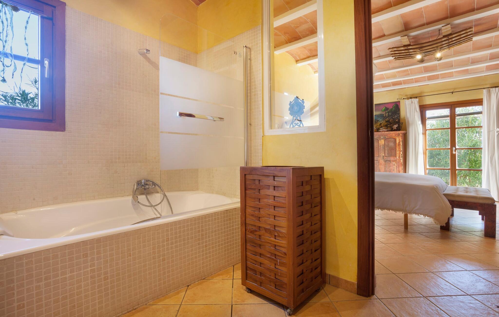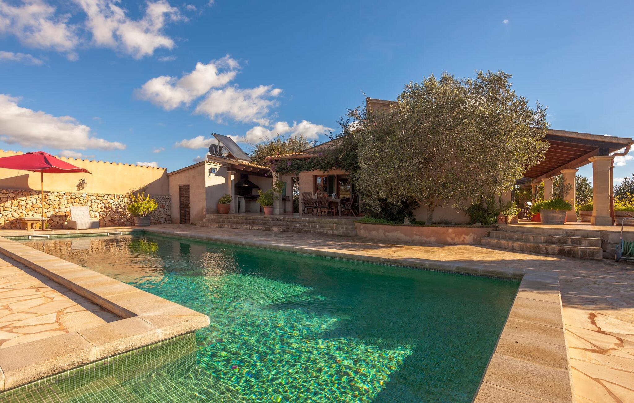 Et helt fantastisk sommerhus midt i naturen – det er villaen “San Blai Llum de Sal”. I en rolig beliggenhed og langt væk fra stress og jag kan I slappe af og nyde den fantastiske udsigt over de omkringliggende marker. I behøver bestemt ikke vente længe, før den feriefølelse sætter ind! Uden for villaen danner den store solterrasse med en i jorden pool centrum af komplekset. Komfortable liggestole inviterer jer til at slappe af med en god bog og en kølig drink, og alle vandelskere blandt gæsterne kan svømme længder i poolen. Der er et storslået udekøkken til jeres rådighed, hvor I kan tilberede delikatesser fra det lokale ugentlige marked til middag. Det store, gamle spisebord er helt unikt og fremtryller sammen med de stilrene planter omkring en vidunderlig hyggelig oase af velvære. I sådan et fantastisk miljø er det dobbelt så sjovt at spise sammen med jeres kære! Det indre af villaen byder jer velkommen med en meget varm atmosfære og en masse originalitet. Et åbent køkken med tilstødende opholds- og spiseplads sikrer dejlige samvær. Lige meget om I står i det veludstyrede køkken og serverer mad eller foretrækker at holde en lille pause i den behagelige sofa - her vil ingen være alene længe, og underholdning er garanteret! Og når tiden kommer til lidt mindre underholdende, kan I trække jer tilbage til et af de smukke soveværelser. Her kan I sove behageligt, drømme og lade batterierne op til den næste fantastiske dag. Og den bedste måde at starte dagen på er med et forfriskende brusebad i et af de harmonisk designede badeværelser. Placeringen af denne villa er perfekt for naturelskere og alle, der ønsker afslapning og fred på ferien! Beliggende uden for Campos og omgivet af marker og enge, kan I tage på vandre- eller gåture. Campos selv er hjemsted for et fantastisk, traditionelt ugentligt marked, som bestemt er et besøg værd. Her kan I ikke kun købe kulinariske delikatesser, men også hente en eller to souvenirs. Og mens I er der, bør I gå en tur gennem byens små gader, besøge en af de hyggelige caféer og nyde en lækker mallorcansk kaffe i fred og ro. Hvad kunne være bedre? Om noget, havet. Og det er heller ikke langt væk. Man kan lynhurtigt komme overalt i bil på landevejen, hvilket kan høres fra huset; den betagende naturstrand Es Trenc ligger kun 9,5 km væk. En tur til stranden er derfor et absolut must! Den fantastiske nye villa “San Blai Llum de Sal” ligger idyllisk i den smukke sydlige del af Mallorca med en vid udsigt over den omkringliggende natur. Alle nødvendige ærinder kan klares i byen Campos, kun 3,1 kilometer væk - fra et supermarked til et apotek til en hæveautomat finder I alt hvad I behøver. Og fantastiske sandstrande som Platja es Trenc eller Can Curt er kun henholdsvis 9,5 km og 10,5 km væk.