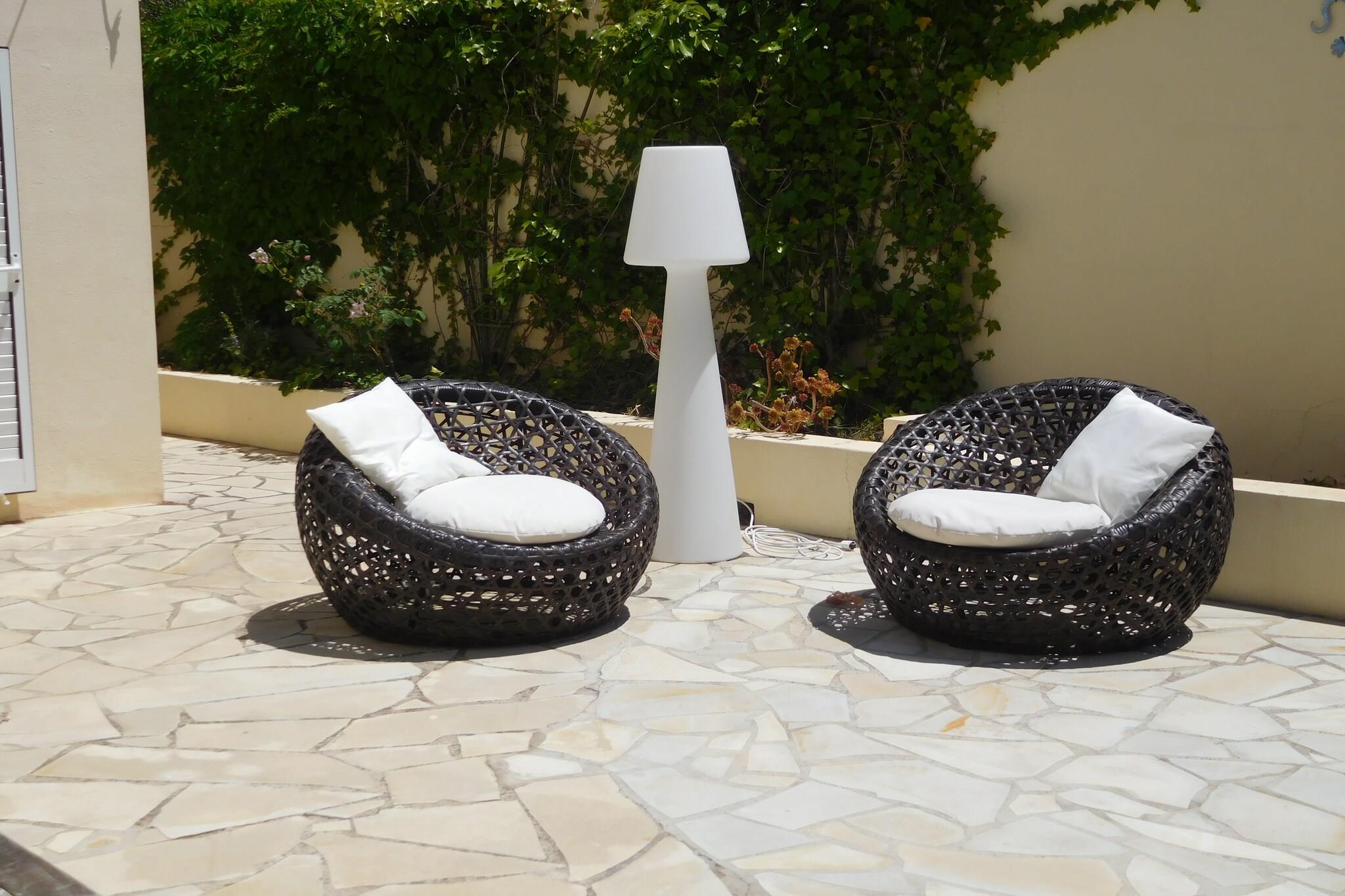 Denne stilfulde villa til op til seks personer, med privat pool, opholdsstue og overdækkede terrasser med total privatliv og ro ligger 15 km fra Ibiza by. På indersiden består denne villa af slanke og attraktive værelser, hvor du vil nyde godt af dig selv. Villaen er stilfuld og moderne. Du kan slappe af i sofaen ved tv'et eller med musik fra iPod musiksystemet. Du kan også slappe af i nærheden af den elegante pejs, hvor du kan curle op hyggeligt og hyggeligt med den dejlige lyd af en åben ild i baggrunden. Huset har en rummelig terrasse med en træ spiseplads, og der er en solterrasse med stilfulde solsenge omkring den store swimmingpool med romersk trin. Så er der den hyggelige bar ved den overdækkede chill-out, kort sagt et godt hjem som en base for dit Ibiza eventyr. Denne afslappede villa ligger nær San José og San Agustin. Dejlige vestkyststrande som Cala Conta med Sunset Ashram strandklubben ligger 10 minutter væk. Den attraktive landsby San José ligger 5 minutters kørsel, og Ibiza Town med sine trendy strande som Salinas og Cala Yundal med Blue Marlin Beach Club ligger ca. 15 km væk.