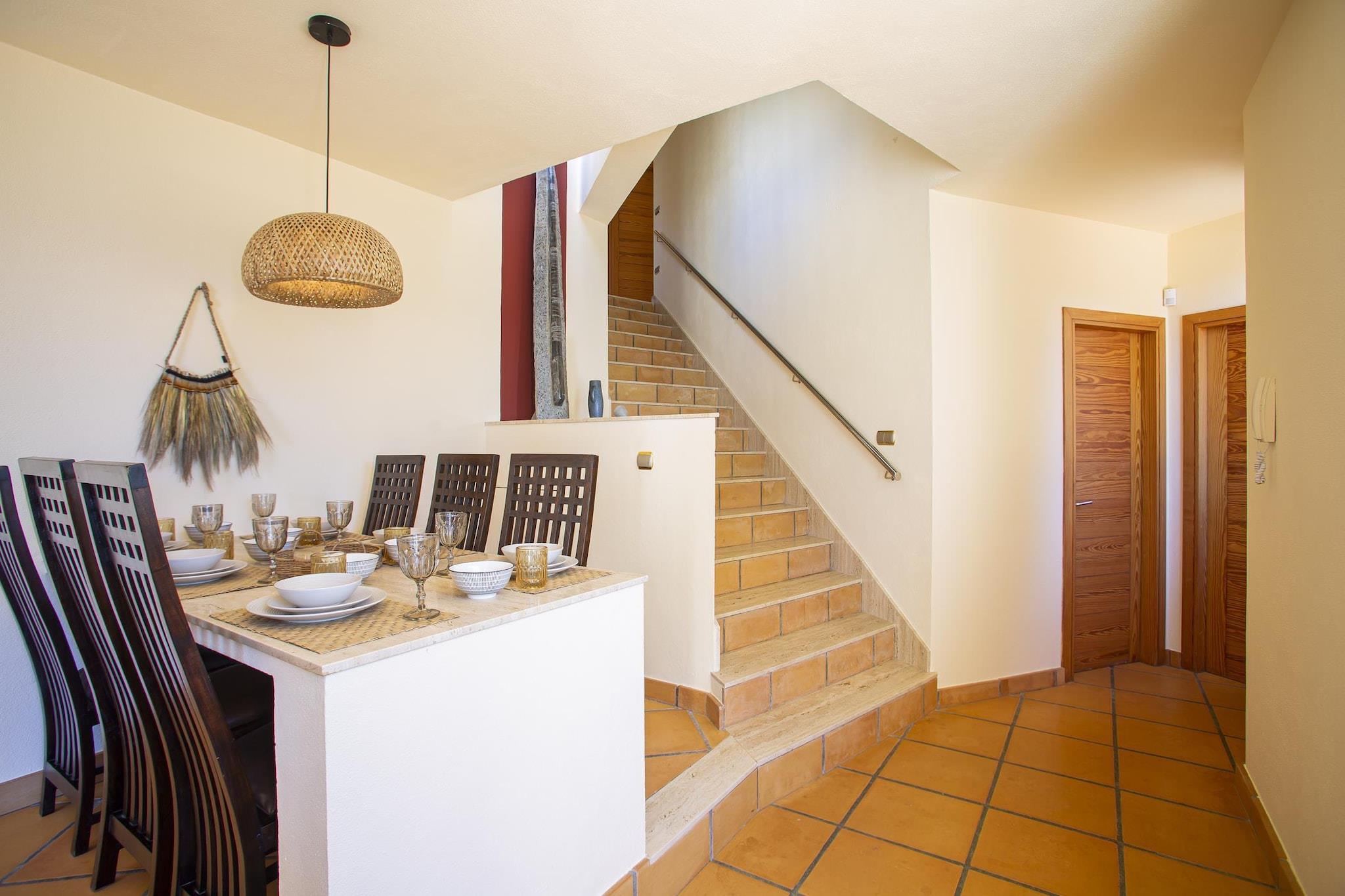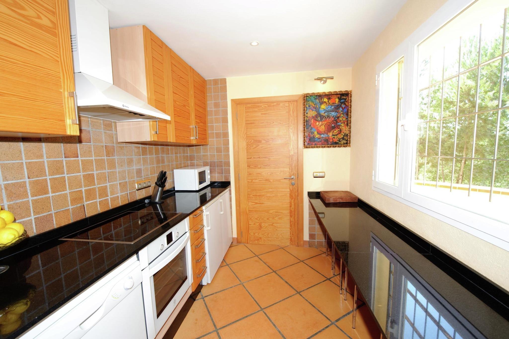 På 1. etage: (Køkken(komfur(glaskeramisk), ovn, mikrobølgeovn, opvaskemaskine , køle-fryseskab), stue / spisestue(Fjernsyn, spisebord, pejs, sofahjørne), badeværelse(håndvask, toilet)) På 2. etage: (soveværelse(dobbeltseng, terrasse), soveværelse(dobbeltseng, terrasse), Soveværelse med badeværelse(dobbeltseng, pejs, badekar, bruser, 2x håndvask, toilet, terrasse), badeværelse(badekar, bruser, 2x håndvask, toilet)) vaskemaskine, balkon, varme(gennem aircondition), klimaanlæg, terrasse(privat, overdækket), tagterrasse, have(privat), havemøbler, solstole, grill, parkering, swimmingpool(privat, 7 x 7 m., opened from Jan upto and including Dec), loungemøbler