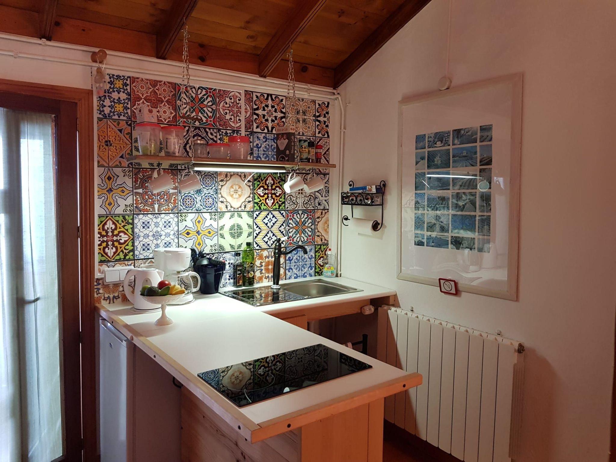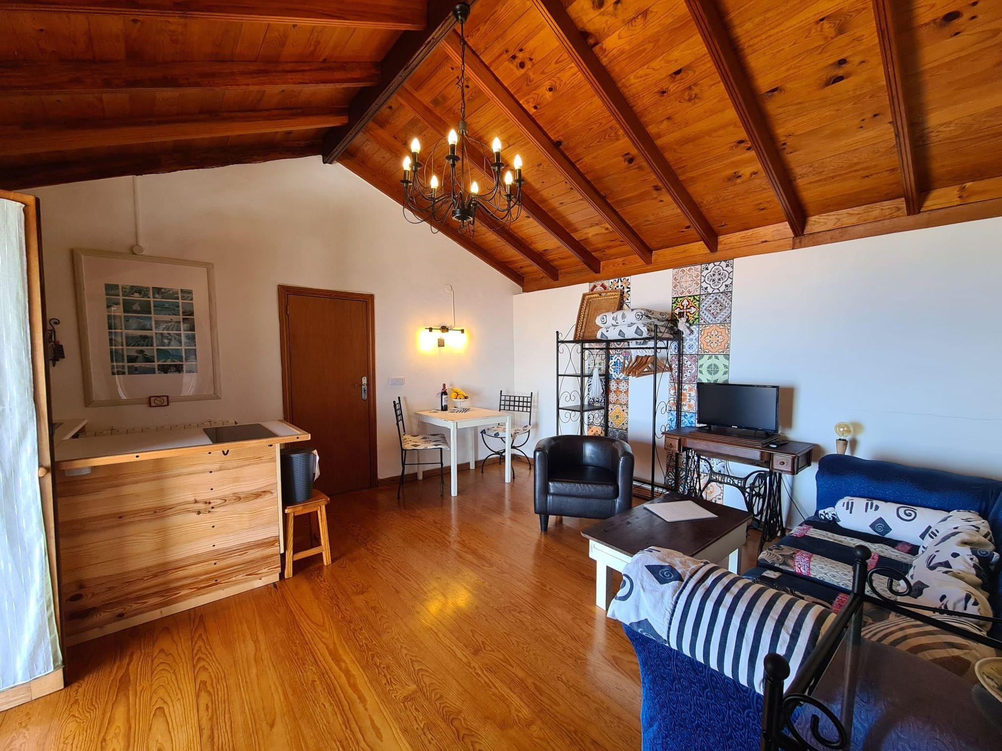 In the living area there is a small kitchenette with dining area and you have a view of the Atlantic.