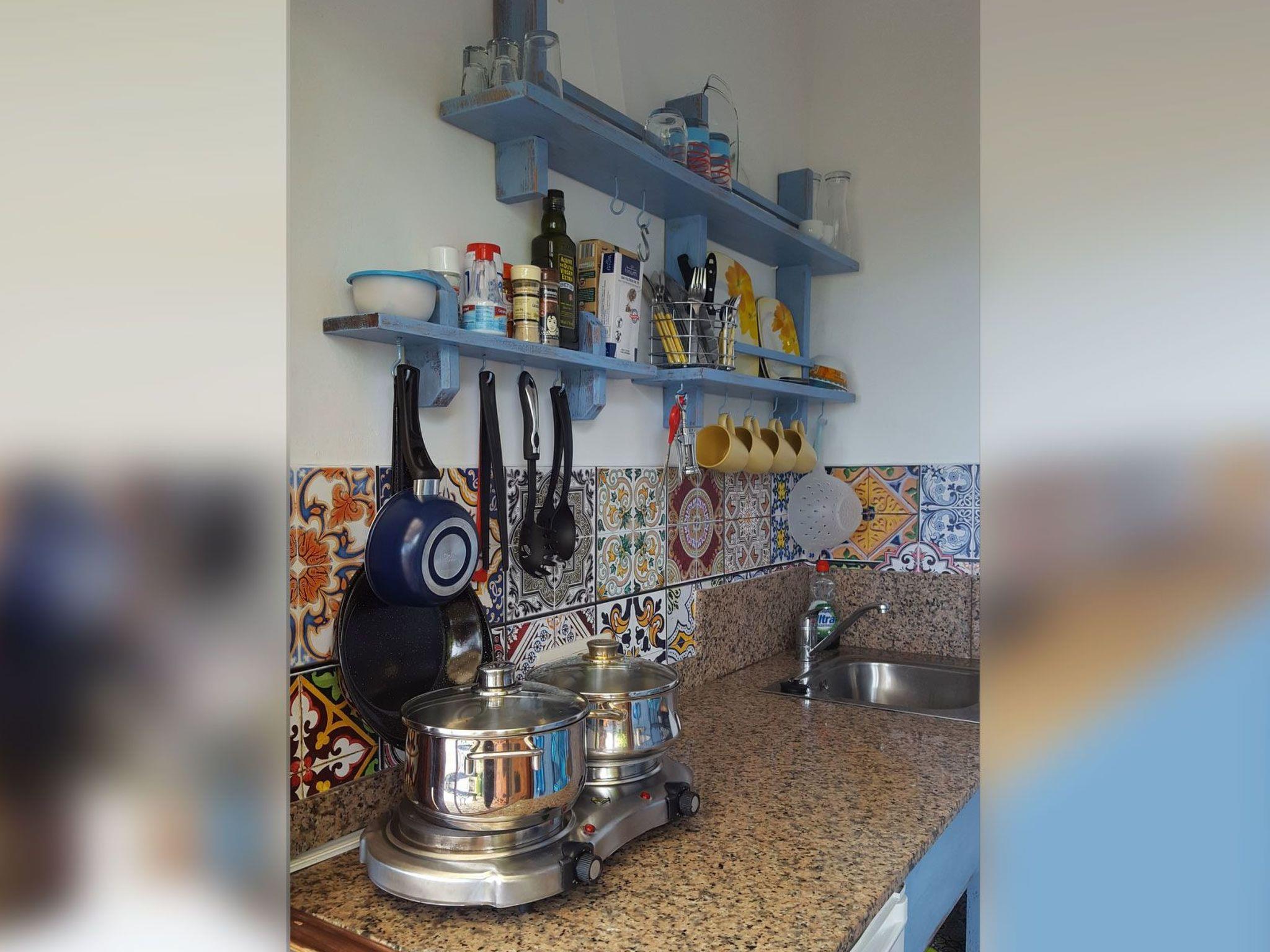 The interior of the holiday home is designed to be functional and cosy to make your stay as comfortable as possible. Equipped with a practical 2-plate cooker and a coffee machine, you can prepare your favourite dishes here and start the day with a freshly brewed cup of coffee. The electric kettle provides additional convenience. The bathroom with shower rounds off the offer and guarantees a refreshing break after an eventful day.