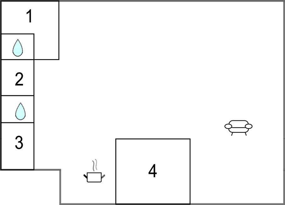 Køkkenet har v/k vand