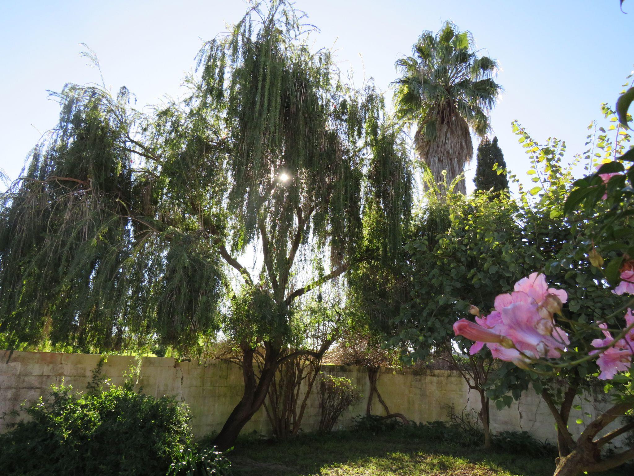 The holiday home has a veranda, a large terrace and a small garden. The entire area is enclosed and is for the exclusive use of the guests. There is a charcoal barbecue, a large parasol and garden furniture for 5 people. From the terrace, guests have a view to the south and to the east over the orange plantation to the mountains of the Sierra Crestellina. The terrace is on the side facing away from the road and is therefore very quiet. There are two private parking spaces in front of the house. The holiday home has its own private access.