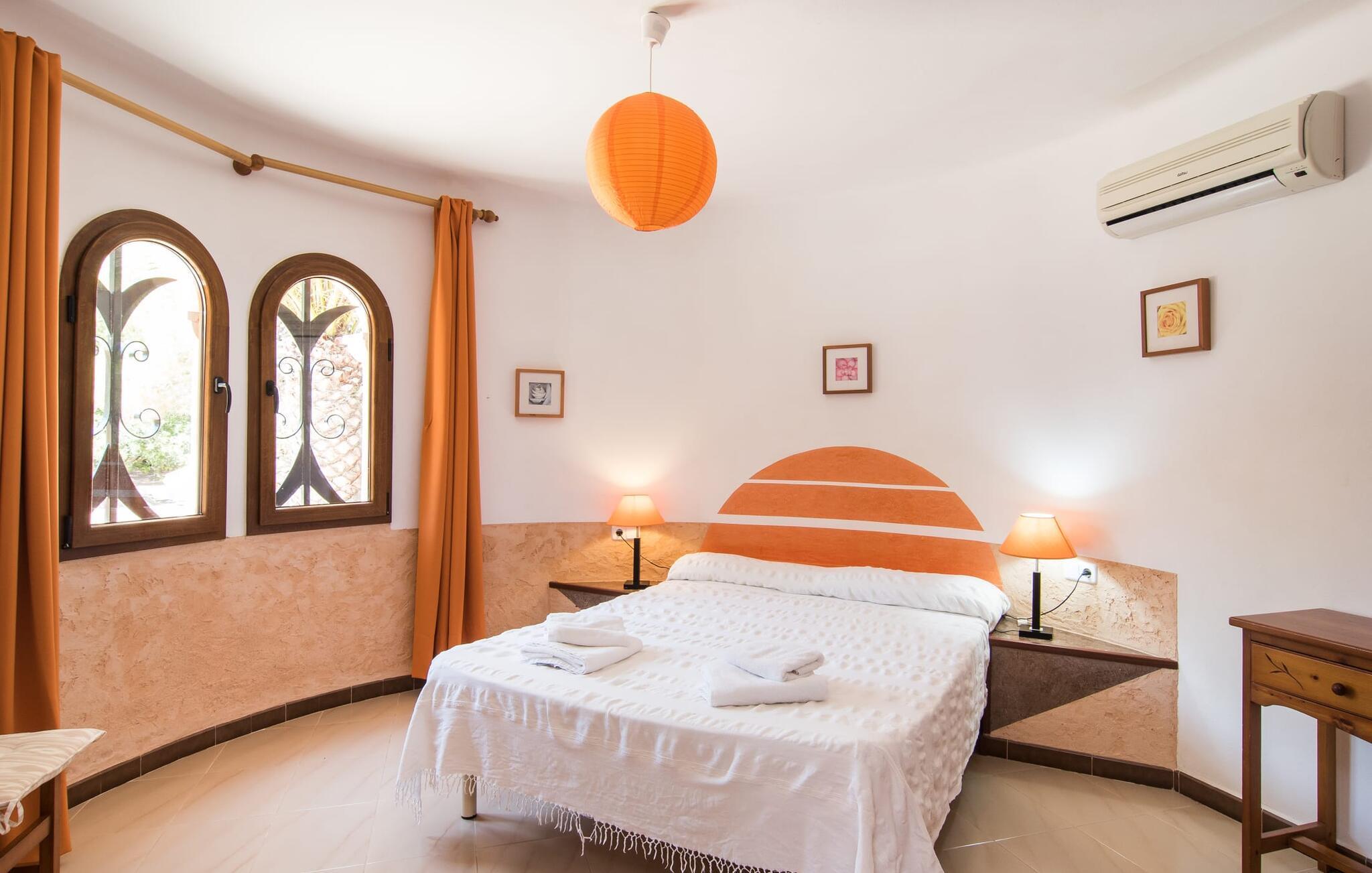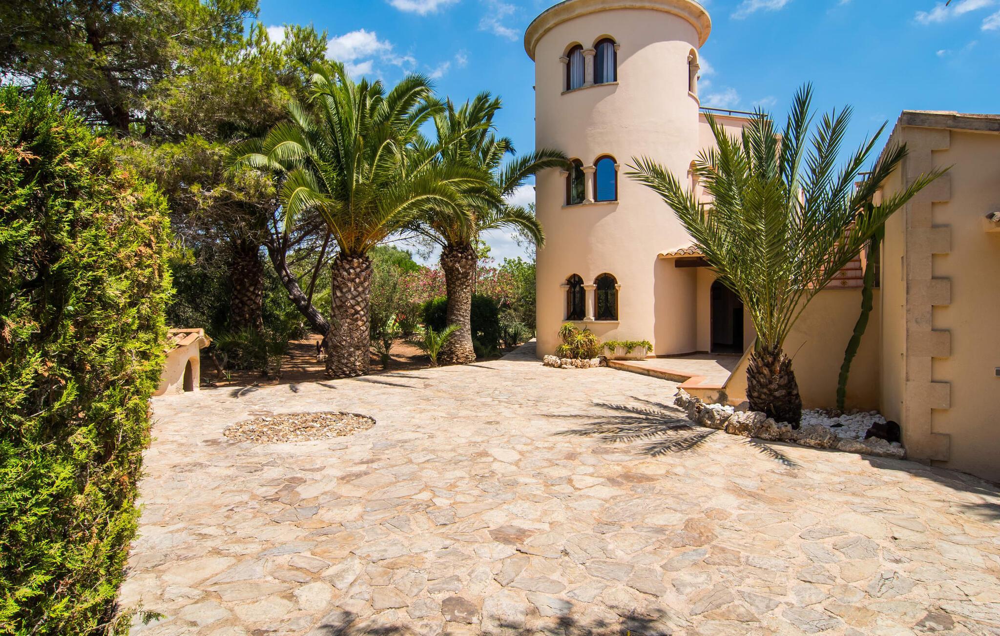 Mallorca er mere end bare en solrig ø i Middelhavet. Mallorca er en livsstil, som du hurtigt vil opdage i denne rustikke, charmerende stenvilla nær S'Horta. Den idylliske have byder dig velkommen med en lille palmeoase, der straks vil løfte dit humør. Poolen ligner en bølge og er omgivet af terracotta-fliser og sandsten - snup din yndlingsdrink og svæv bare gennem dagen. Haven er så smukt anlagt, at du hurtigt kan slappe af og genoplade din solenergi på en af poolterrasserne. Børn kan lege på gyngen eller spille en lille bordtenniskamp, som selvfølgelig også vil bringe minder frem for nogle voksne. Under den overdækkede terrasse kan du nyde frisk frugt eller lækker fisk, mens du tager en siesta og føle dig nærmest som en rigtig øboer. De søde træskodder gør deres bedste for at udstråle en naturlig spansk flair. Du vil føle dig hjemme, så snart du træder ind i villaen. Træbjælkerne i loftet og den rustikke indretningsstil vil vinde dit hjerte på ingen tid. Alt her er, som det skal være i en rigtig villa. Naturmaterialer af høj kvalitet i subtile naturlige toner kendetegner husets stærke karakter. I stueetagen, lige ved siden af spisestuen, er der køkken med langbord, som er et godt sted for lange samtaler. Nyder du aftenen foran den knitrende ild efter middagen, har du gjort alt rigtigt. Et af soveværelserne er placeret direkte i det lille tårn, der rejser sig over villaen. To badeværelser og to ekstra soveværelser er også i stueetagen. Takket være den optimale rumindretning har op til ti gæster plads nok til at slappe af, selv når huset er fyldt. På øverste etage, som også har en separat indgang, er der yderligere to soveværelser og et badeværelse. I umiddelbar nærhed af denne helt rolige villa, med parkering lige ved siden af huset, vil du opleve en vidunderlig, uberørt natur og det krystalklare hav, som kan nås til fods på ingen tid. Hvorfor ikke tage en afstikker til det ugentlige marked i Santanyí, ca. 15 km væk - også muligt på cykel. En lang historie giver denne by en følelse af magi og eventyr med sine gyldne sandstensbygninger. Hvis du ønsker at forbedre dit handicap, skal du blot besøge golfbanen, kun 7 km væk. Du kan opleve romantiske øjeblikke på stranden i Cala D'Or, på sandstranden omkranset af fyrretræer, mens du nyder den endeløse vidde og lyden af havet. I slutningen af din ferie vil du indse, at du har lært Mallorcas autentiske og originale sjæl at kende. Den typiske mallorcanske villa "Sanau D'Or" har valgt et smukt lille sted på øen Mallorca. Det ligger i sydøst - hvor masseturismen er langt væk, og hvor autentiske restauranter smelter sammen med indbydende barer. Cala D'Or-bugten ligger mindre end 1 km væk, hvilket gør den fyrretræsklædte gåtur til stranden til en ren sansefornøjelse. Bemærk venligst, at denne ejendom ikke accepterer ungdomsgrupper eller polterabender. En ungdomsgruppe på denne ejendom består af personer på 25 år eller derunder. Book ikke denne ejendom, hvis du er en ungdomsgruppe eller polterabend, da din reservation vil blive afvist, når den er booket, hvilket også kan være tilfældet ved ankomst til ejendommen eller under dit ophold, og du vil ikke modtage en refusion. Aircondition er inkluderet i denne ejendom mellem 8:00 og 8:00. I vintermånederne er varme inkluderet i prisen for 10 timer pr. Gebyret afregnes herefter kontant på stedet. Dette er et Fincallorca feriehus.