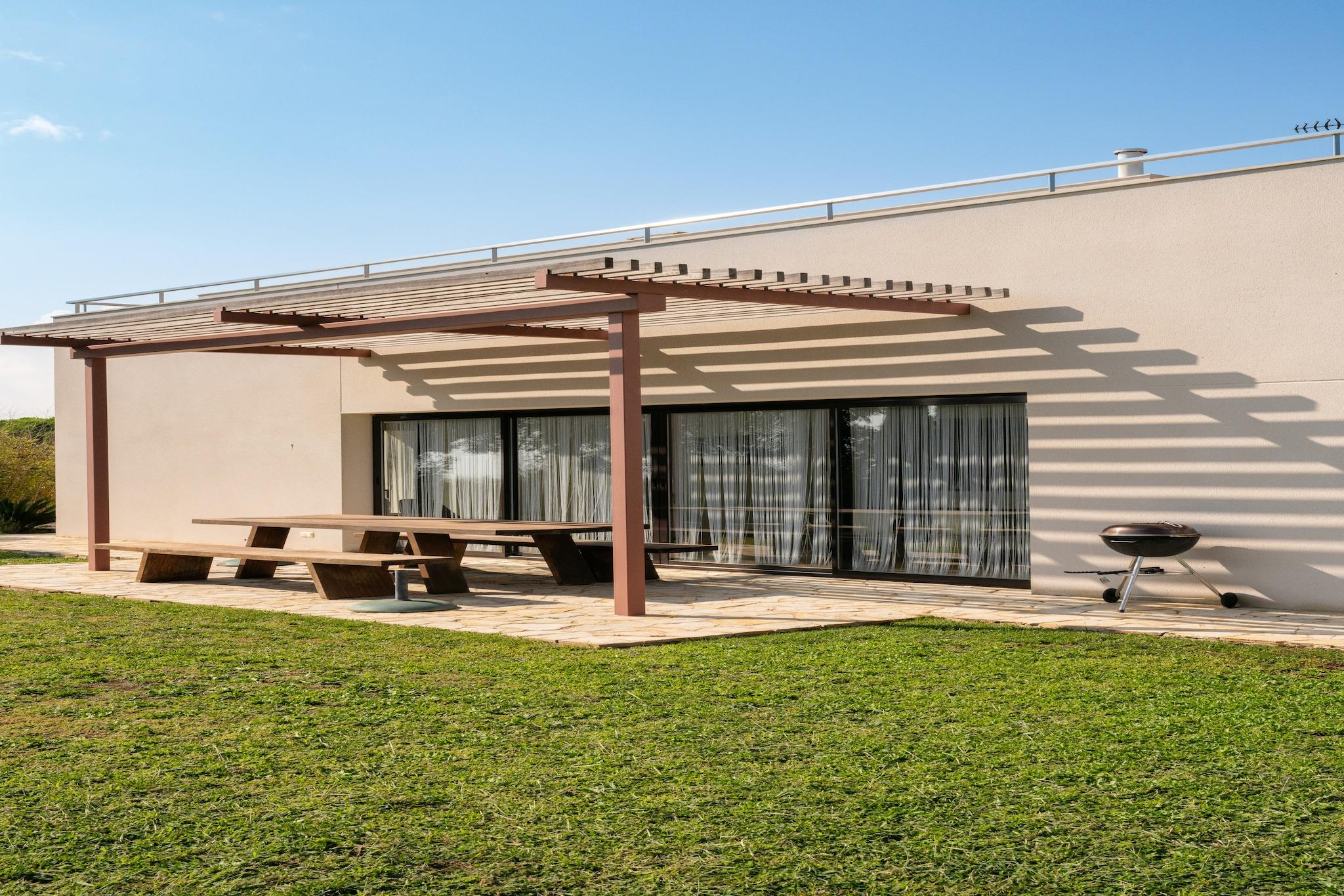 Stueetage: (Indgang , sofastue(Fjernsyn(parabol), DVD-afspiller, stereoanlæg), spisestue(spisebord), åbent køkken(komfur(Komfur med fire kogeplader, glaskeramisk), ovn, mikrobølgeovn, opvaskemaskine , køle-fryseskab, tørretumbler, vaskemaskine), havedøre) Mellemetage: (Soveværelse med badeværelse(dobbeltseng eller 2 enkeltsenge Senge(dynebetræk), bruser, håndvask, toilet), Soveværelse med badeværelse(dobbeltseng eller 2 enkeltsenge Senge, bruser, håndvask, toilet), Soveværelse med badeværelse(dobbeltseng eller 2 enkeltsenge Senge(dynebetræk), bruser, håndvask, toilet), Soveværelse med badeværelse(dobbeltseng eller 2 enkeltsenge Senge(dynebetræk), bruser, håndvask, toilet), Repos) garage, dobbeltsovesofa, dobbeltsovesofa, klimaanlæg, terrasse, have(privat), havemøbler, grill, parkering, Parasol, swimmingpool(privat, 14 x 3 m.)
