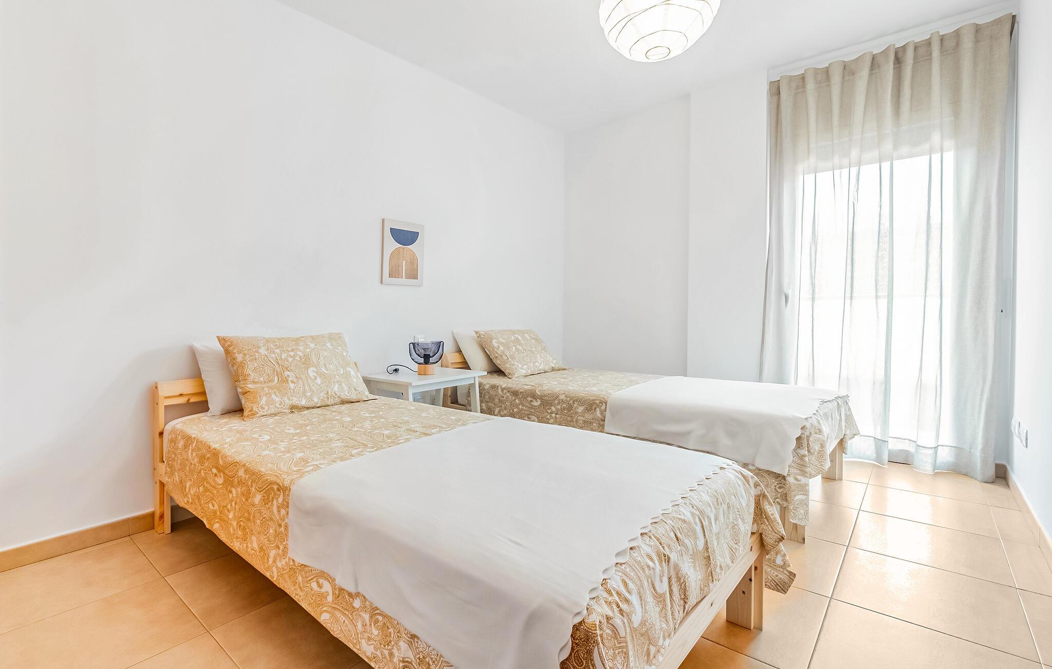 En ferie med sol, vand og masser af hygge er, hvad der venter jer i denne indbydende lejlighed, der ligger kun få skridt fra stranden ved Costa Dorado. Her er der lagt op til en vaskeægte badeferie, hvor I både kan slappe af og bade ved stranden og i den lækre fælles pool, og hvor I kan krydre jeres badesjov med spændende udflugter i området. Lejligheden er nydeligt indrettet og udstyret med al den komfort, I behøver, for at kunne slappe af efter en dag på farten og bare flade ud i sofaen, mens I lægger planer for de kommende dage.