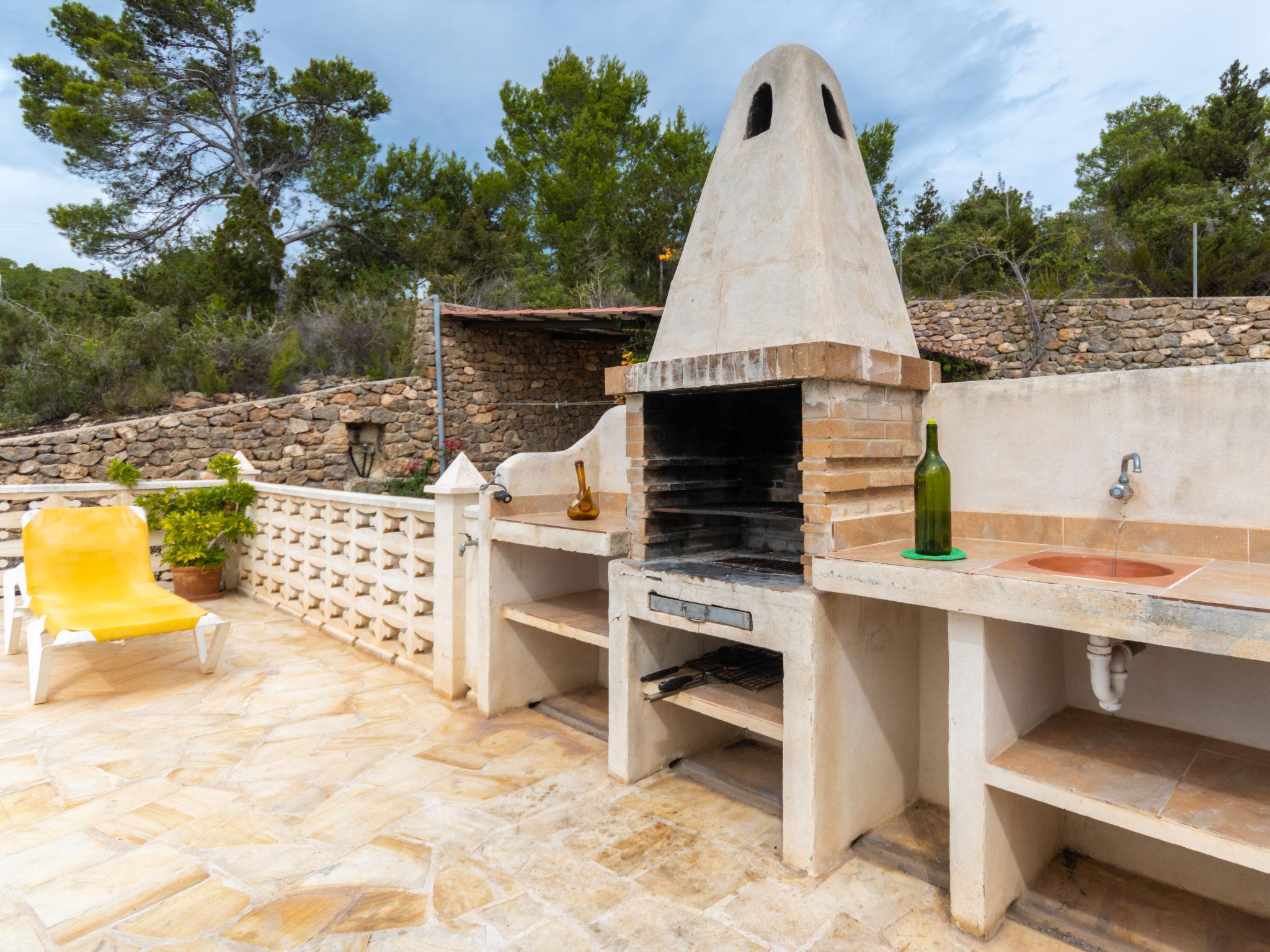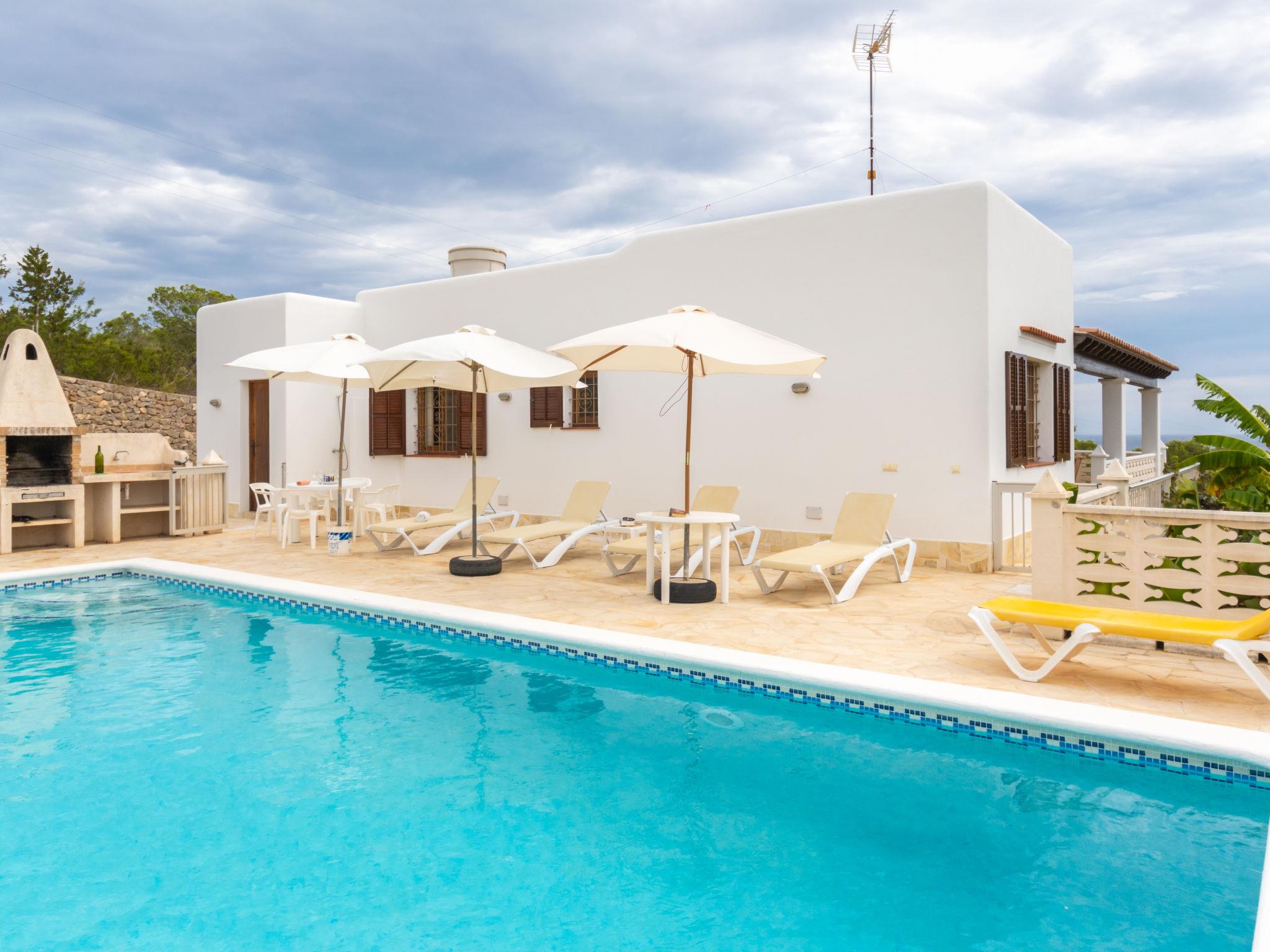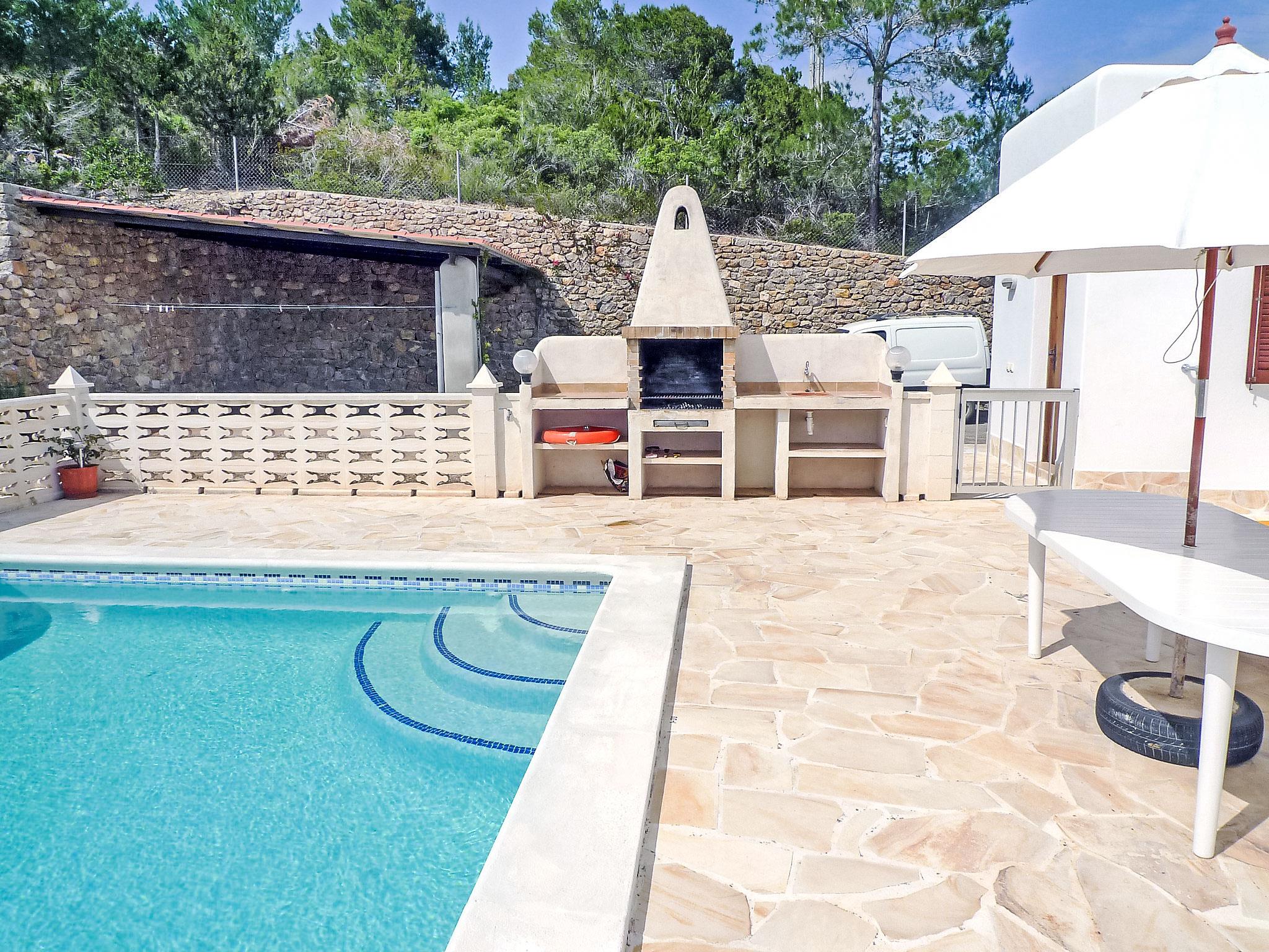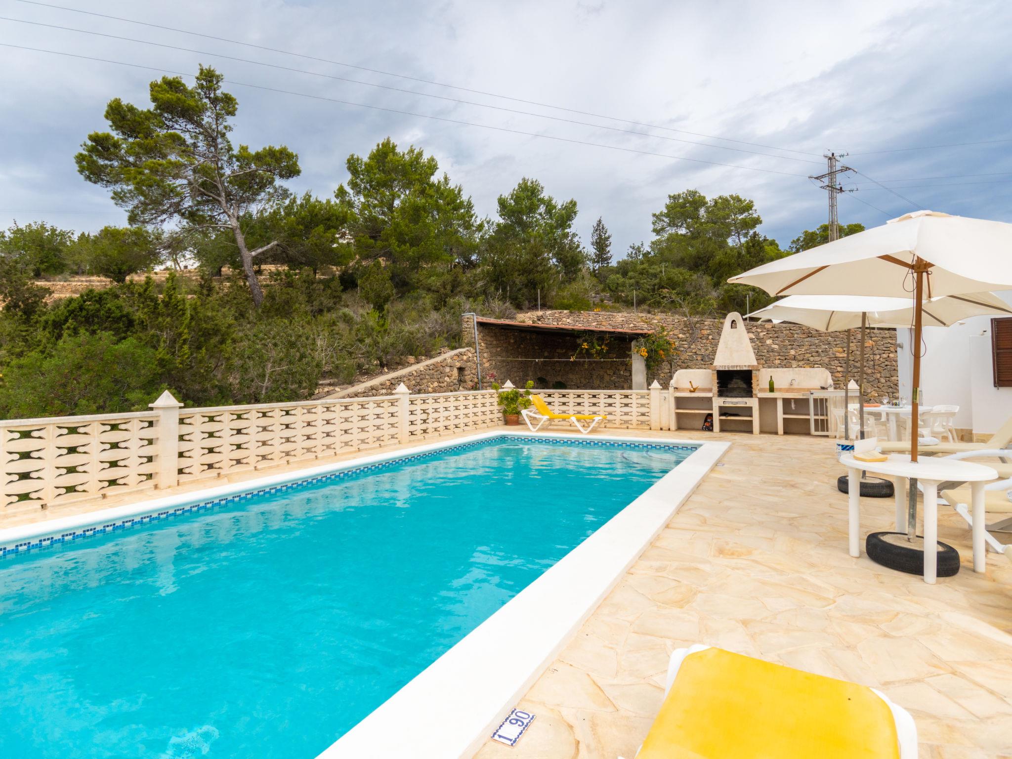Access to the house over 3 steps. Two roofed terraces. Remote control entrance to the garden. Cosy farm estate "Can Pep Jaume", built in 2004. Outside the resort, 3 km from the centre of St. Carles, in a quiet, sunny, elevated position, 600 m from the sea, located by a road. Private: property 6'000 m2 (fenced), swimming pool angular (8 x 3 m, depth 190 cm, seasonal availability: 01.May. - 30.Oct.). Shower/WC in the pool area, pergola (24 m2), terrace (90 m2), garden furniture, barbecue. In the house: internet access, WiFi, air conditioning, washing machine. Steep motor access. Parking (for 4 cars) at the house on the premises. Grocery 600 m, restaurant 400 m, bus stop 300 m, sandy beach 900 m, rocky beach 500 m. Golf course (18 hole) 15 km, tennis 500 m. Nearby attractions: Cala Mastella 900 m, Cala Llenya 1 km, Cala Nova 2 km. Please note: car recommended.