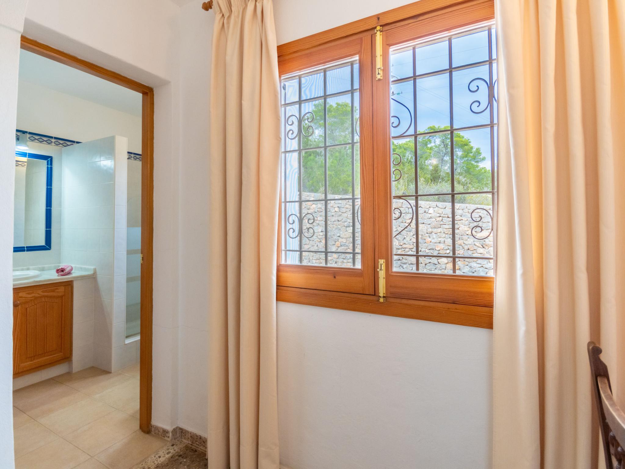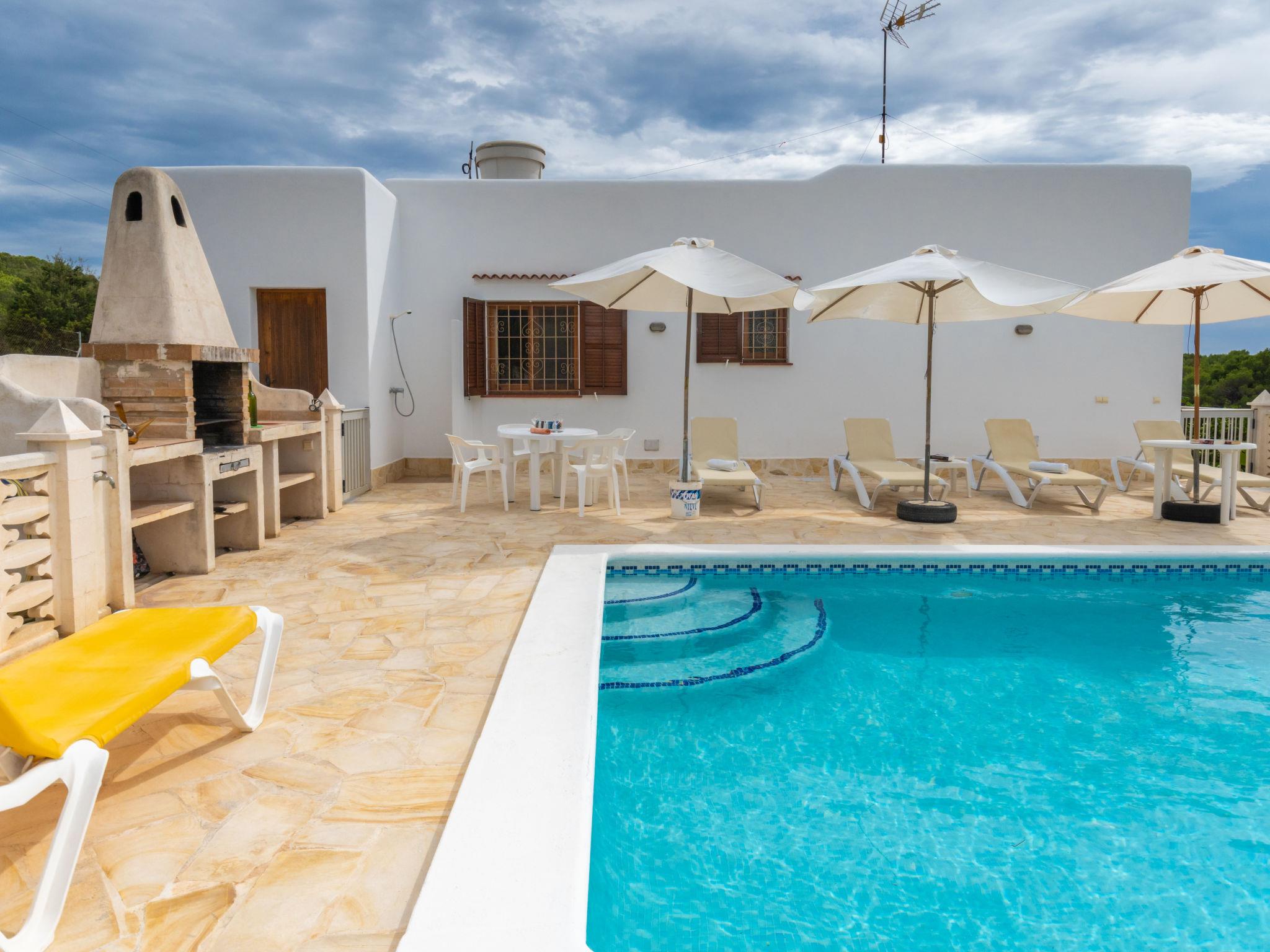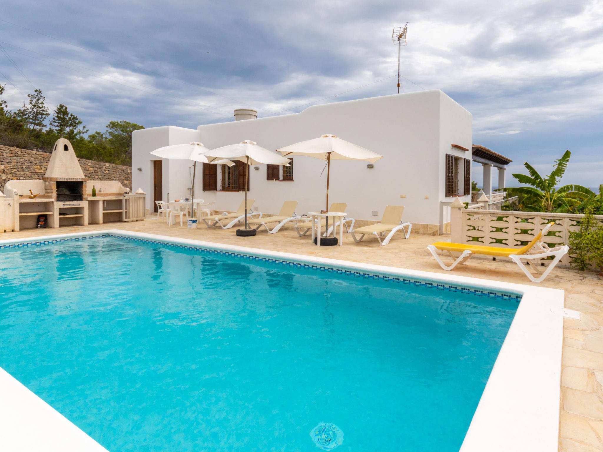 Access to the house over 3 steps. Two roofed terraces. Remote control entrance to the garden. Cosy farm estate "Can Pep Jaume", built in 2004. Outside the resort, 3 km from the centre of St. Carles, in a quiet, sunny, elevated position, 600 m from the sea, located by a road. Private: property 6'000 m2 (fenced), swimming pool angular (8 x 3 m, depth 190 cm, seasonal availability: 01.May. - 30.Oct.). Shower/WC in the pool area, pergola (24 m2), terrace (90 m2), garden furniture, barbecue. In the house: internet access, WiFi, air conditioning, washing machine. Steep motor access. Parking (for 4 cars) at the house on the premises. Grocery 600 m, restaurant 400 m, bus stop 300 m, sandy beach 900 m, rocky beach 500 m. Golf course (18 hole) 15 km, tennis 500 m. Nearby attractions: Cala Mastella 900 m, Cala Llenya 1 km, Cala Nova 2 km. Please note: car recommended.