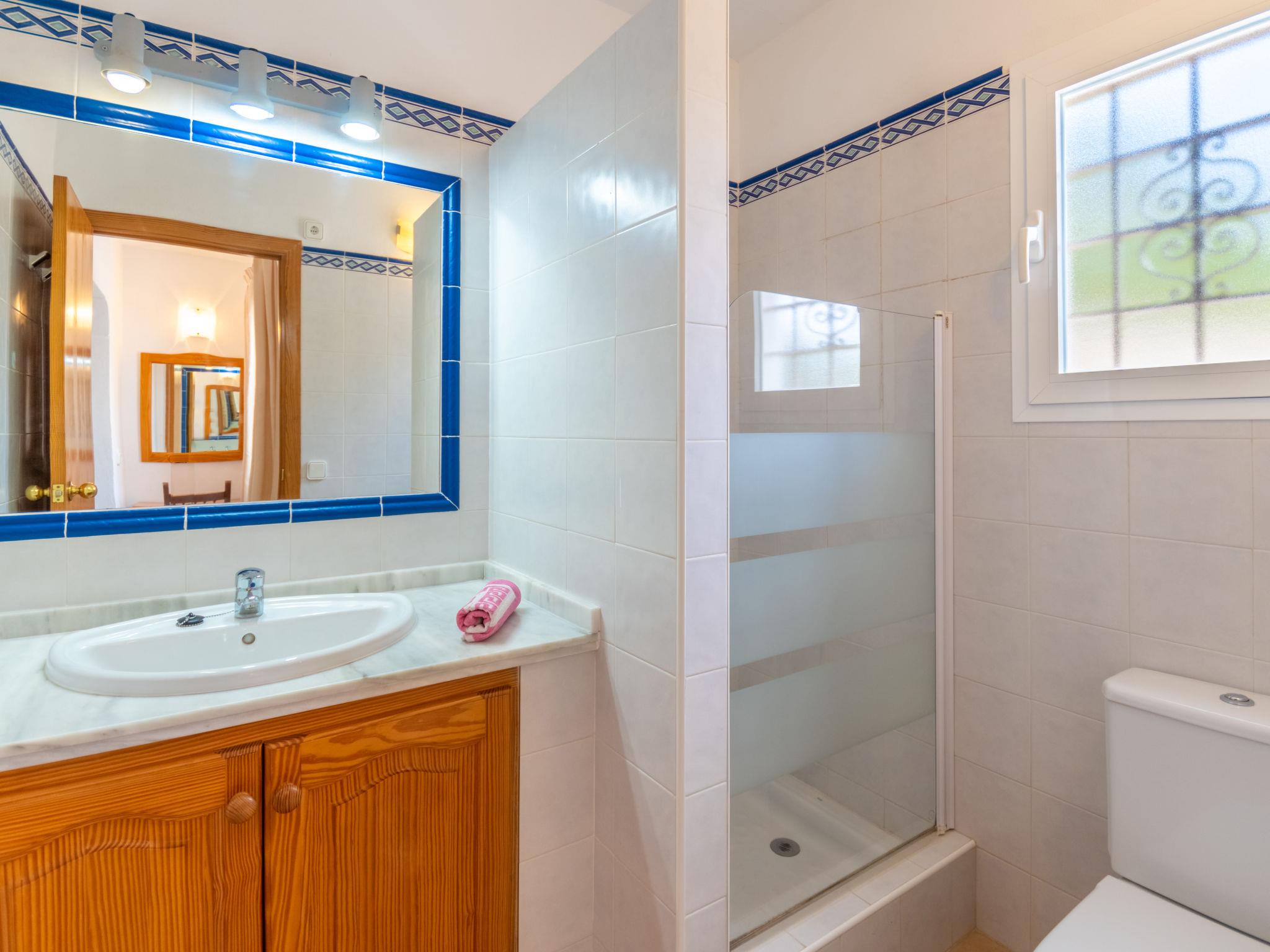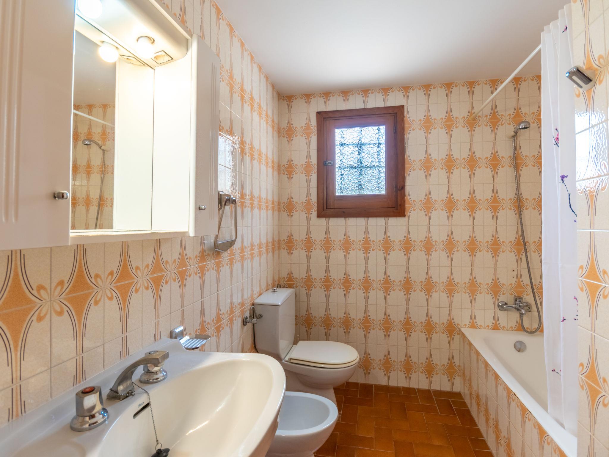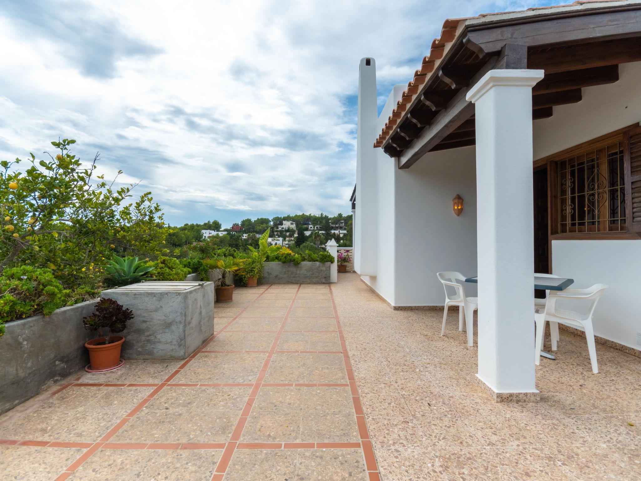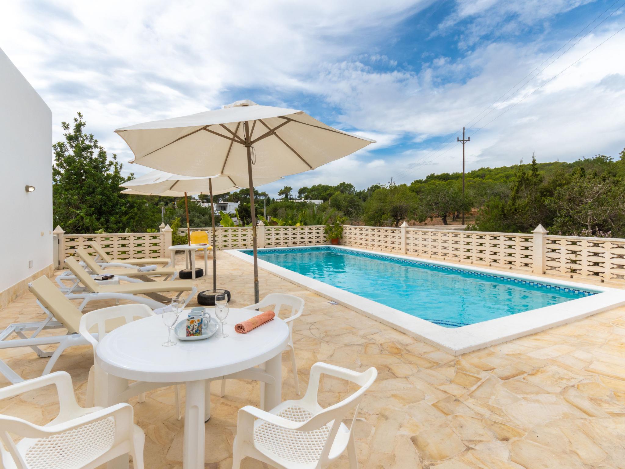Access to the house over 3 steps. Two roofed terraces. Remote control entrance to the garden. Cosy farm estate "Can Pep Jaume", built in 2004. Outside the resort, 3 km from the centre of St. Carles, in a quiet, sunny, elevated position, 600 m from the sea, located by a road. Private: property 6'000 m2 (fenced), swimming pool angular (8 x 3 m, depth 190 cm, seasonal availability: 01.May. - 30.Oct.). Shower/WC in the pool area, pergola (24 m2), terrace (90 m2), garden furniture, barbecue. In the house: internet access, WiFi, air conditioning, washing machine. Steep motor access. Parking (for 4 cars) at the house on the premises. Grocery 600 m, restaurant 400 m, bus stop 300 m, sandy beach 900 m, rocky beach 500 m. Golf course (18 hole) 15 km, tennis 500 m. Nearby attractions: Cala Mastella 900 m, Cala Llenya 1 km, Cala Nova 2 km. Please note: car recommended.