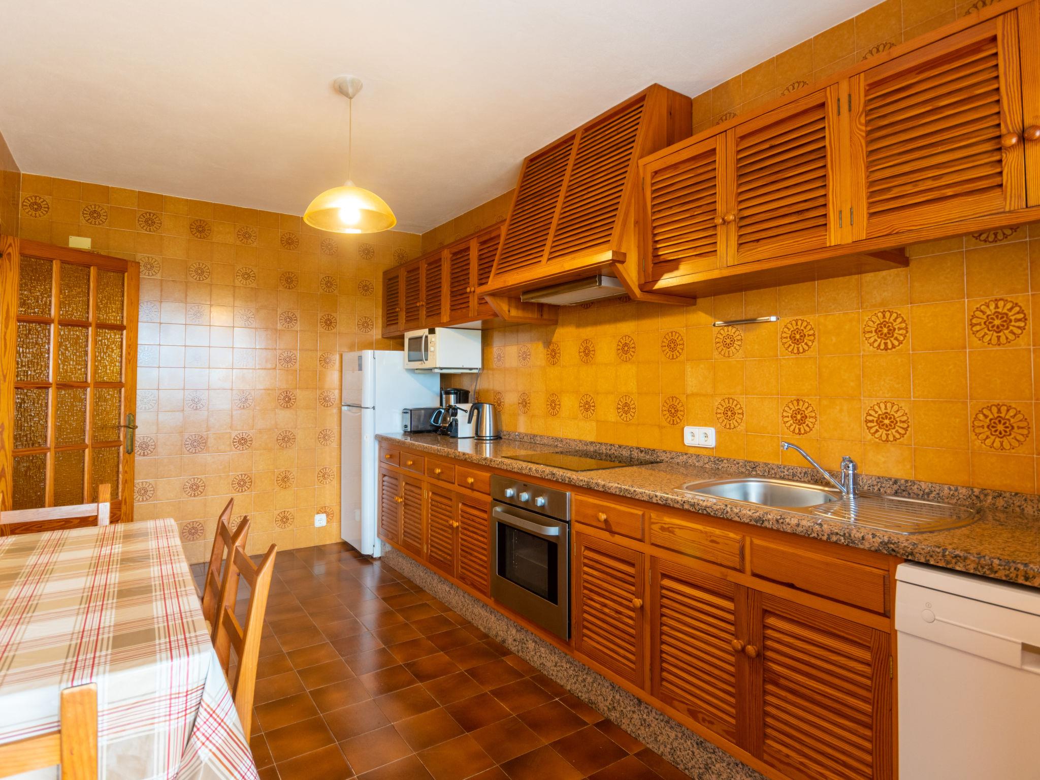 4-room villa 170 m2. Comfortable furnishings: large living/dining room with open-hearth fireplace, dining table, satellite TV and digital TV. Exit to the patio. 1 double bedroom with 1 double bed (2 x 90 cm, length 190 cm), shower/bidet/WC, air conditioning and forced-air heating. 1 room with 2 beds (90 cm, length 190 cm), shower/WC, air conditioning and forced-air heating. 1 room with 1 french bed (200 cm, length 200 cm), shower/WC and air conditioning. Kitchen (oven, dishwasher, toaster, kettle, microwave, freezer, electric coffee machine) with dining table, hatch. Exit to the terrace. Shower/bidet/WC. Terrace 90 m2, porch 24 m2. Terrace furniture, barbecue, deck chairs (6). Distant view of the ocean. Facilities: washing machine, iron. Internet (WiFi, free). Parking (fenced 4 cars). ETV/1363/E // Reg. Nr.: ESFCTU000007036000257512000000000000000000ETV-1363-E3