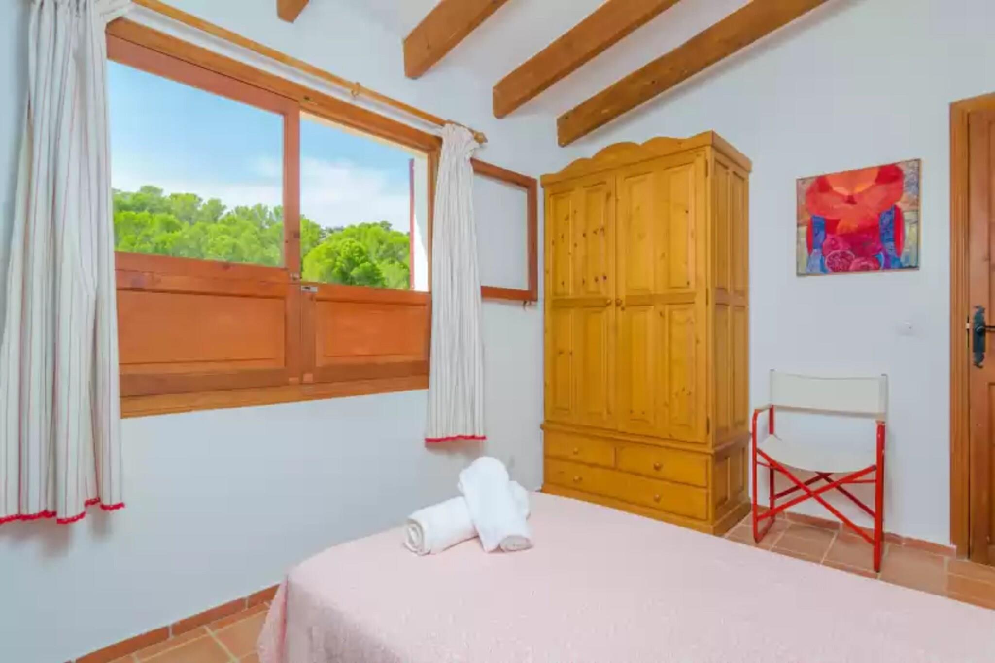 In een ongelofelijke natuurlijke omgeving kunt u een verfrissende duik nemen in het prachtige chloorbad van 12 x 6 meter met een diepte tussen de 1,50 en 1,80 meter. Daaromheen het fantastische terras om te zonnebaden op een van de ligstoelen terwijl u geniet van het prachtige uitzicht op de velden en bossen. Naast het zwembad vindt u diverse gemeubileerde ruimtes waar u kunt genieten van het mooie weer terwijl u 's ochtends geniet van een uitgebreid ontbijt of een drankje drinkt bij zonsondergang. Naast het huis kunt u buiten lunchen of dineren onder het rieten dak omgeven door prachtige vegetatie. Het huis heeft prachtige tuinen waar u buiten kunt genieten van het prachtige Mallorcaanse weer. Het terrein is omheind en er zijn buren in de buurt. Het huis heeft 190 m2 verdeeld over twee verdiepingen. Het heeft een unieke stijl waarbij traditionele elementen zoals houten balken of stenen muren behouden zijn gebleven, gecombineerd met moderne elementen zodat u van alle gemakken bent voorzien tijdens uw verblijf. Bij binnenkomst vindt u een ruime woonkamer - eetkamer met een bank en fauteuils waar u heerlijk kunt uitrusten terwijl u televisie kijkt naast de rustieke eettafel. Het heeft ook een open haard om warm te blijven op koude dagen. De keuken is onafhankelijk en goed uitgerust om tijdens de vakantie te koken. Het heeft een gasfornuis, magnetron, elektrische oven en een tafel met stoelen om onder andere samen te koken. Ook vindt u er een wasmachine, strijkijzer en strijkplank. Deze verdieping wordt compleet gemaakt met de eerste slaapkamer voorzien van een tweepersoonsbed en kledingkast. Boven nog twee slaapkamers, één met twee eenpersoonsbedden en kledingkast en de tweede met tweepersoonsbed en kledingkast en en-suite badkamer met douche. Nog een badkamer met ligbad maakt deze verdieping compleet. De laatste slaapkamer bevindt zich in een bijgebouw buiten het huis. Het heeft een tweepersoonsbed en een eenpersoonsbed, evenals een kledingkast en een open haard voor de koudste nachten. Het heeft ook een en-suite badkamer met douche. De accommodatie beschikt over 4 staande ventilatoren, waardoor u hem overal in huis kunt gebruiken zoals u wilt. Als u met een baby reist, kunnen wij een wieg en een kinderstoel voor u klaarmaken. Dit huis ligt op slechts 1,5 km van de stad Sant Elm, een zeer rustig toeristisch gebied. In de stad vindt u de meest elementaire voorzieningen. Voor al het andere kunt u terecht in Andratx of Puerto de Andratx waar u heerlijk kunt wandelen en genieten van de gastronomie van de omgeving. Het strand van Sant Elm, op 1,5 km afstand, is een klein zandstrand waar u kunt genieten van een gezellig dagje strand. Maar ook vlakbij vind je het kleine Cala Conills, gemaakt van rotsen, een prachtig hoekje waar je heerlijk kunt ontspannen aan zee. Ook een must-visit tijdens de excursie naar het eiland Sa Dragonera. Omdat dit een bosgebied is, is het aansteken van vuur verboden. Voor eventuele extra kosten kunt u contact opnemen met de adverteerder. Wij accepteren geen huisdieren. Het vieren van evenementen is niet toegestaan. Er is buiten parkeergelegenheid voor 3 auto's. Afstanden Strand: 1,5 km - Sant Elm Luchthaven: 45 km - Son San Joan Golfbaan: 33 km - Arabella Golf Stad: 1,5 km - Sant Elm Treinstation: 35 km - Palma Bushalte: 2 km - Sant Elm Veerboot: 34 km - Haven van Palma Ziekenhuis: 25 km - Juaneda Calvia Toeristenvergunning: ETV/8151 Op de Balearen geldt een toeristenbelasting, Ecotasa genaamd, die door de gast moet worden betaald. Het bedrag varieert tussen EURO 0,55 / per nacht per persoon in het laagseizoen en EURO 2,2 / per nacht per persoon in het hoogseizoen. Vanaf de negende dag wordt het met de helft verminderd. Personen onder de 16 jaar uitgesloten.