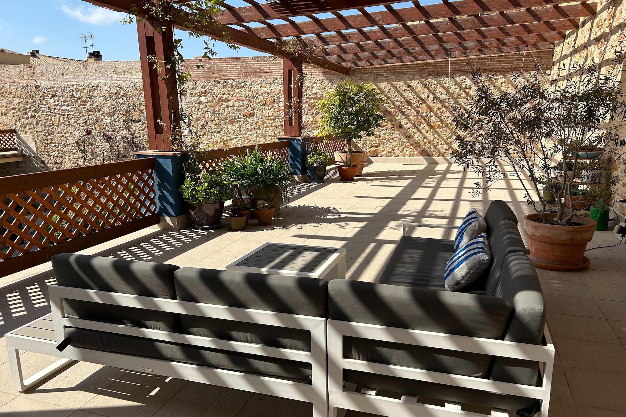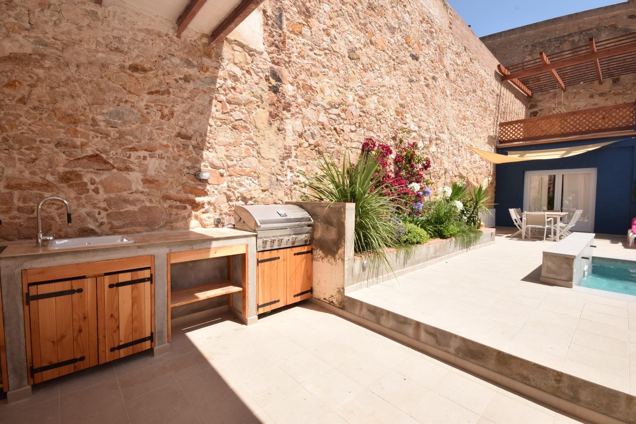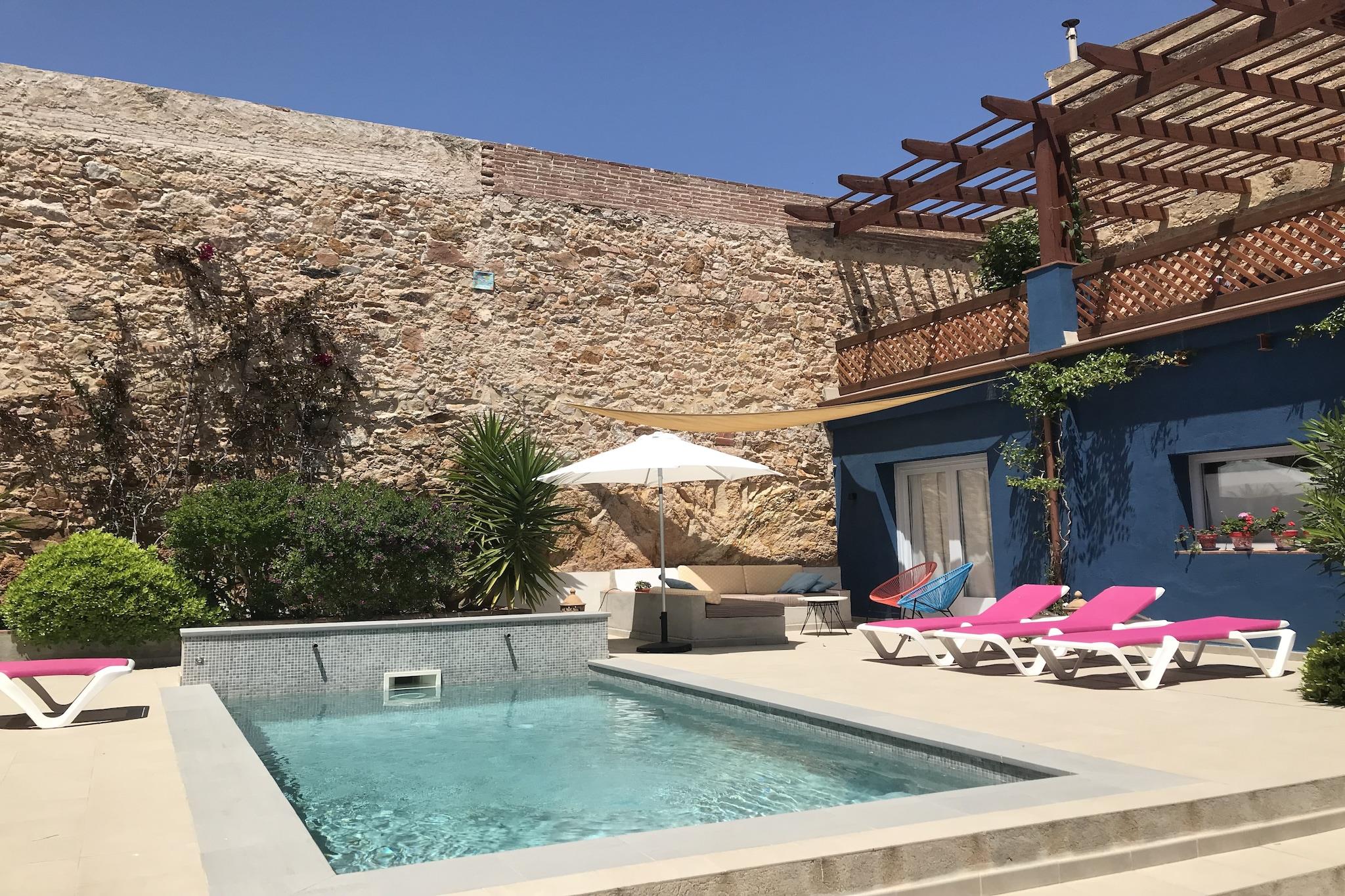 Dette smukke, autentiske feriehus i Sant Feliu de Guixols har en stor terrasse, en swimmingpool, en dejlig solterrasse på første sal og en garage. Dette hus var engang en korkfabrik og danseskole. Det er ideelt til en ferie med familie eller venner. Det ligger tæt på stranden og også i gåafstand fra alle faciliteter i det hyggelige centrum med masser af terrasser, restauranter og butikker. Centrum ligger kun 500 meter fra boligen. I bil kan du tage på mange ture til strande, byer og smukke naturområder i regionen. Det omkringliggende område byder også på smukke cykel- og vandreruter. Tilbered lækre måltider i det åbne køkken med spisebord. Det veludstyrede køkken har komfur, brødrister, kaffemaskine, mikroovn/kombiovn, opvaskemaskine og køle-/fryseskab. I bryggerset er der vaskemaskine, babybadekar, barneseng og høj stol. Soveværelserne er komfortable og perfekte til en god nats søvn. Soveværelserne ovenpå er også udstyret med aircondition, som du kan bruge mod betaling, hvis du ønsker det. Huset er udstyret med varme til vinteren, og terrassen er et dejligt sted at sidde, ligge og slappe af.