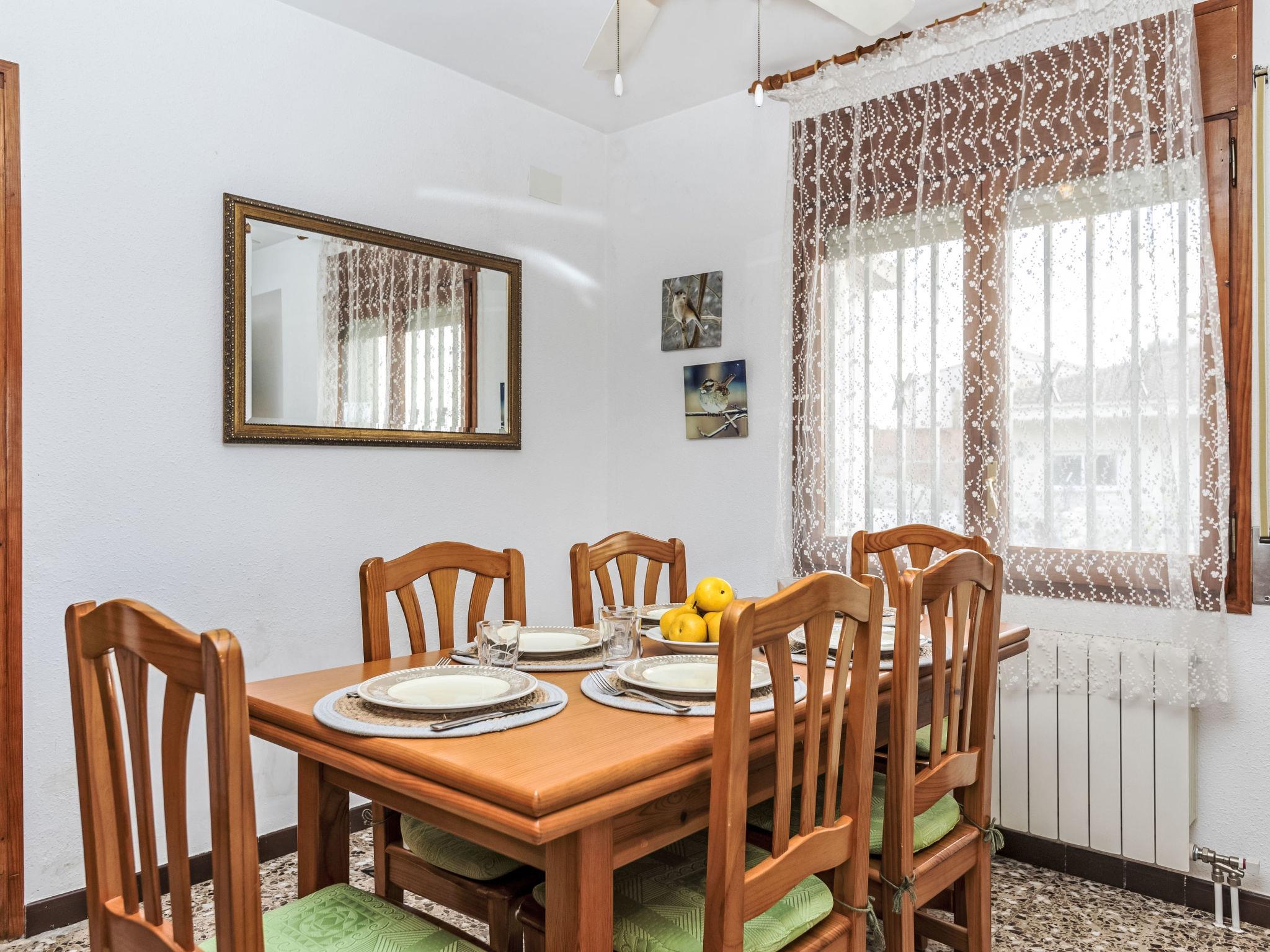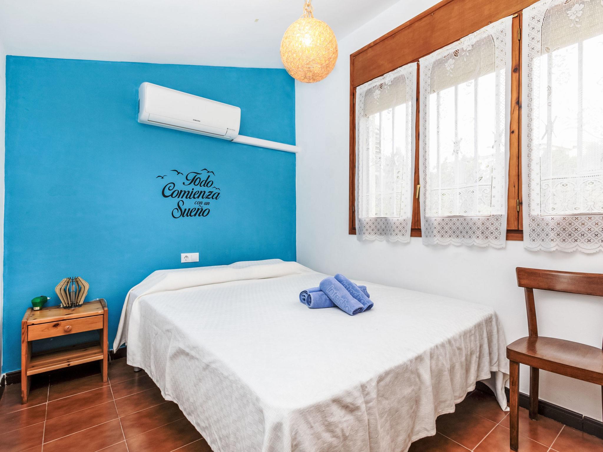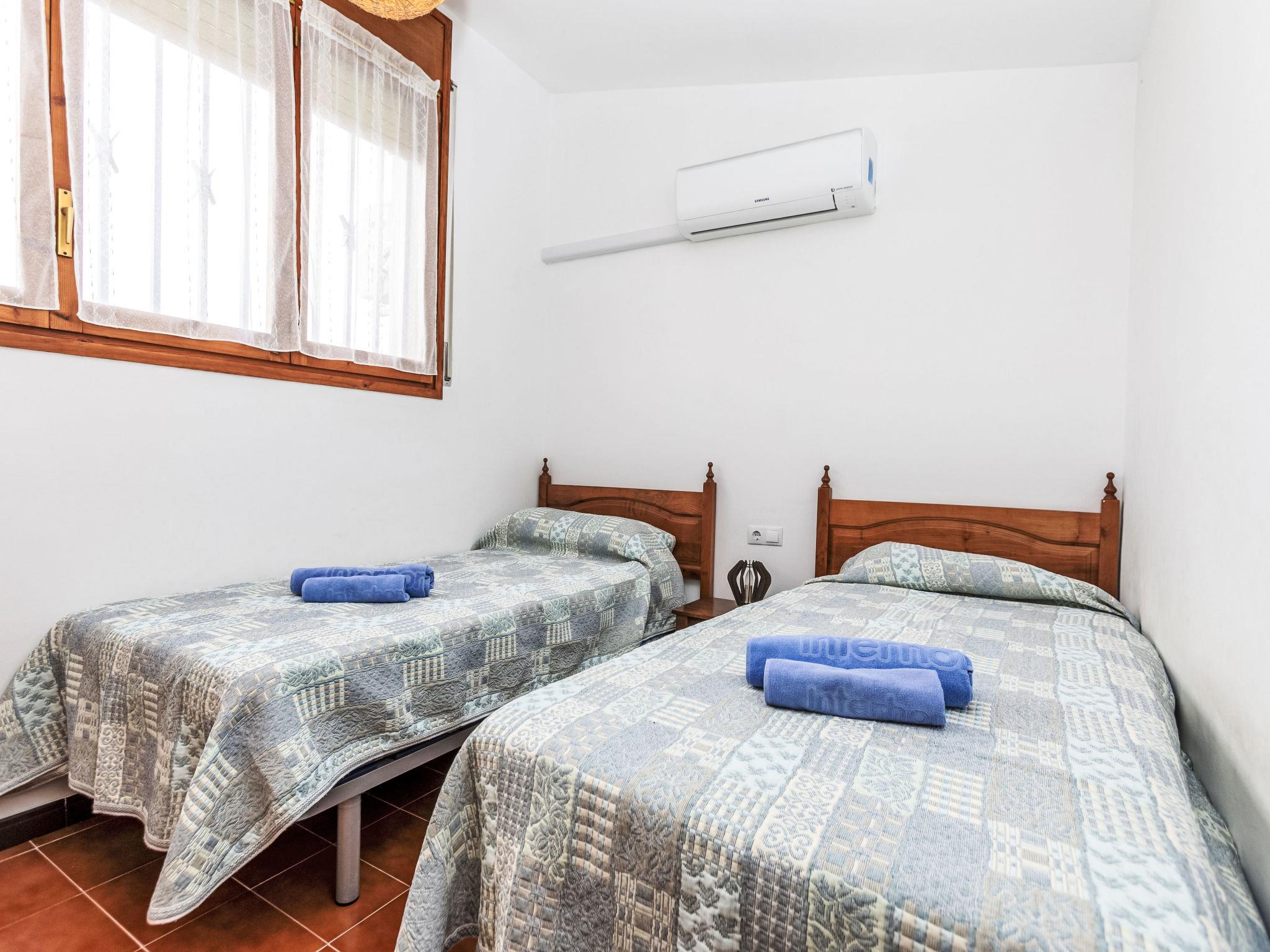 "Mercedes", 7-room house 115 m2 on 2 levels, on the upper ground floor. Object suitable for 6 adults + 3 children. Simple and practical furnishings: living/dining room with digital TV and fan. Exit to the balcony. 1 room with 1 french bed (1 x 180 cm, length 190 cm). 1 room with 2 beds (90 cm, length 190 cm). 1 room with 1 bed (90 cm, length 190 cm). Kitchen (4 ceramic glass hob hotplates, toaster, kettle, microwave, electric coffee machine). Exit to the terrace. Shower/WC. No heating option. Upper floor: 1 room with 1 french bed (1 x 160 cm, length 190 cm), air conditioning. Lounge with TV and air conditioning. 1 room with 2 beds (90 cm, length 190 cm), air conditioning. Bath/WC. Patio. Terrace furniture, barbecue, deck chairs (2). Distant view of the sea. Facilities: washing machine, iron, hair dryer. Internet (WiFi, free). Please note: non-smoking house. Maximum 1 pet/ dog allowed. TV only ES. HUTT-078035 // Reg. Nr.: ESFCTU00004302800014614100000000000000000HUTT 0780351