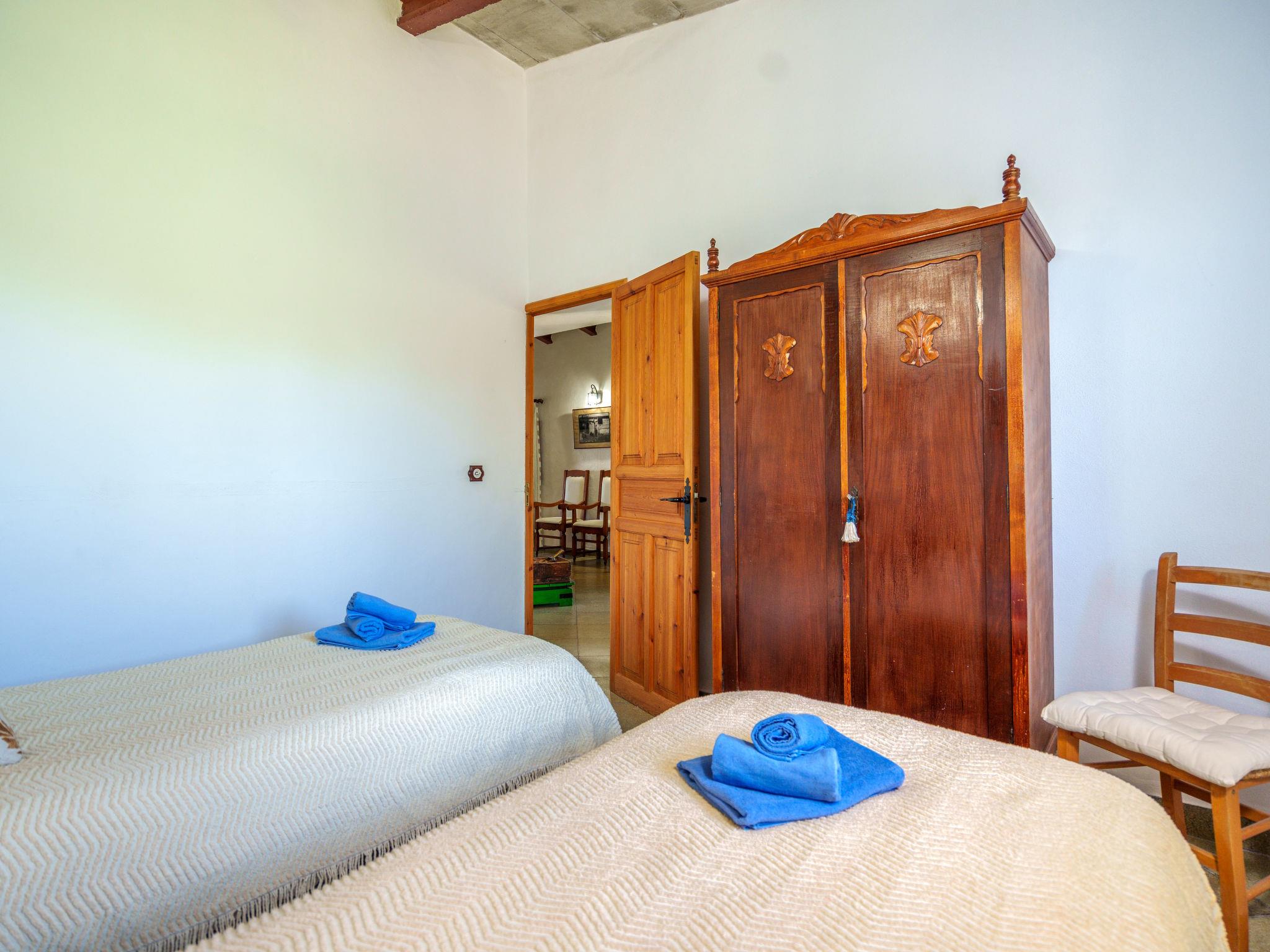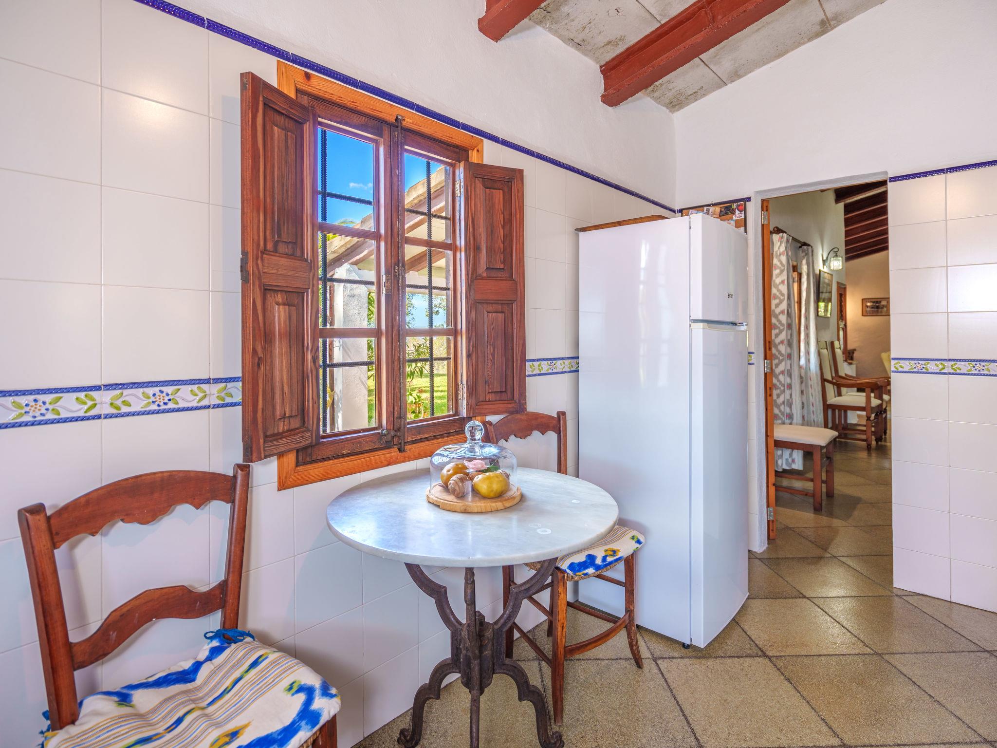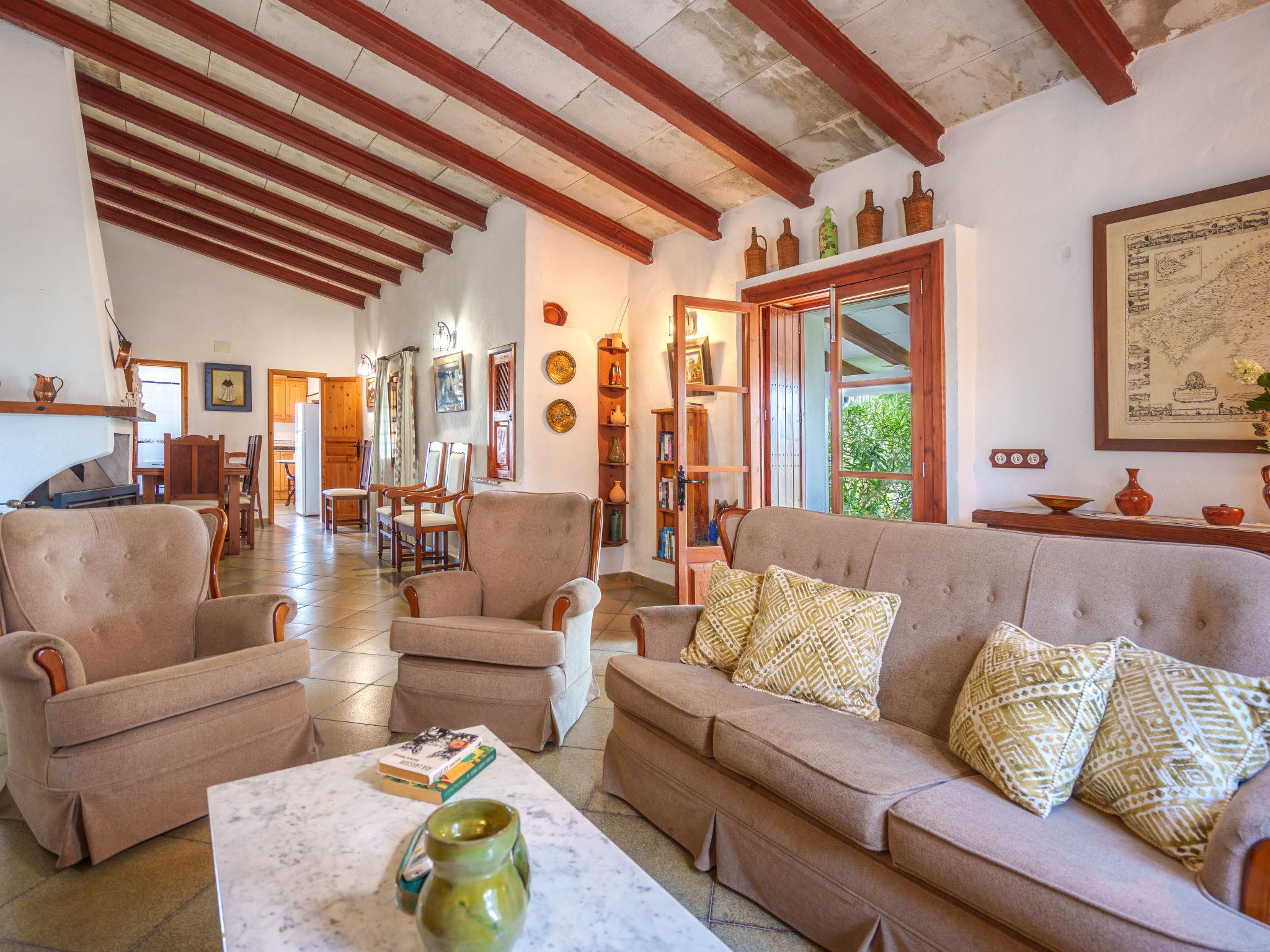 Sant Joan: Very beautiful, rustic farm estate "Sant Joan", surrounded by trees. Outside the resort, in a quiet, elevated position, 22 km from the sea. Private: garden with lawn and wildlife garden, swimming pool angular (10 x 5 m, seasonal availability: 01.Jan. - 31.Dec.). Patio, arbour, pergola, garden furniture, barbecue. In the house: internet access, WiFi, storage room for bicycles. 30 m long steep motor access to 40 m from the house. Parking at the house on the premises. Shop 1.8 km, grocery 1.8 km, supermarket 1.8 km, restaurant 1.8 km, bar 1.8 km, bakery 1.8 km, pub garden 1.8 km, 20 minute walk to the centre, bus stop 2 km, sandy beach "Can Picafort, Es trenc" 22 km, rocky beach "Can Picafort" 22 km. Sports harbour 22 km, marina 22 km, golf course (18 hole) 20 km, tennis 3 km, sports centre 3 km. Please note: car recommended. Suitable for families, suitable for seniors. Object suitable for 4 adults groups of teenagers on request only. Loading and unloading of baggage is possible at the holiday house. Airfield 37 km from the property. This house works with solar power.