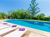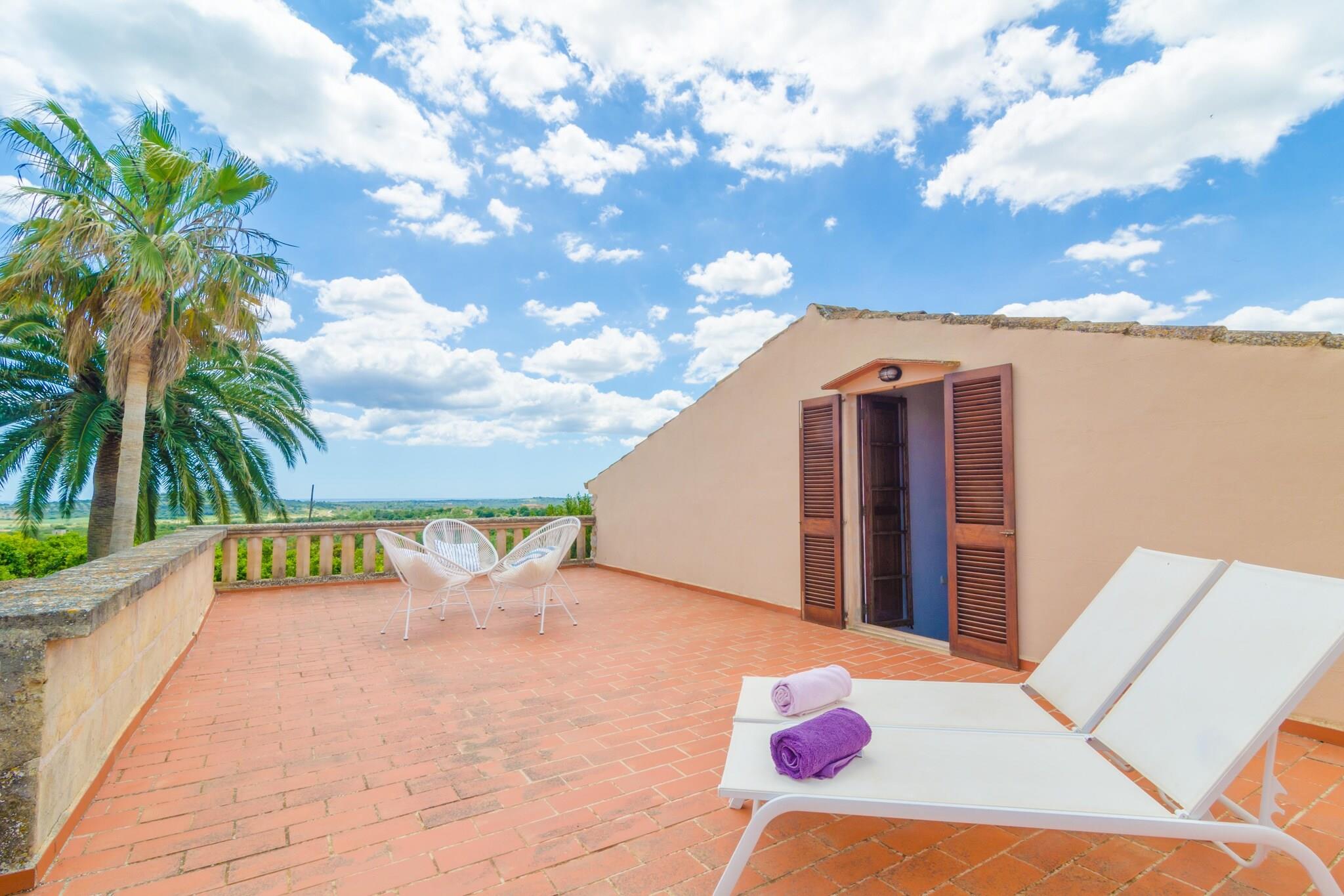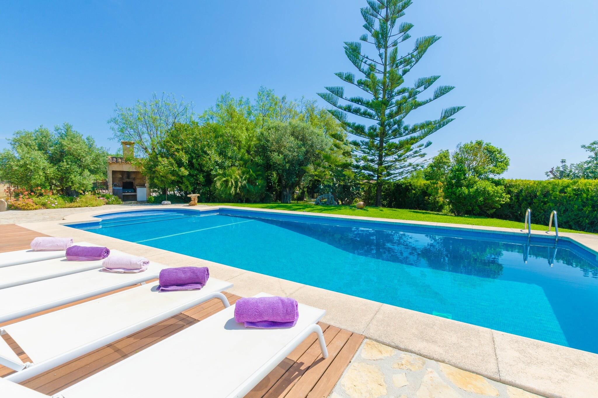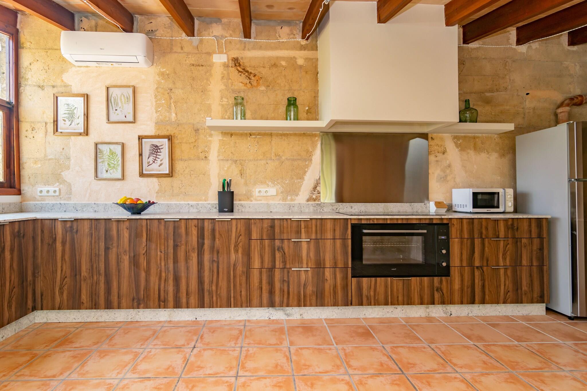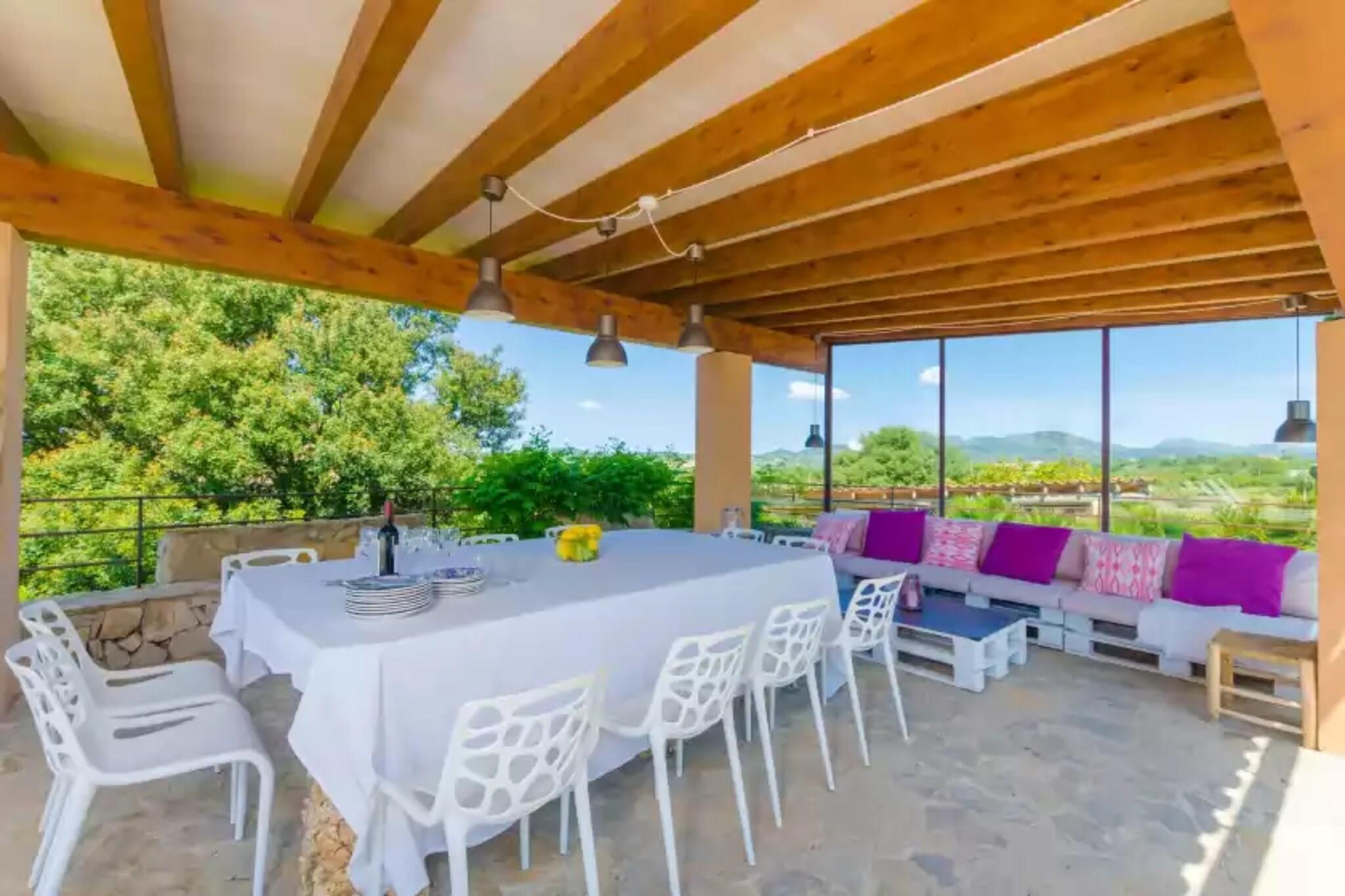 Beliggende på en ekspansiv 14.000 m² ejendom omgivet af natur, er denne charmerende stenbyggede villa et sandt tilflugtssted for fred og privatliv. Højdepunktet er den fantastiske 11 x 5 m private saltvandspool (dybde: 1,1–1,7 m), perfekt til at køle af, mens du nyder panoramaudsigten over bjergene og landskabet. Poolområdet er indrammet af græsplæne og træterrasser og byder på 10 liggestole og en skyggefuld veranda med et grillområde og en stilfuld chill-out sofa lavet af genvundne paller. Indenfor er huset på 300 m² fordelt på to etager, der kombinerer rustik mallorcansk charme med moderne bekvemmeligheder. Den airconditionerede stue er ideel til afslapning med satellit-tv, mens det traditionelle køkken med gaskomfur og stor spiseplads er fuldt udstyret til familiemåltider. I alt 5 dobbeltværelser med garderobeskabe (2 i stueetagen med AC og en-suite badeværelser) sikrer et afslappende ophold. Ovenpå åbner det ene soveværelse ud til en solrig privat terrasse. I alt er der 5 badeværelser - 3 inde, 1 udenfor og 1 med badekar. Beliggende kun 2,4 km fra Sant Llorenç og 11 km fra Cala Millor-stranden, er det en fantastisk base for vandreture, cykling og udforskning af byer som Artà og Manacor.
