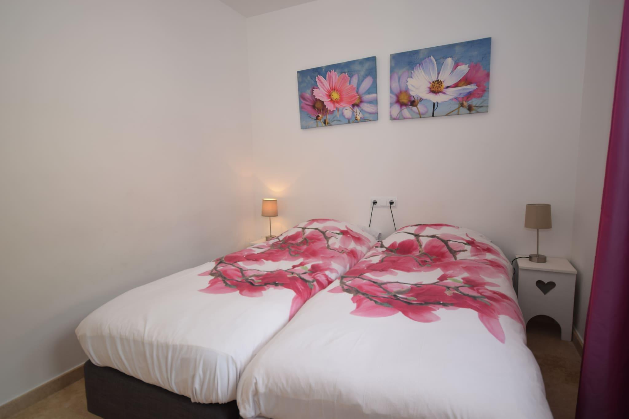 Stueetage: (Køkken(elkedel, komfur(glaskeramisk), kaffemaskine, ovn, mikrobølgeovn, opvaskemaskine , køleskab(amerikansk)), stue / spisestue(Fjernsyn(parabol, Hollandske TV-kanaler), spisebord, sofahjørne, DVD-afspiller), toilet) På 1. etage: (soveværelse(dobbeltseng(180 x 200 cm), balkon, klimaanlæg), soveværelse(dobbeltseng(180 x 200 cm), balkon, klimaanlæg), soveværelse(2x enkeltseng, klimaanlæg), soveværelse(2x enkeltseng(90 x 200 cm), klimaanlæg), badeværelse(badekar, bruser, 2x håndvask, toilet), badeværelse(bruser, 2x håndvask, toilet)) vaskerum (tørretumbler), udekøkken, terrasse, have, havemøbler, solstole, grill, swimmingpool(privat, opvarmet, 7 x 3 m.), petanquebane, bordtennisbord