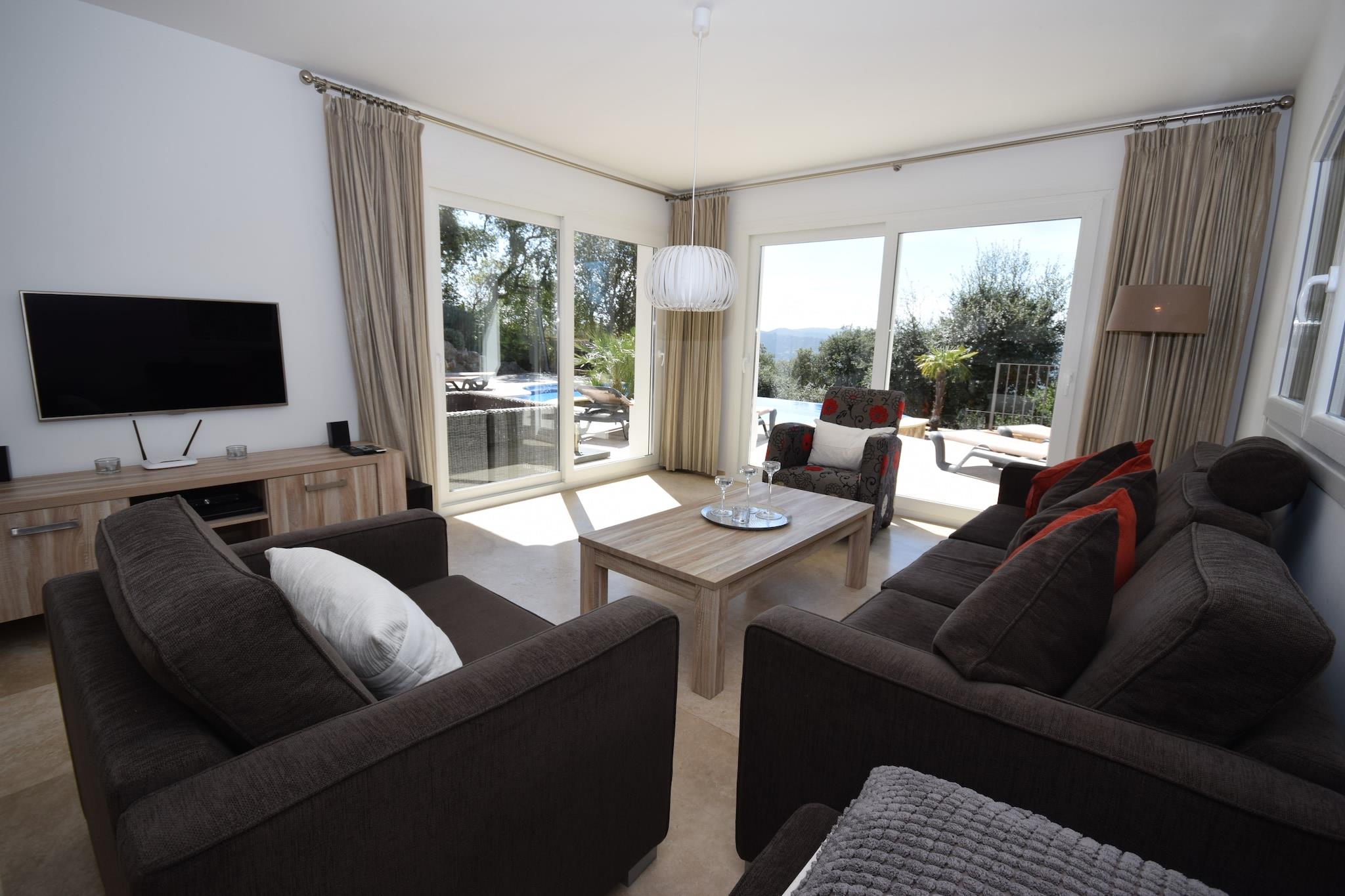 Afslappet Villa Living Denne villa med fire soveværelser ligger i de rolige omgivelser i Santa Cristina d'Aro og tilbyder et indbydende tilflugtssted for familier og grupper. Med en privat swimmingpool, liggestole og skyggefulde terrasser er hjemmet designet til både afslapning og udendørs nydelse. Indvendigt forbinder opholds- og spiseområdet i åbent plan problemfrit til et veludstyret køkken, hvilket gør det nemt at dele måltider sammen. Rekreative detaljer som et bordtennisbord og boulebane tilføjer sjov for alle aldre, mens muligheden for en opvarmet pool sikrer komfort året rundt. Naturskønne Costa Brava Villaen ligger kun 6 km fra strandene på Costa Brava, kendt for deres gyldne sand og skjulte bugter. Gæsterne kan nyde vandreture langs kysten, vandsport eller blot tilbringe dagen ved havet. Santa Cristina d'Aros bymidte ligger i nærheden og byder på lokale butikker, markeder og kulturelle seværdigheder, mens golfbaner og cykelruter også er inden for rækkevidde. Med sin kombination af rolige omgivelser og hurtig adgang til kysten, balancerer ejendommen privatliv med bekvemmelighed. Spisning og smag Fra traditionelle catalanske retter til moderne middelhavskøkken er områdets spisemuligheder varierede og indbydende. Inden for en kort køretur kan gæsterne nyde familiedrevne restauranter, der serverer regionale specialiteter såsom suquet de peix (fiskegryderet) eller vove sig til kystbyer for frisk fisk og skaldyr med havudsigt. Lokale tapasbarer gør afslappede aftener nemme, og markeder tilbyder friske råvarer til madlavning derhjemme i villaens udendørs køkken og grillplads.