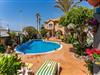 Stueetage: (Indgang (deles med andre gæster, adgang udefra), Stue(Fjernsyn(fladskærm, Internationale TV-kanaler), spisebord, sofahjørne), Køkken(kogeplade, elkedel, emhætte, kaffemaskine, ovn, mikrobølgeovn, køle-fryseskab), soveværelse(dobbeltseng eller 2 enkeltsenge Senge), badeværelse(bruser, håndvask, toilet), klimaanlæg) terrasse(privat), have(privat), parking lot(public), swimmingpool(deles med andre gæster, udendørs, opvarmet, opened from Jan upto and including Dec), strygebræt, strygejern