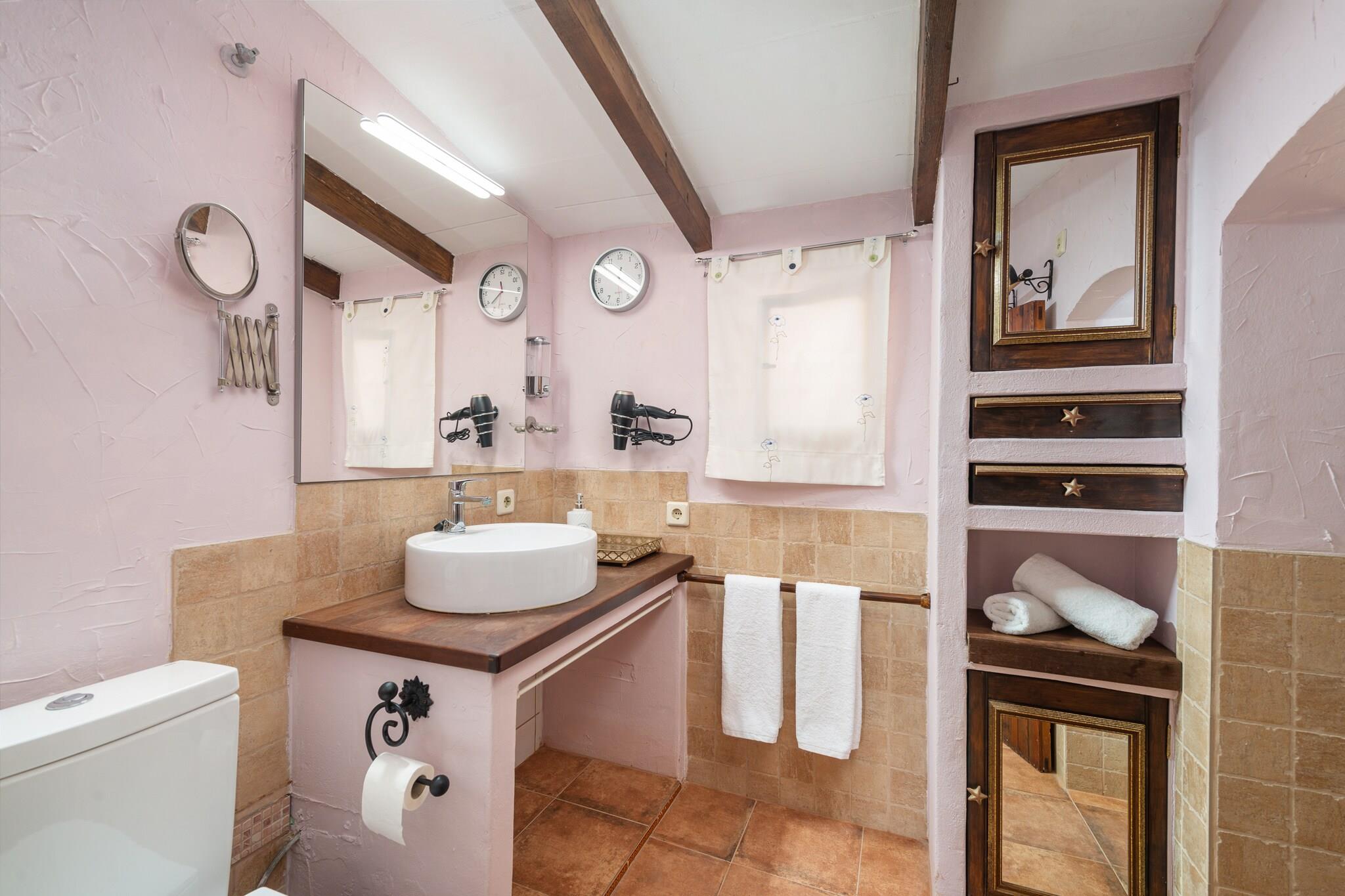 De buitenkant van het pand is ideaal om te genieten van het mediterrane klimaat. In de uitgestrekte en goed onderhouden tuin vindt u een privé zoutzwembad van 9x4m, waarvan de diepte varieert tussen 1,2 en 1,8m. Om hen heen hebben ze ligstoelen waar ze heerlijk kunnen ontspannen terwijl ze bruinen, een barbecue en een veranda waar ze met hun gezelschap gezellig kunnen eten of borrelen. Daarnaast is er een huisje waar de kleintjes kunnen spelen. Het terrein is omheind en er zijn buren in de buurt. Het interieur van het huis met twee verdiepingen is ontworpen om u de rust te bieden die u verdient. Op de begane grond bevinden zich twee woonkamers met open haard, een eetkamer en de keuken, die beschikt over een gasfornuis en al het benodigde keukengerei om comfortabel te koken. Naast de keuken is er een ruimte met een vaste barbecue, voor het geval u een grillrecept wilt bereiden. Een houten trap leidt naar een zolder waar zich een derde woonkamer bevindt. Op deze verdieping bevinden zich twee badkamers, één met douche en één met ligbad. In het huis is er een wasmachine, strijkijzer en strijkplank. Als het om slapen gaat, hebben ze 3 slaapkamers. Op de begane grond bevinden zich er twee: één met een tweepersoonsbed en de andere met twee eenpersoonsbedden. Op de bovenverdieping bevindt zich de derde slaapkamer met een tweepersoonsbed en een en-suite badkamer met douche die tevens toegang heeft tot twee terrassen. Als u daar zin in heeft, kunt u trainen in de kleine fitnessruimte op het terrein. Vijf ventilatoren en vier radiatoren maken de uitrusting van het huis compleet. Als u met baby's reist, zijn er 2 kinderbedjes en 2 kinderstoelen beschikbaar. Santa María del Camà is een charmant stadje in het midden van het eiland. Vanuit het huis kunt u wandel- of fietsroutes ondernemen. In de stad vindt u alle diensten die u nodig heeft voor een zelfstandig verblijf. Vanuit Santa María kun je naar elk punt op het eiland reizen. Inca is een nabijgelegen stad waar je de donderdagmarkt, die alle centrale straten van de stad beslaat, niet mag missen. Het dichtstbijzijnde strand is Can Pere Antoni, geïntegreerd in de stad Palma, maar u heeft ook snel toegang tot de stranden in het noorden van het eiland, zoals Playa de Alcudia of Can Picafort. Houd er rekening mee dat er overdag personeel aanwezig is dat het perceel bezoekt om het land te bewerken. Indien u dat wenst, wordt er tegen een toeslag voor brandhout gezorgd. Voor eventuele extra kosten kunt u contact opnemen met de adverteerder. Wij accepteren geen huisdieren. Het vieren van evenementen is niet toegestaan. Er is buiten parkeergelegenheid voor 3 auto's. Afstanden Strand: 20,8 km - Platja de Palma Luchthaven: 22,5 km - Palma de Mallorca Golfbaan: 11,7 km - Golf Son Termes Stad: 2,2 km - Santa Maria del Camà Treinstation: 1,5 km - Santa Maria del Camí Bushalte: 1,5 km - Santa Maria del Camà Veerboot: 26,3 km - Palma Ziekenhuis: 11,8 km - Joan March-ziekenhuis Toeristenvergunning: ETV/15715 Op de Balearen geldt een toeristenbelasting, Ecotasa genaamd, die door de gast moet worden betaald. Het bedrag varieert tussen EURO 0,55 / per nacht per persoon in het laagseizoen en EURO 2,2 / per nacht per persoon in het hoogseizoen. Vanaf de negende dag wordt het met de helft verminderd. Personen onder de 16 jaar uitgesloten.