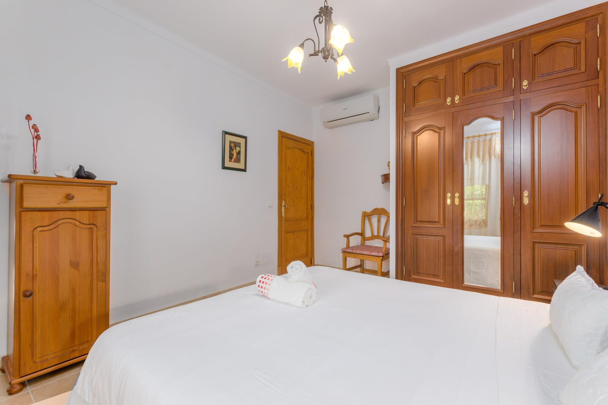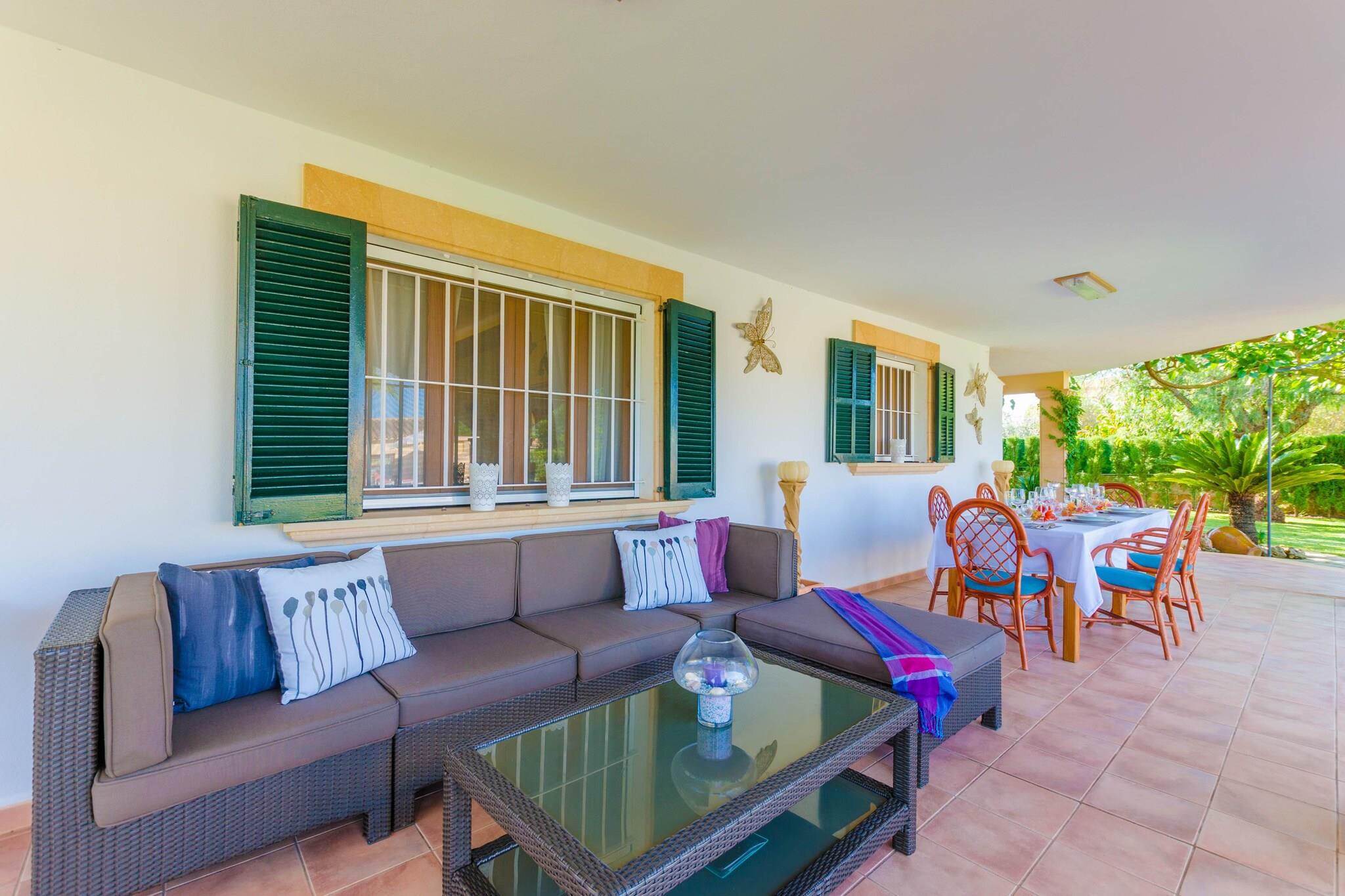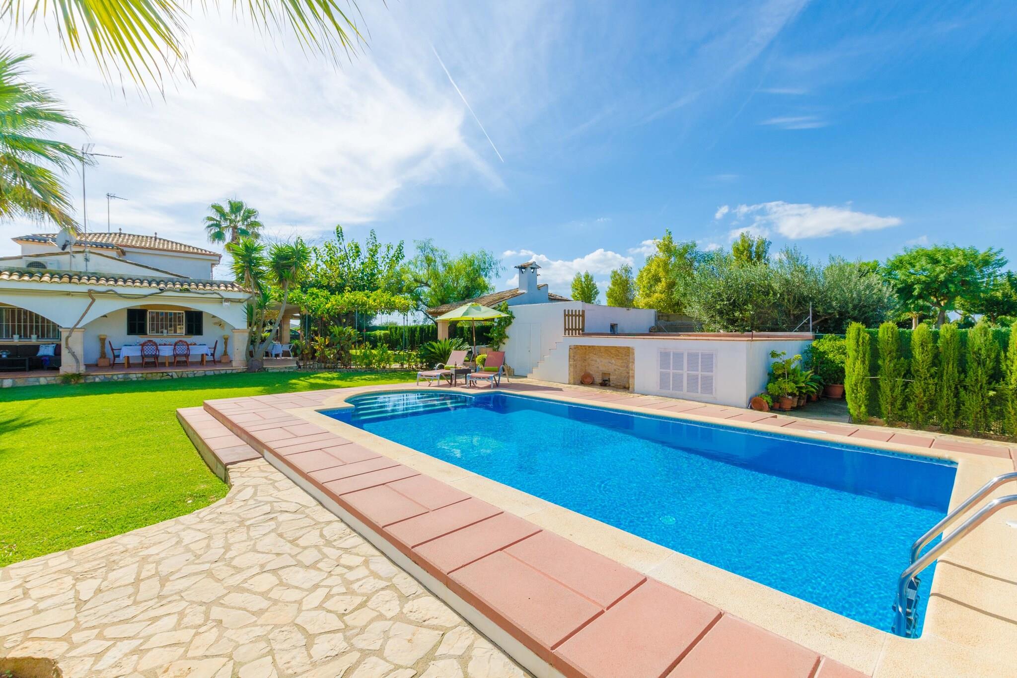 Nyd den perfekte blanding af fred på landet og kystnærhed i denne charmerende mallorcanske villa. Haven er fyldt med indfødte træer og grønne områder, der tilbyder en virkelig fredfyldt atmosfære. Slap af på verandaen med en morgenkaffe eller samles på den bageste veranda til uforglemmelige middage tilberedt på den indbyggede grill. Den 9 x 4,5 m klorpool (0,8-1,6 m dyb) er omgivet af 6 liggestole, der er ideelle til at slikke solen. Børn vil elske legepladsen, og du vil sætte pris på den udendørs bruser for ekstra bekvemmelighed. Indenfor byder boligen på en blanding af rustik charme og moderne komfort på to etager. Stueetagen byder på en rummelig hall, en hyggelig stue med AC og satellit-tv, en hyggelig spiseplads og et fuldt udstyret køkken med keramisk kogeplade, ovn og meget mere. Der er også et soveværelse med dobbeltseng og et badeværelse med bruser. Ovenpå finder du et badeværelse med badekar og to soveværelser med aircondition - det ene med en dobbeltseng og det andet med to enkeltsenge. Alle værelser har satellit-tv og garderobeskabe. Barneseng og høj stol til rådighed. Beliggende kun 3,5 km fra Es Capellans-stranden og tæt på Can Picafort, vil du være i nærheden af ??restauranter, butikker og gåture ved havet - perfekt til en afslappende familieferie.