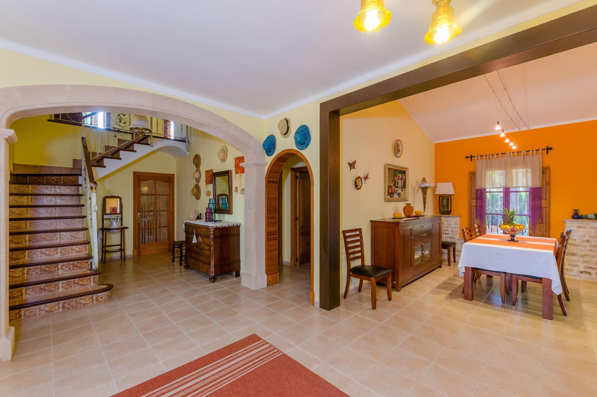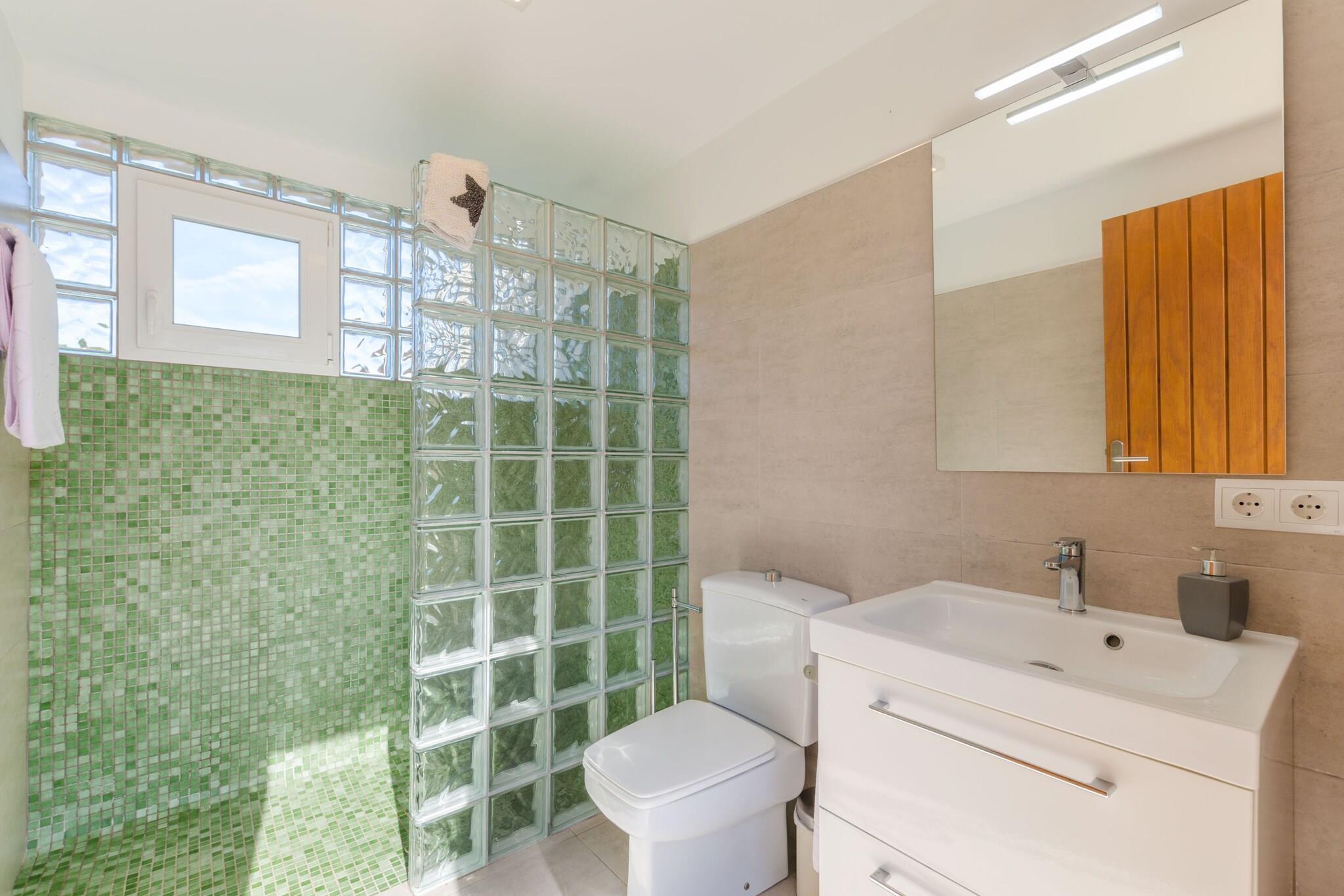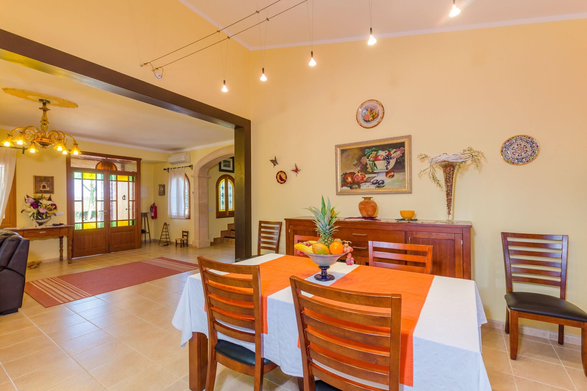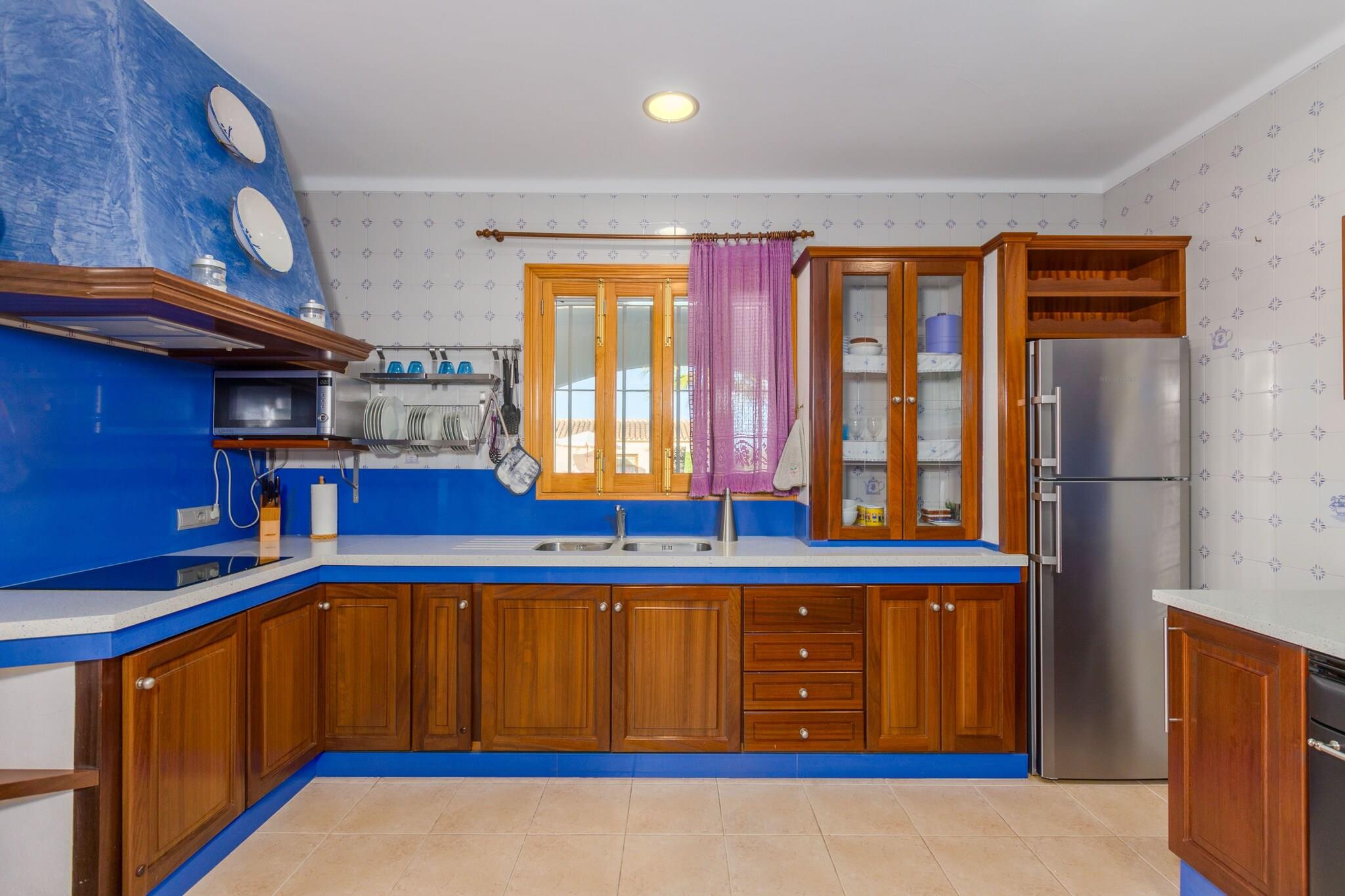 Nyd den perfekte blanding af fred på landet og kystnærhed i denne charmerende mallorcanske villa. Haven er fyldt med indfødte træer og grønne områder, der tilbyder en virkelig fredfyldt atmosfære. Slap af på verandaen med en morgenkaffe eller samles på den bageste veranda til uforglemmelige middage tilberedt på den indbyggede grill. Den 9 x 4,5 m klorpool (0,8-1,6 m dyb) er omgivet af 6 liggestole, der er ideelle til at slikke solen. Børn vil elske legepladsen, og du vil sætte pris på den udendørs bruser for ekstra bekvemmelighed. Indenfor byder boligen på en blanding af rustik charme og moderne komfort på to etager. Stueetagen byder på en rummelig hall, en hyggelig stue med AC og satellit-tv, en hyggelig spiseplads og et fuldt udstyret køkken med keramisk kogeplade, ovn og meget mere. Der er også et soveværelse med dobbeltseng og et badeværelse med bruser. Ovenpå finder du et badeværelse med badekar og to soveværelser med aircondition - det ene med en dobbeltseng og det andet med to enkeltsenge. Alle værelser har satellit-tv og garderobeskabe. Barneseng og høj stol til rådighed. Beliggende kun 3,5 km fra Es Capellans-stranden og tæt på Can Picafort, vil du være i nærheden af ??restauranter, butikker og gåture ved havet - perfekt til en afslappende familieferie.