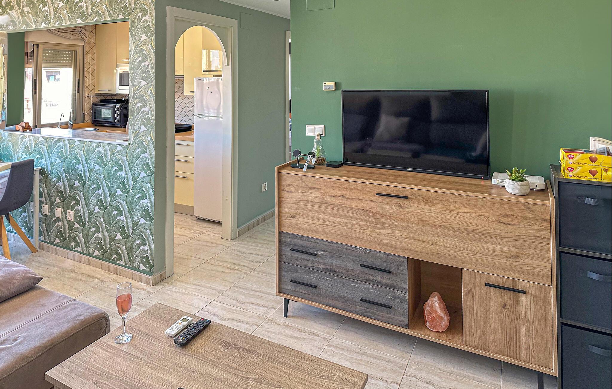 En hyggelig ferielejlighed i centrum af Santa Pola, der er velegnet til tre personer med to soveværelser samt et badeværelse. I lejligheden findes en udestue samt en skøn terrasse - perfekt til afslapning. Lejligheden er pænt indrettet med mange detaljer og ligger i et godt område lige ved byens slot.