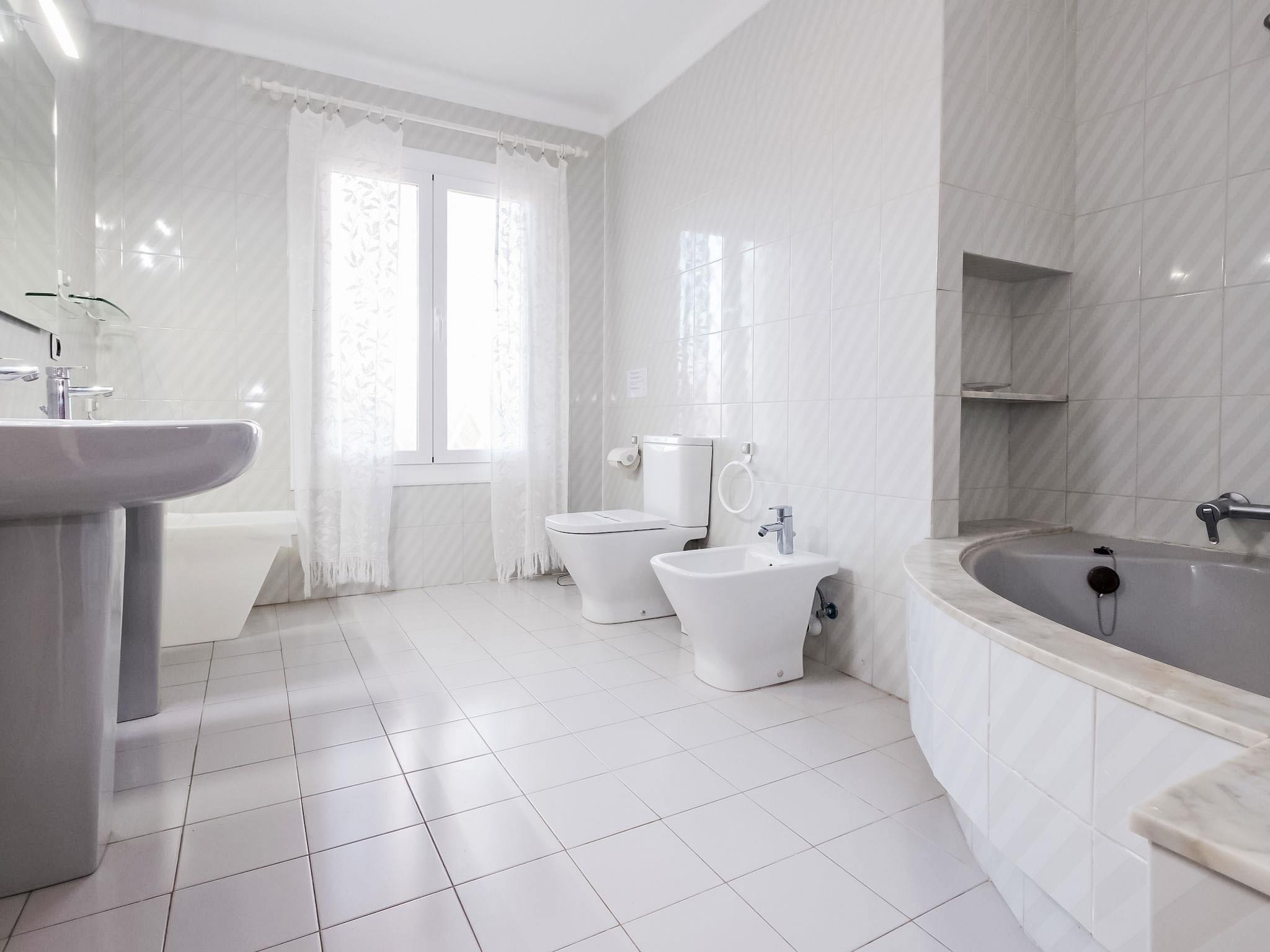 "Santa Ponça", 7-room villa 300 m2 on 3 levels. Object suitable for 8 adults. Spacious, practical and cosy furnishings: lounge with open-hearth fireplace, satellite TV and air conditioning. Exit to the terrace. Dining room. Kitchen (4 hot plates, oven, dishwasher, toaster, kettle, microwave, electric coffee machine). Sep. WC. Electric heating. On the lower ground floor: 1 room with 2 beds (90 cm, length 200 cm), air conditioning. 1 room with 2 beds (90 cm, length 200 cm). Bath/WC. Electric heating. Upper floor: lounge with satellite TV. Exit to the terrace. 1 room with 1 french bed (200 cm, length 200 cm), shower/bidet/WC and air conditioning. Exit to the terrace. 1 room with 2 beds (90 cm, length 190 cm). Bath/bidet/WC. Electric heating. Terrace 25 m2, terrace 20 m2. Terrace furniture, barbecue, deck chairs (8), covered balcony. Of the swimming pool and the garden. Facilities: washing machine, iron, children's high chair, baby cot for up to 2 year olds, hair dryer. Internet (WiFi, free). Parking (fenced 3 cars). Please note: suitable for families. Fire extinguisher. ET2440 // Reg. Nr.: ESFCTU0000070210004828110000000000000000000000ET24401
