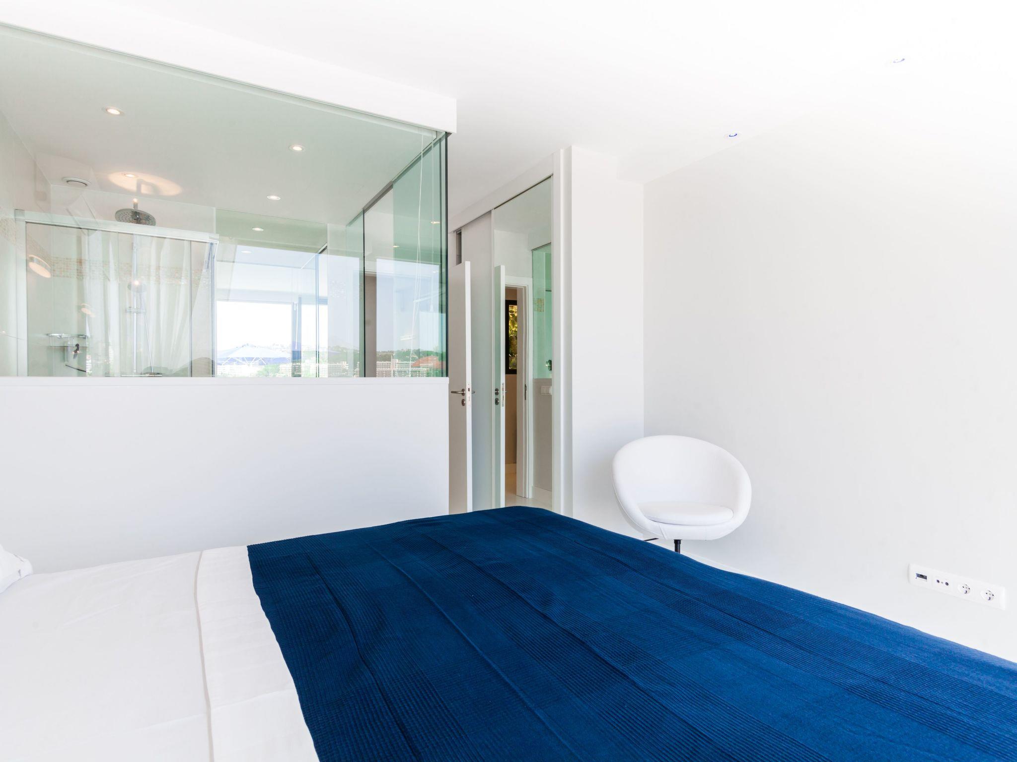 Casa Blau Villa has six double bedrooms, each with its own ensuite bathroom. A stay for up to twelve people is therefore possible. Each of the bedrooms has a magnificent view over the sea, a modern furnished spacious living area, a high-quality and well-equipped kitchen and a total of three dining areas - both inside and outside - complete the facilities of the property. The entire interior of the house is very straightforward and bright. The living area of the villa is at ground level and surrounded by a continuous terrace. An outdoor kitchen/bar with barbecue and hob are permanently installed on the terrace, while the private swimming pool is 10 metres long and access to the sea is via a staircase that leads over various terraces. The length of the seafront is impressive - living so close to the water is impressive at any time of year. On request: