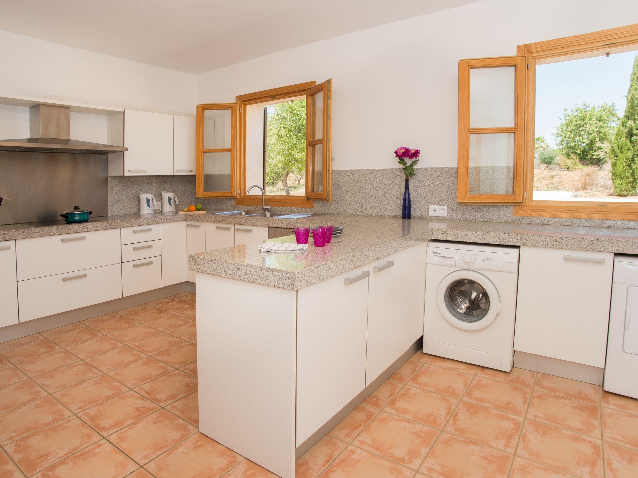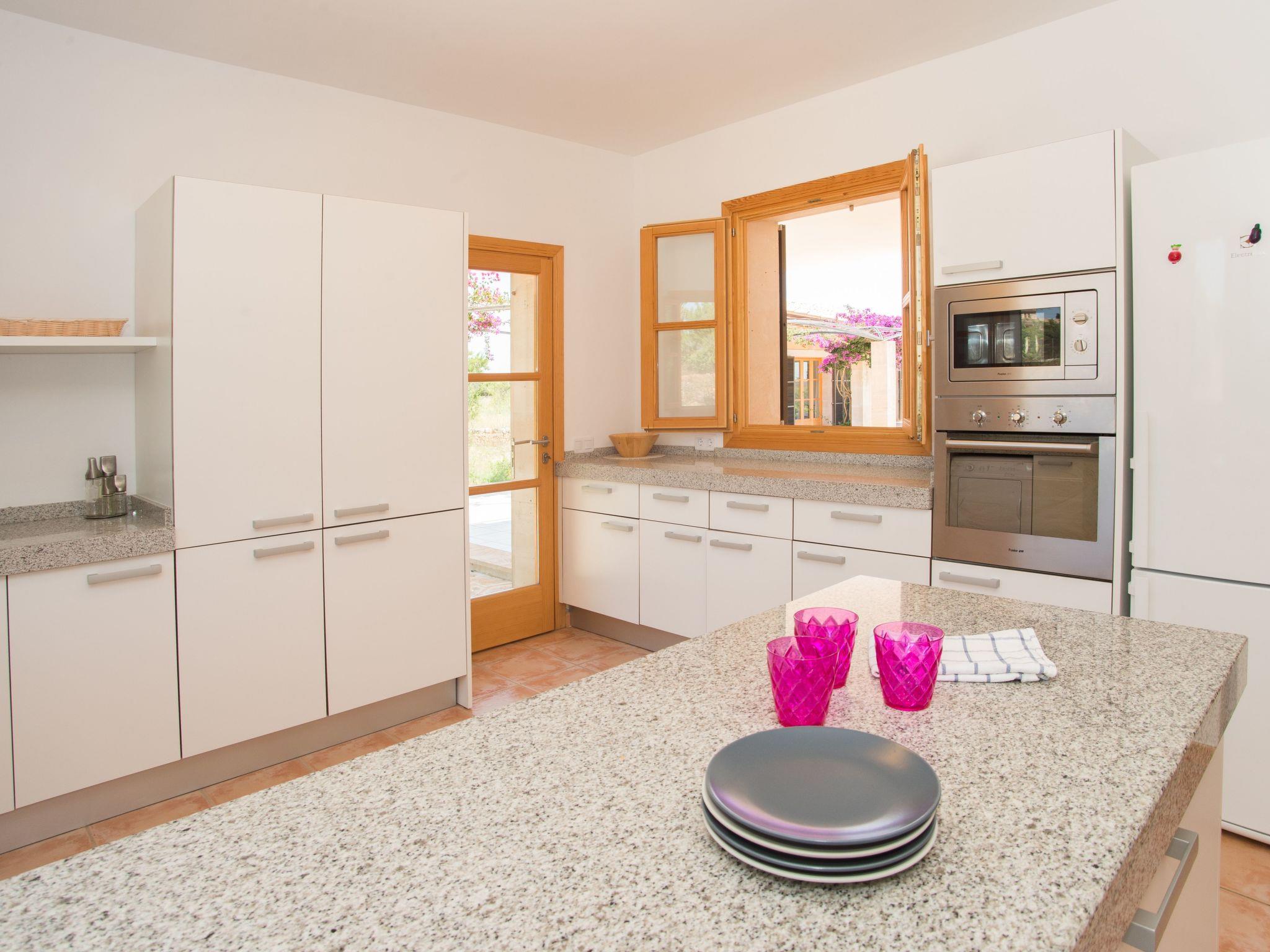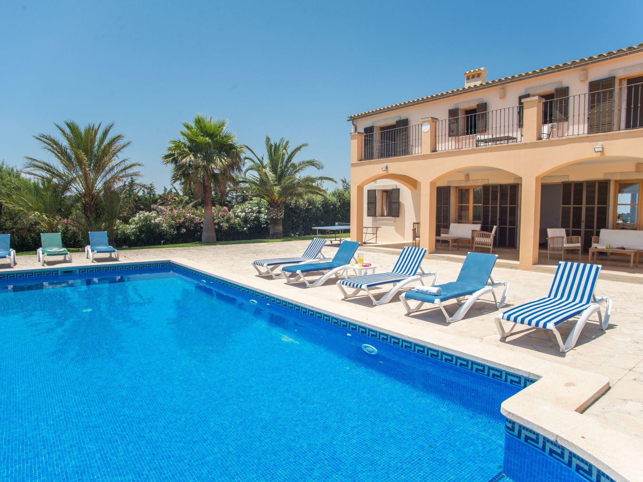 The beautiful finca is situated in a slightly elevated position in the countryside, close to the small Mallorcan village of Calonge. The view from the property sweeps across the countryside. The sea still shines in the distance on the horizon. A small supermarket, a small selection of restaurants and the plaza are just a 10-minute walk away. Another nearby village is S'Horta, which is also within easy walking distance. Overall, this rural area, which has retained an attractive, authentic charm, is ideal for long walks or excursions by bike. Bicycles can be hired in Cala d'Or all year round. The undeveloped bay of Cala Sanau with its fine sandy beach and turquoise waters is just 5 kilometres away. Cala d'Or, also 5 kilometres away, offers a nice change of pace. The lively tourist resort offers an endless choice of restaurants and shops. Here or in the exclusive marina of Cala d'Or it is wonderful to stroll around late at night. A selection of discos and bars with live music also makes the resort attractive for night owls. If you prefer a quieter pace, head to Porto Colom, which is around 7 kilometres away. The charming and authentic fishing village is an excellent place to dine. In the summer months, Mallorcan families like to stay here by the sea and Spaniards from the mainland also appreciate the beautiful ambience.