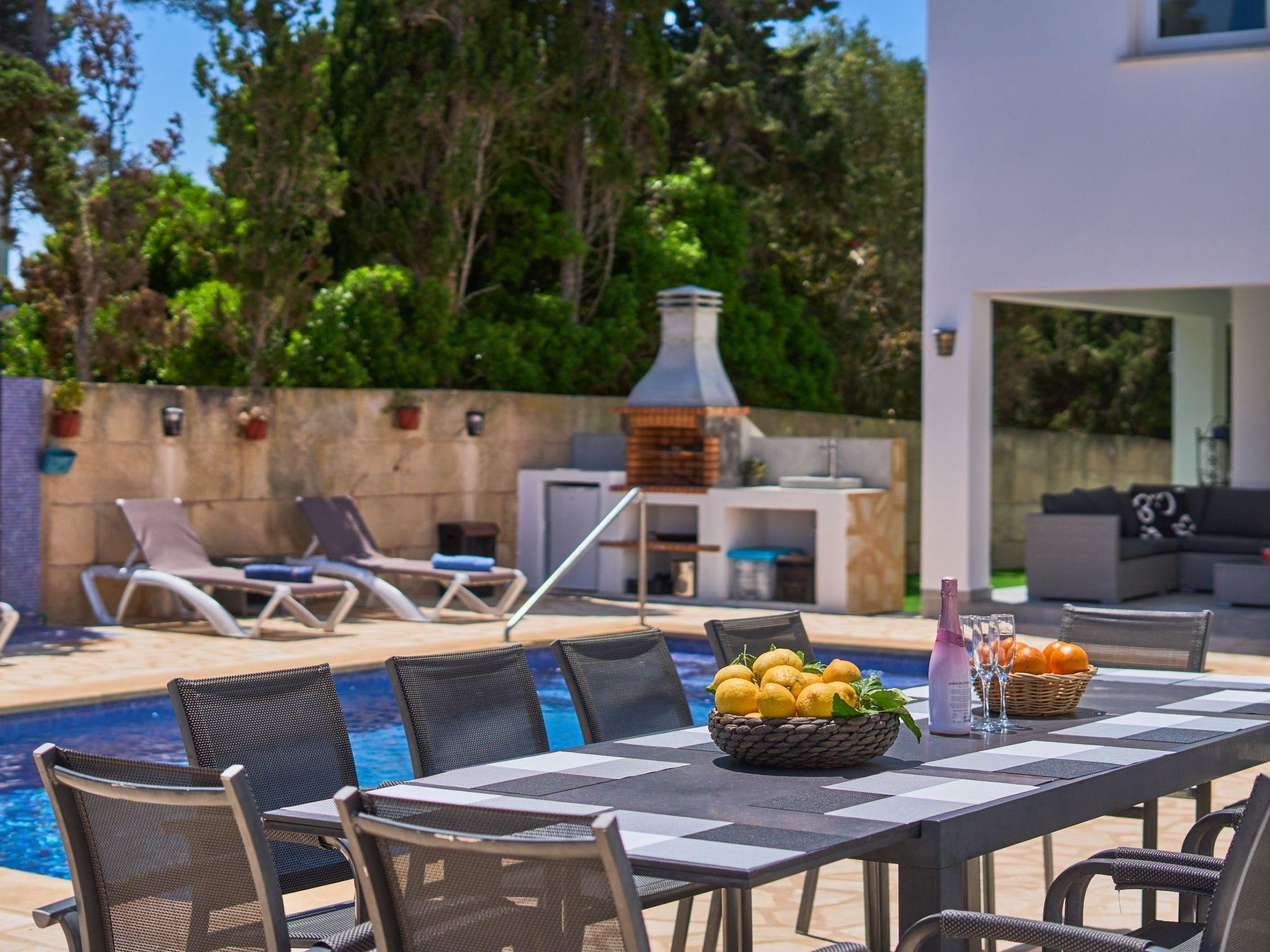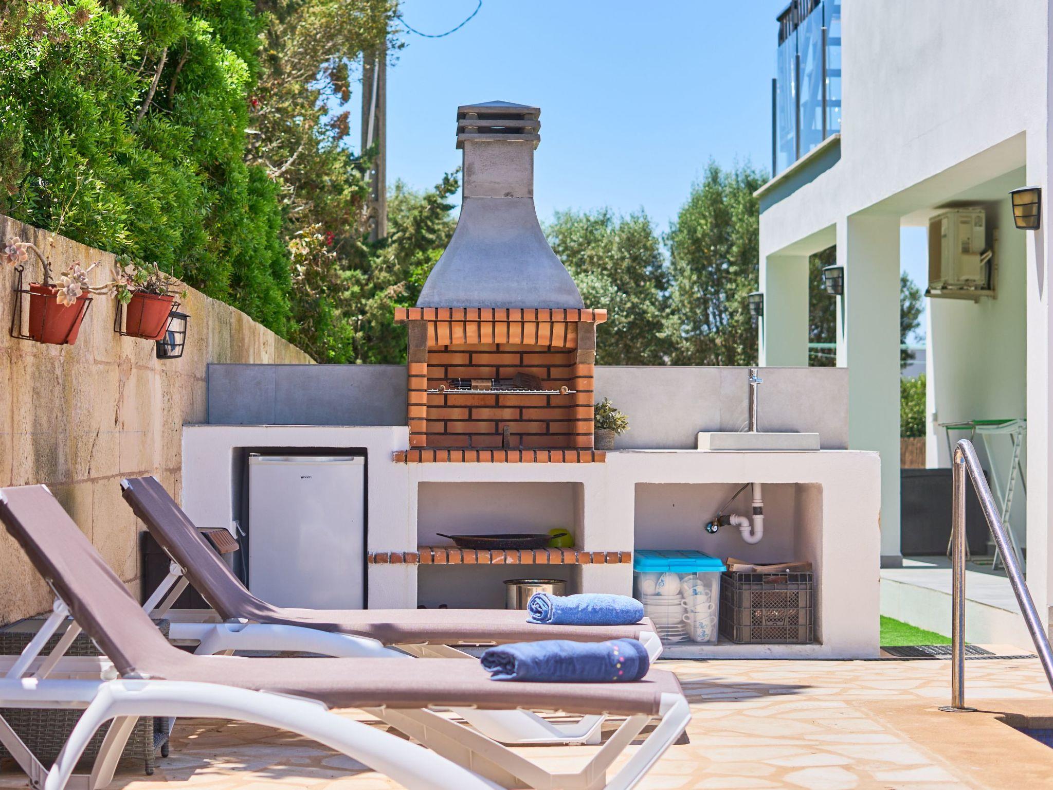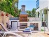 Swimming pool with sun loungers to enjoy the sun. Brick barbecue and porch overlooking the pool.
